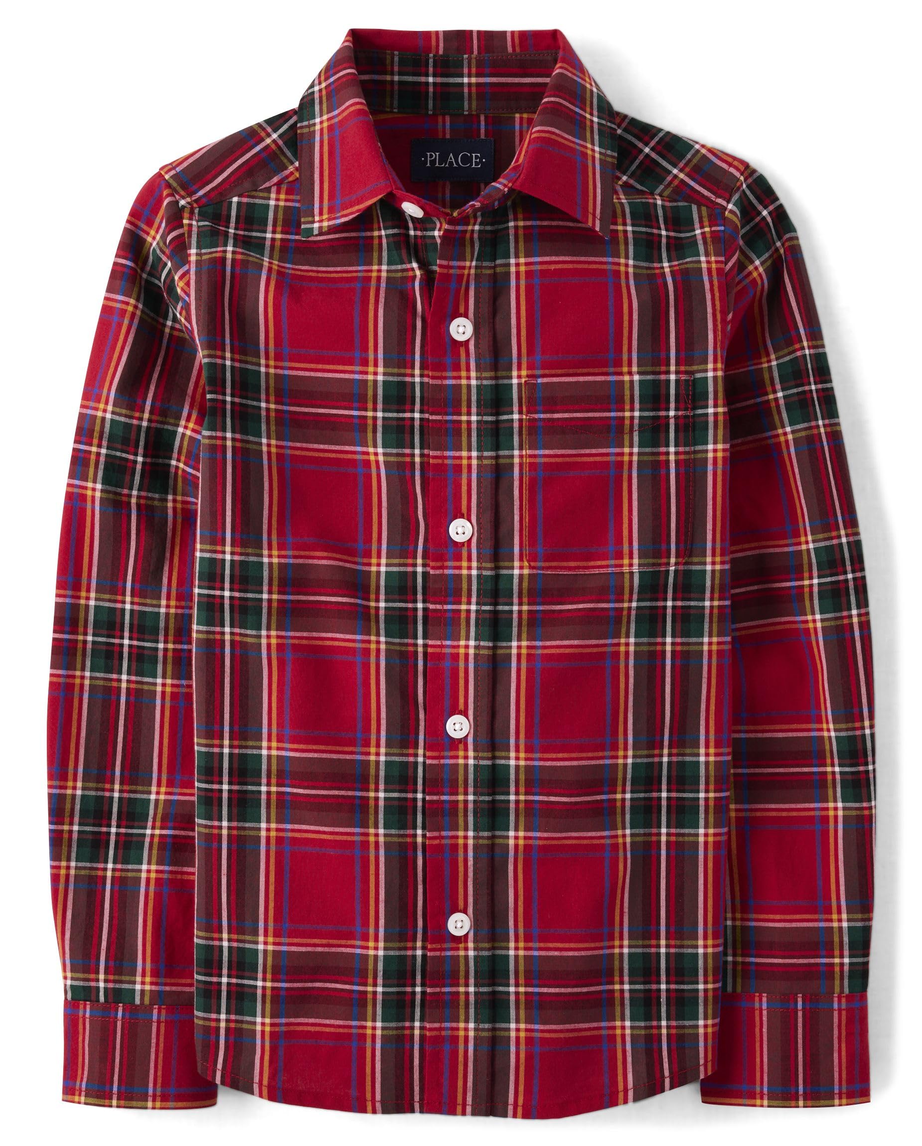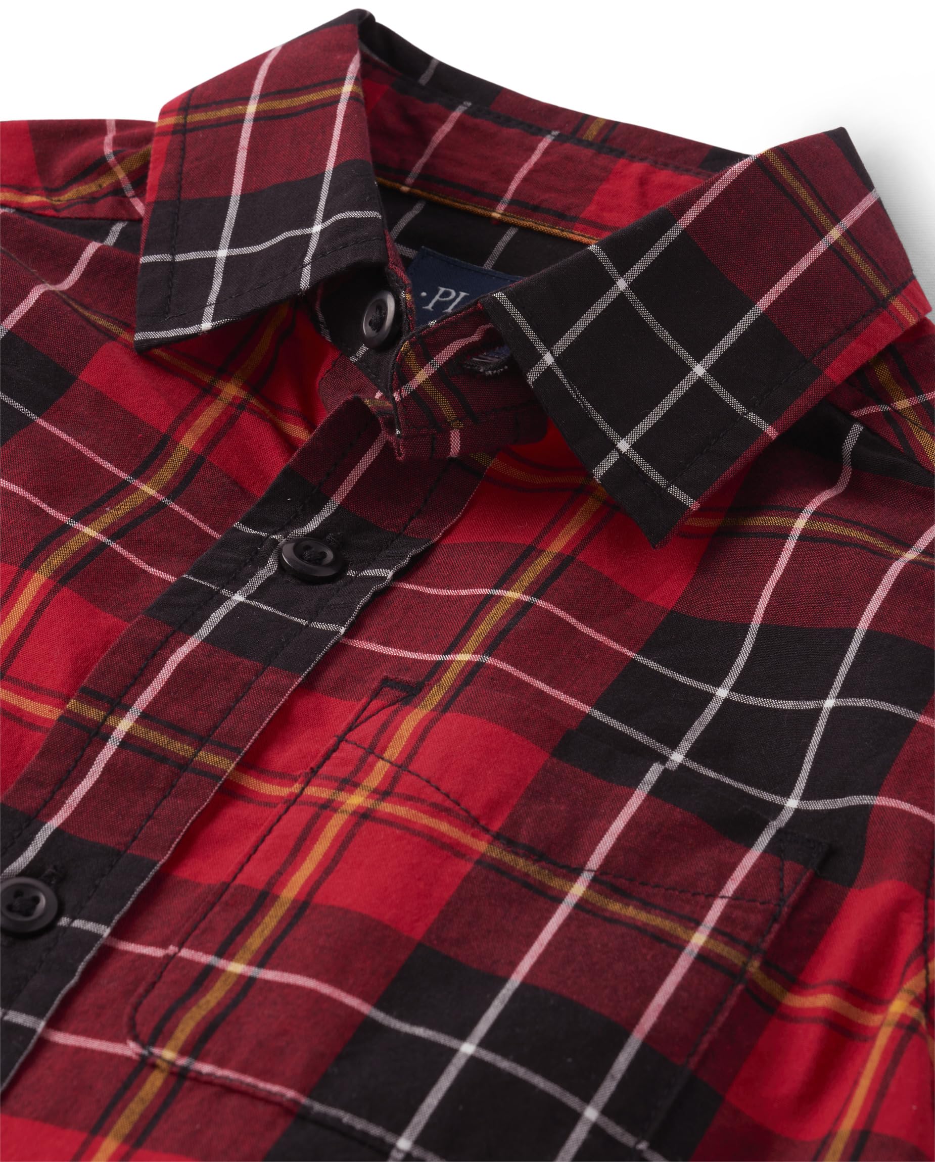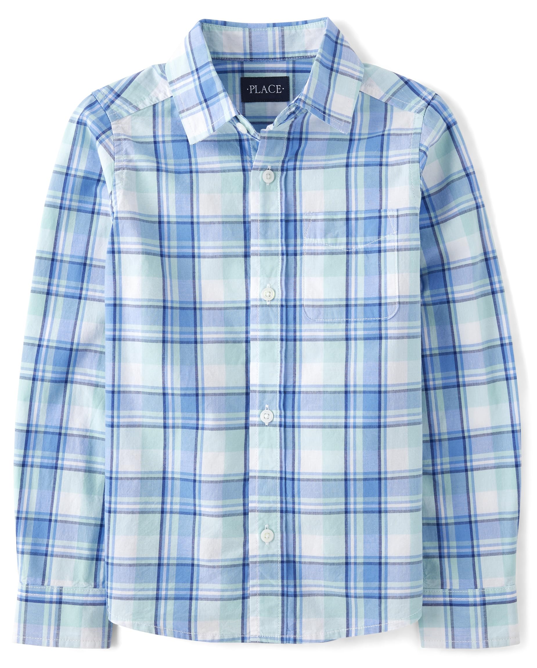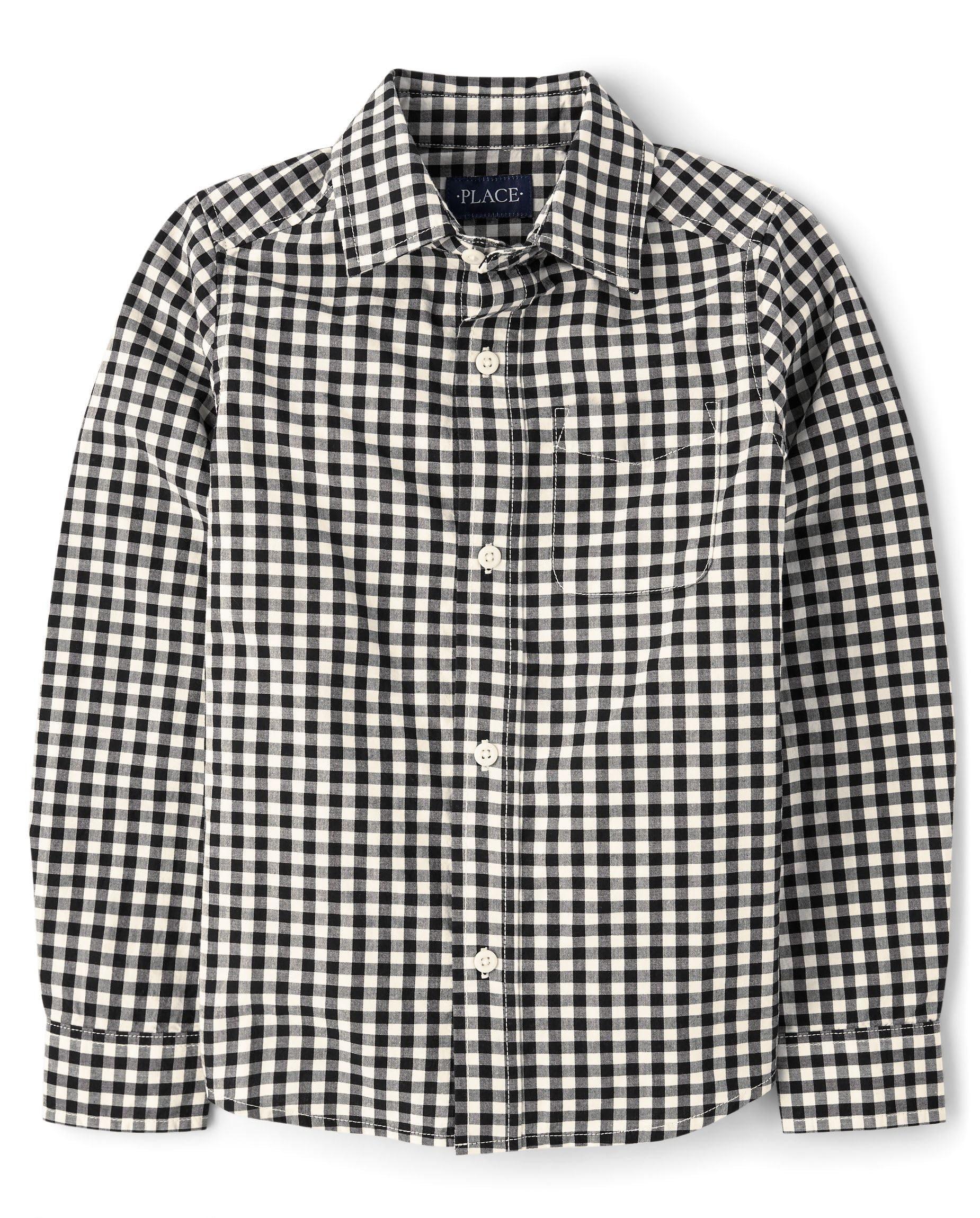 The Children's place boys' long-sleeved shirt, pure cotton, casual and versatile, two-pocket design, Whirlwhind Gingham X-Large