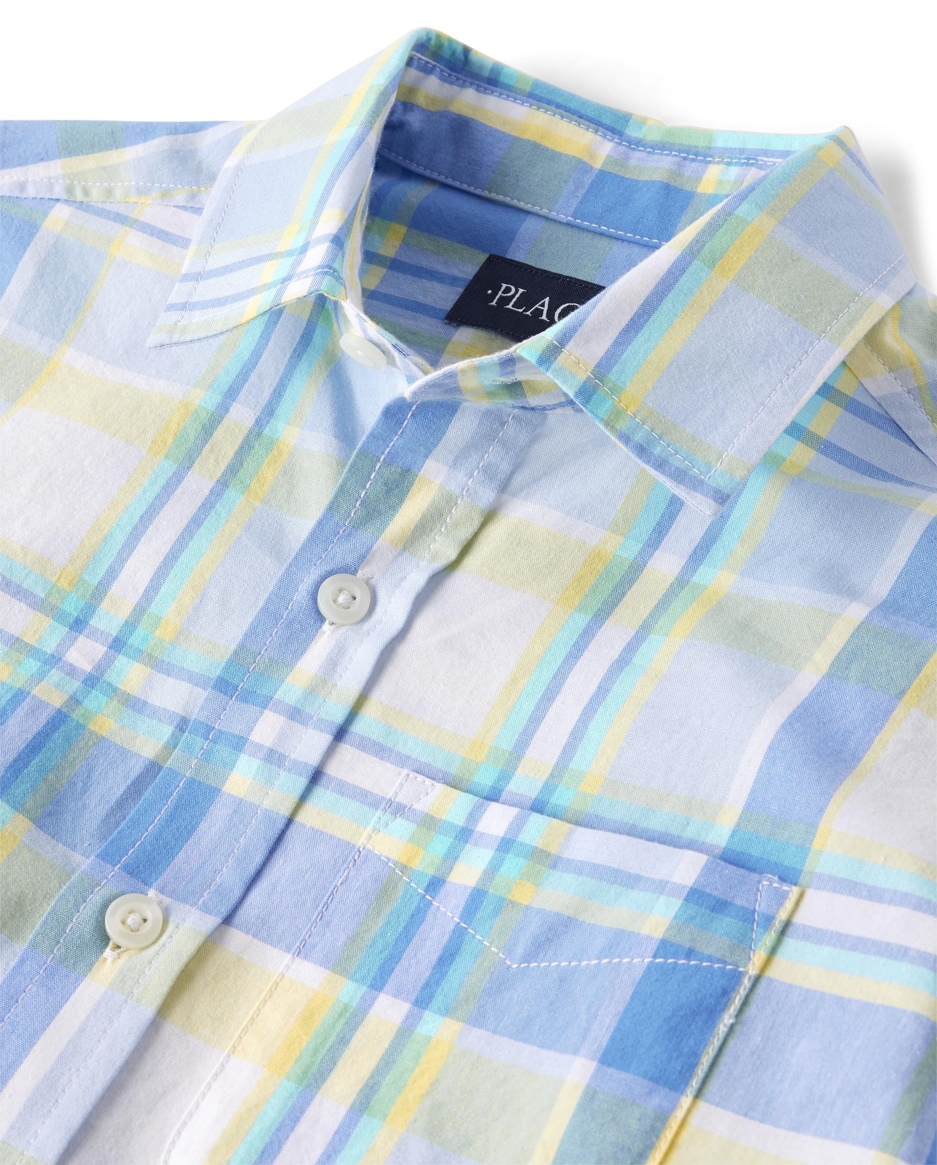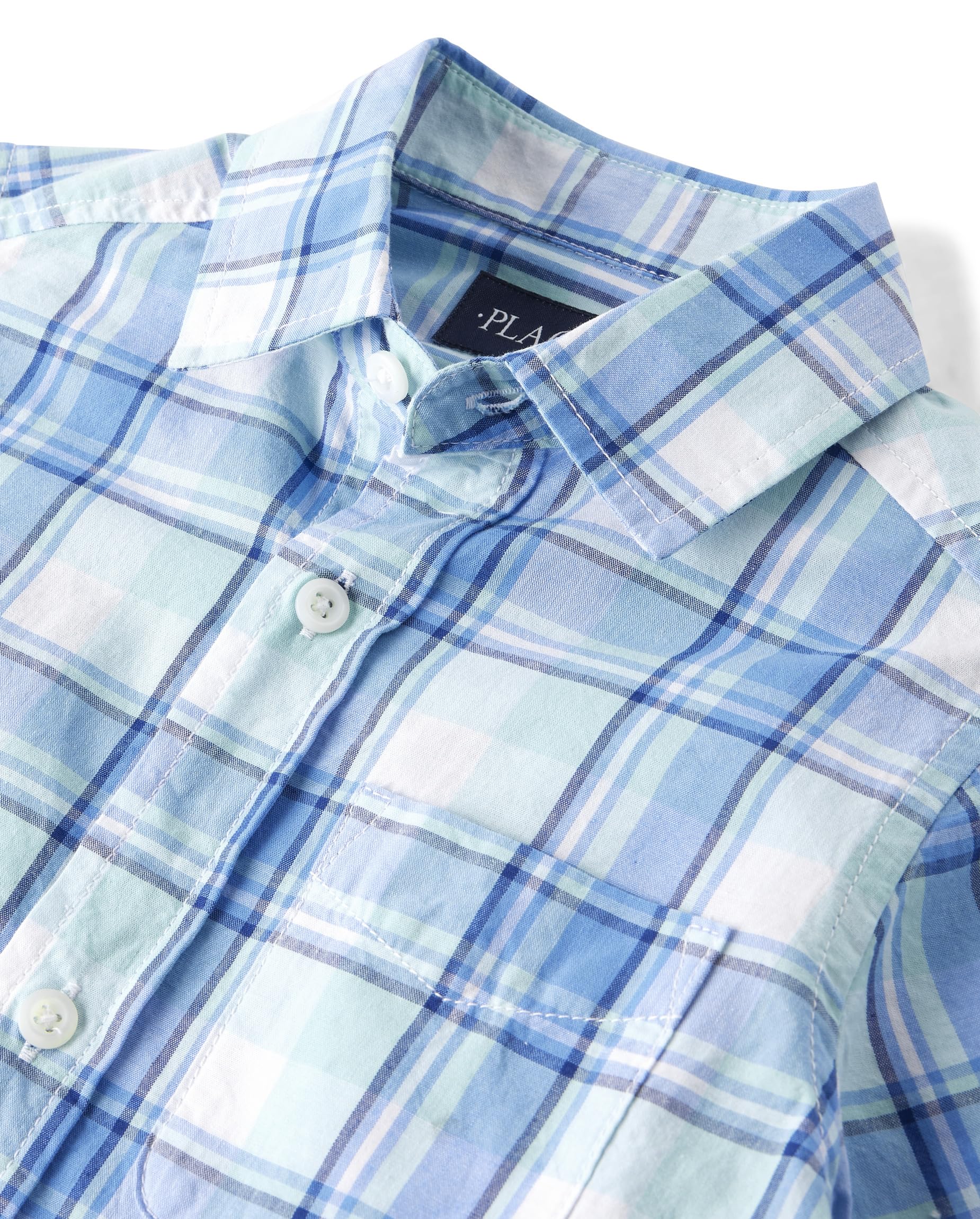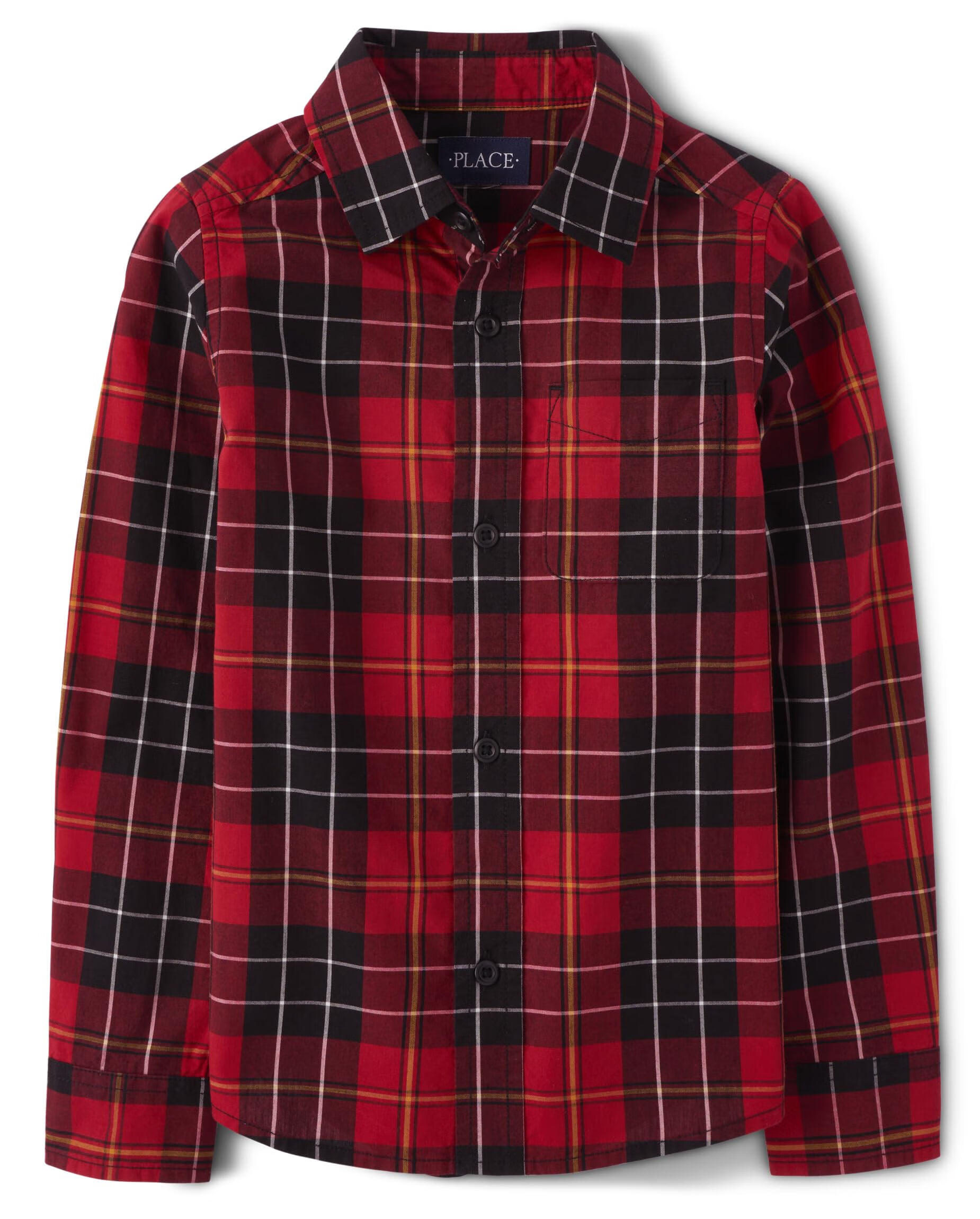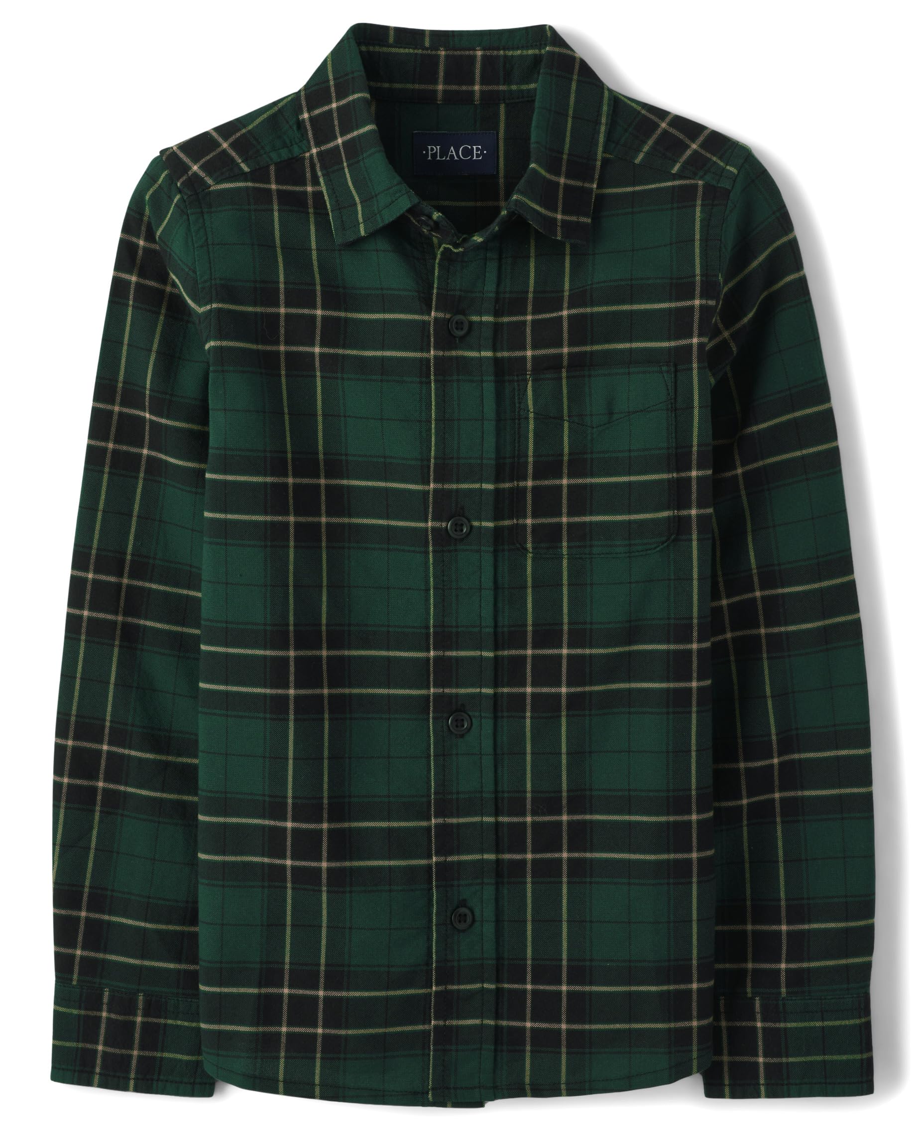 The Children's place boys' long-sleeved shirt, pure cotton, casual and versatile, two-pocket design, Whirlwhind Gingham X-Large