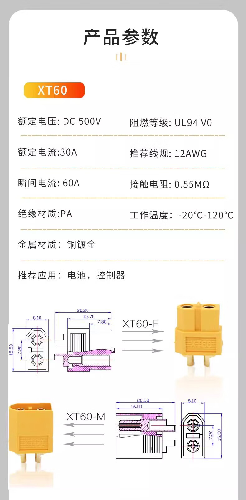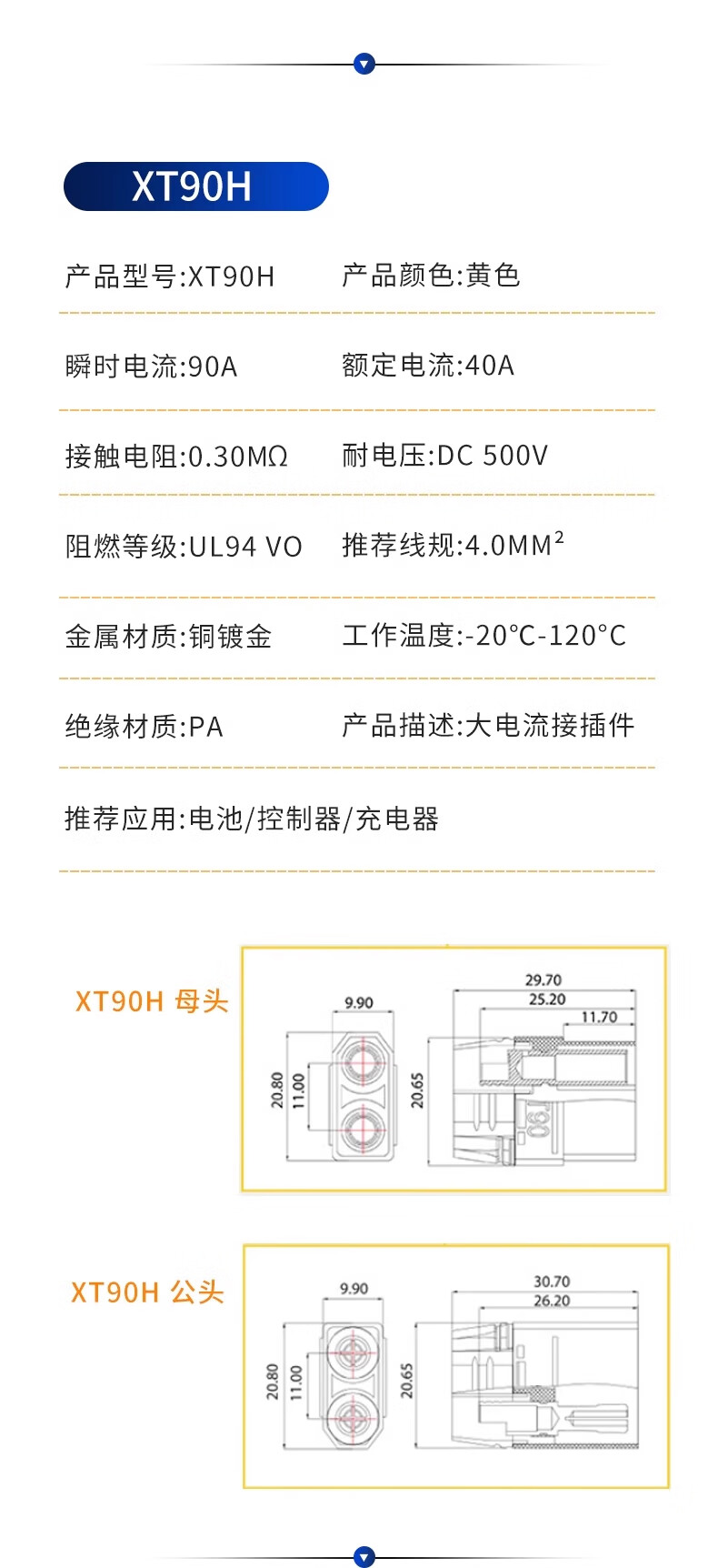 Zejie XT60+ plug XT60H XT30U male and female docking interface XT90 plug interface connector connection plug XT90H male (with sheath)