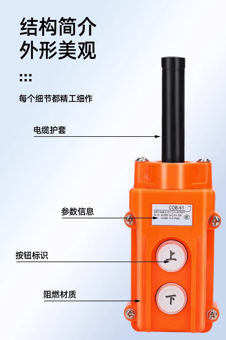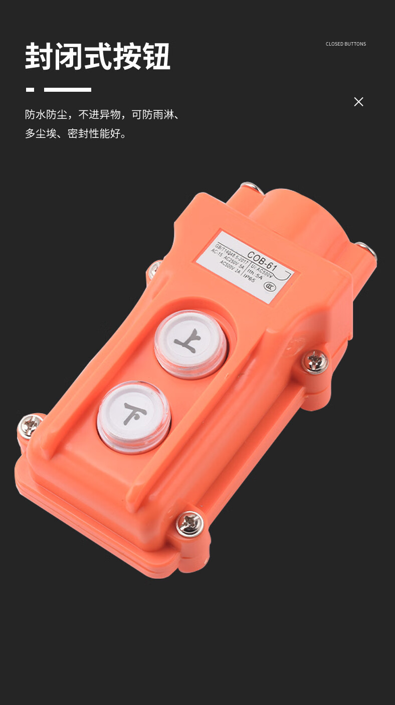 Zejie COB-61A 62A 63A 64BH waterproof control driving switch electric hoist heavy button switch COB-64BH