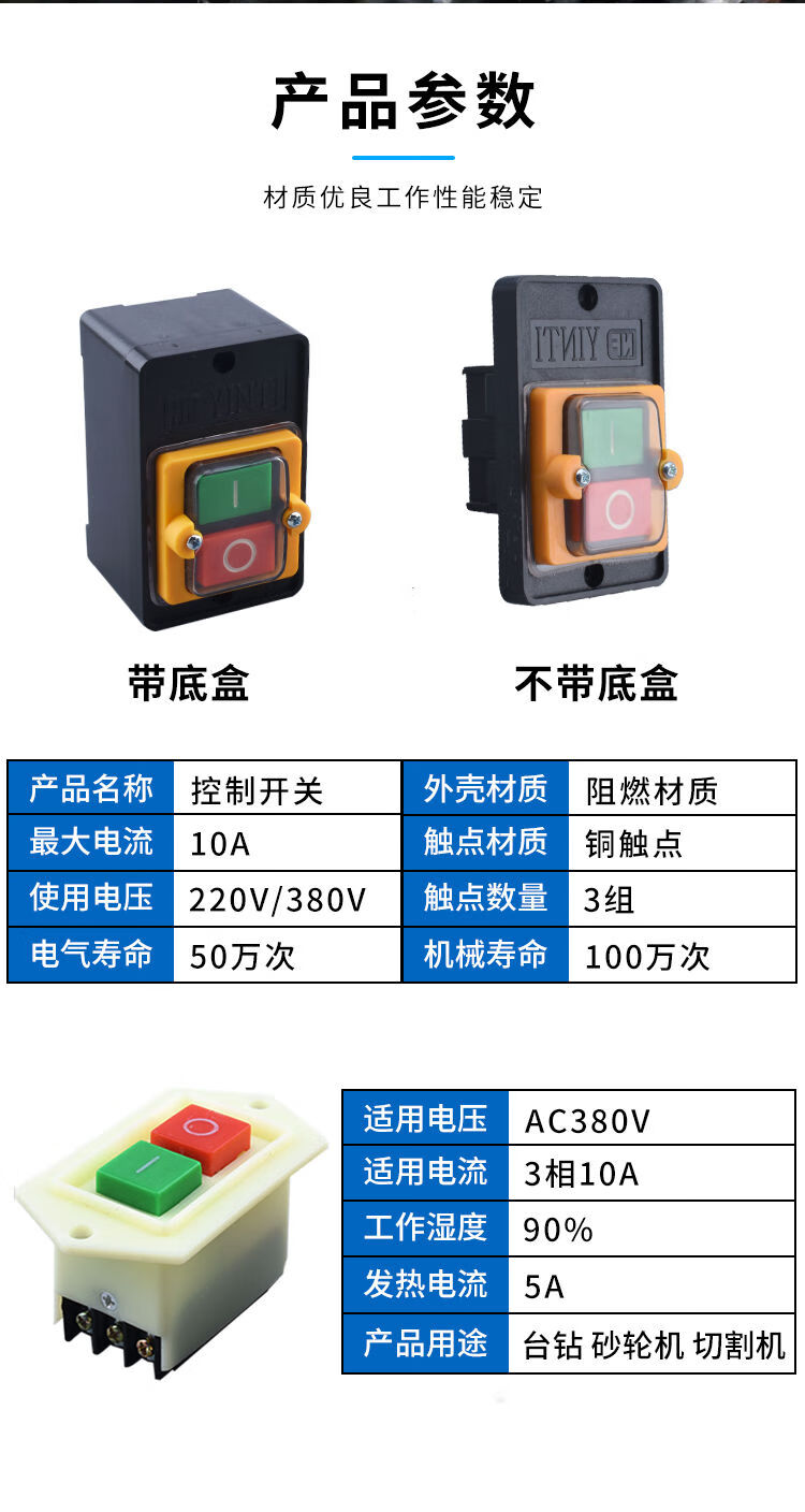 Zejie KAO-5H/5M waterproof control switch KA0-5M/H 220/380V10A bench drill button LC3-10 LC3-5 copper point