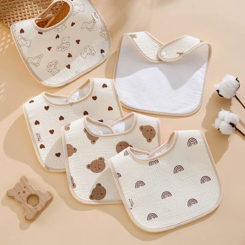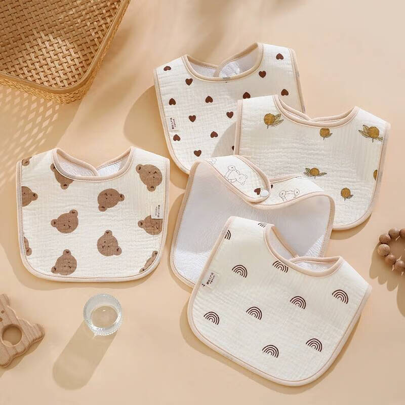 U-type A-type bibs for infants and young children, newborn babies, TPU waterproof layer, anti-vomiting bib, pure cotton gauze saliva towel 0813-Love+Strawberry+Kumquat 3 pack