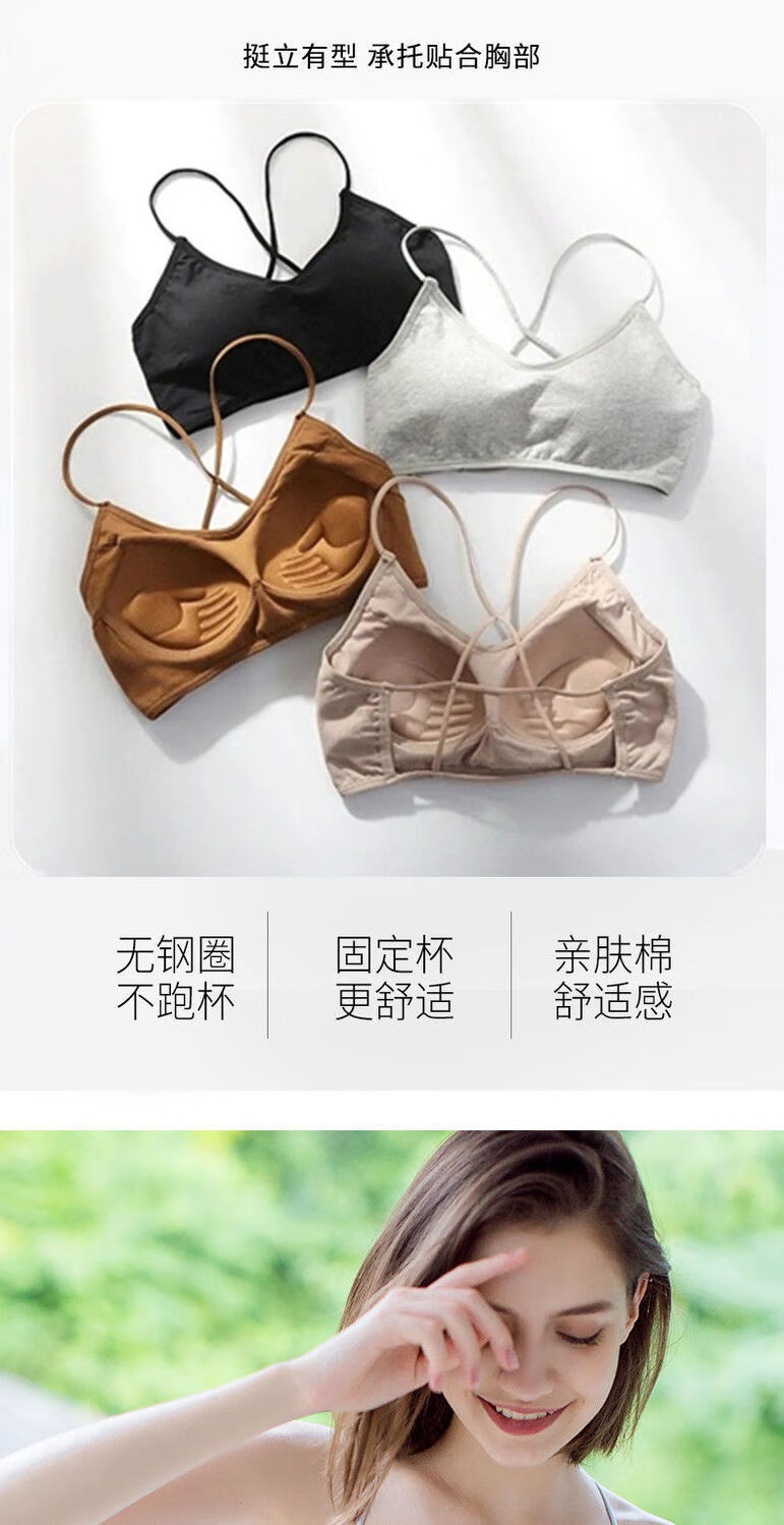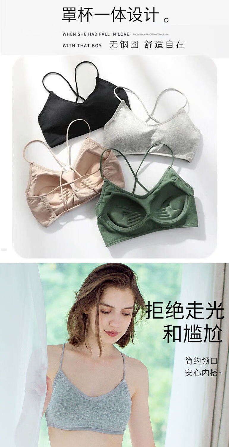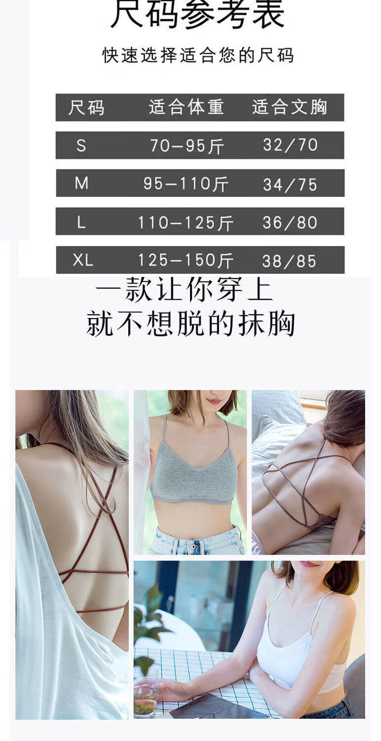 Shannanweimei back sling bra for women without rims pure cotton sports student wrap chest push-up small bra tube top all-in-one underwear black + black 2 pieces L 110-125Jin Jin is equal to 0.5 kg