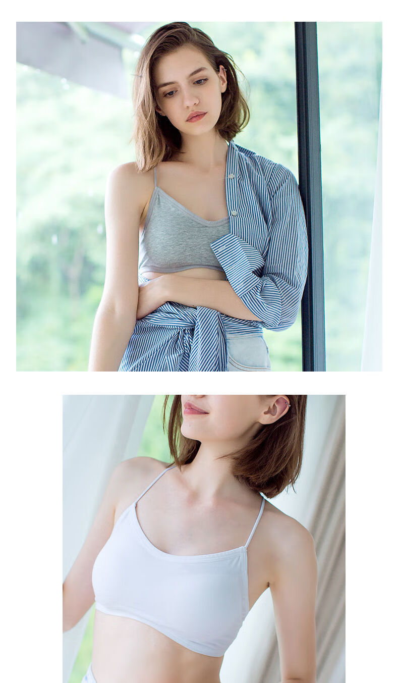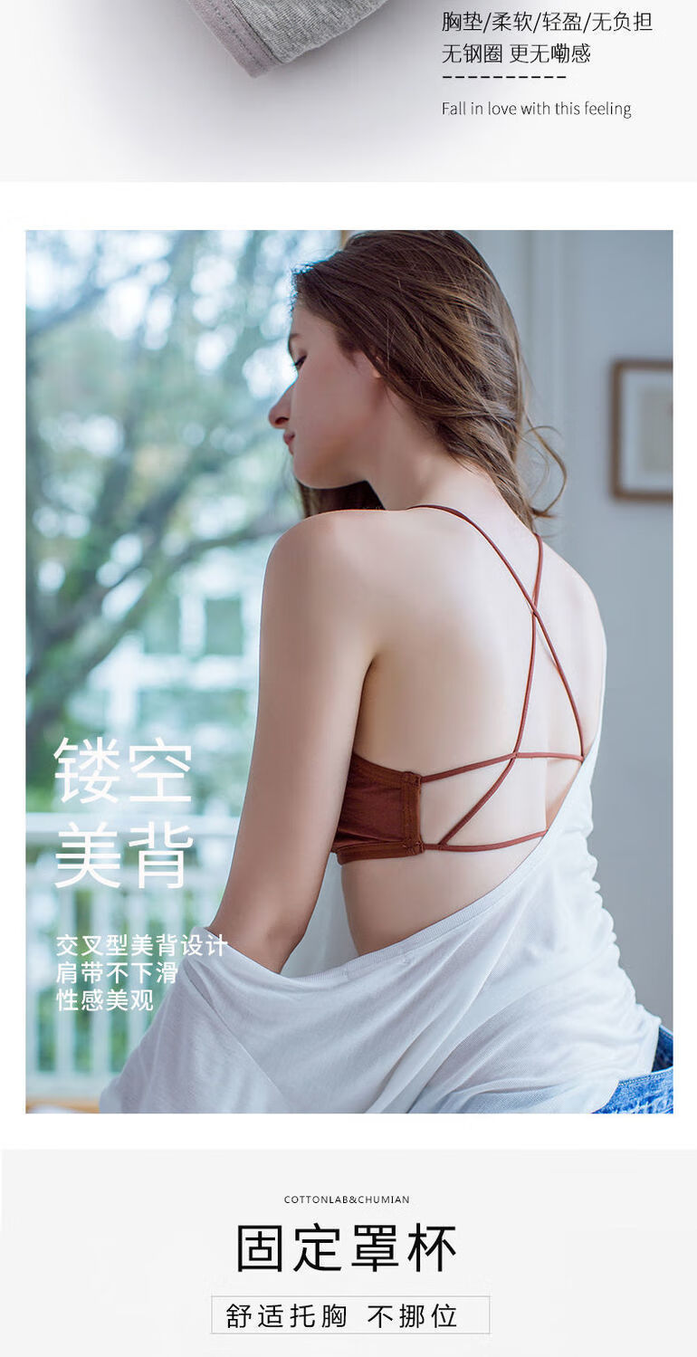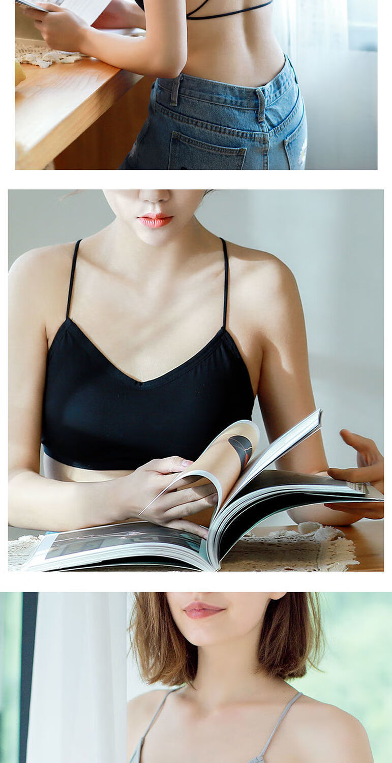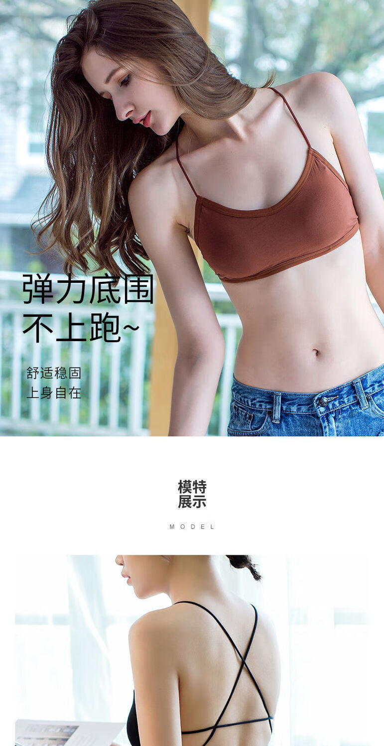 Shannanweimei back sling bra for women without rims pure cotton sports student wrap chest push-up small bra tube top all-in-one underwear black + black 2 pieces L 110-125Jin Jin is equal to 0.5 kg
