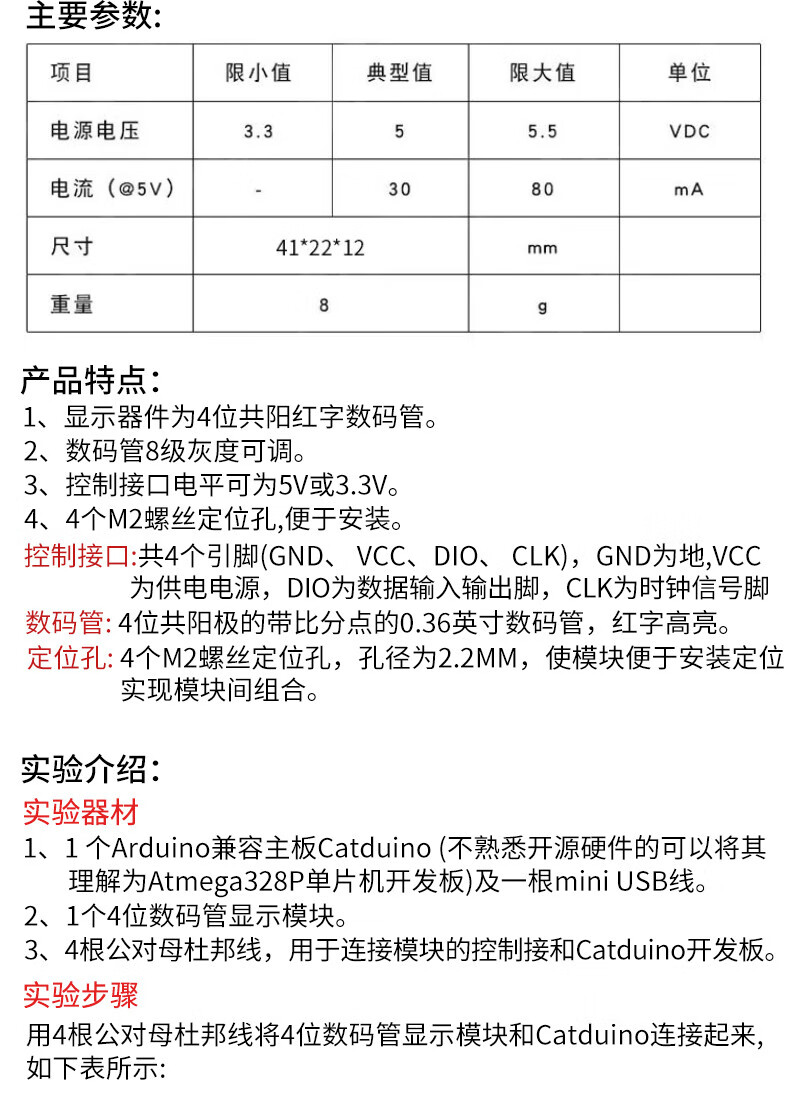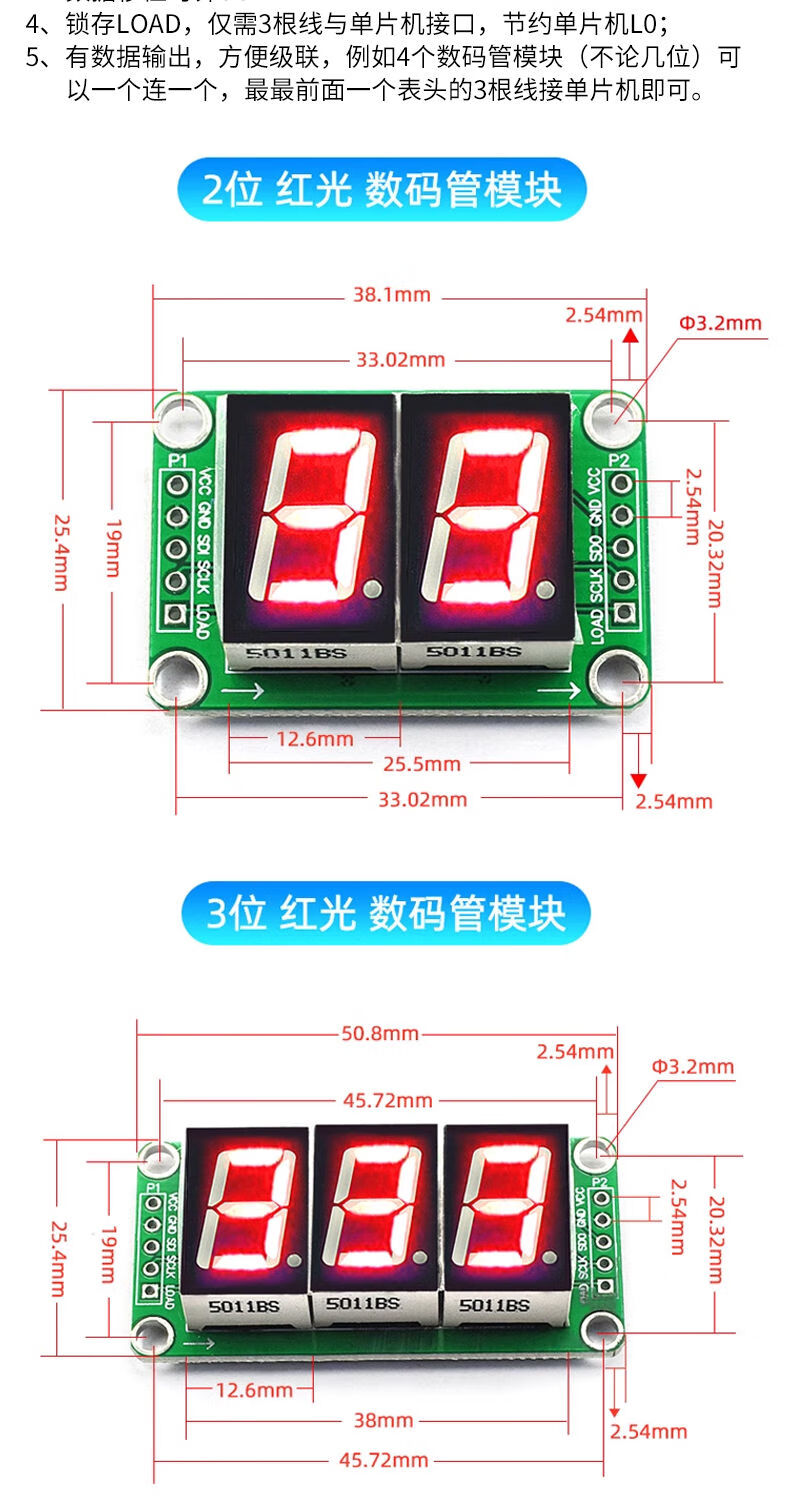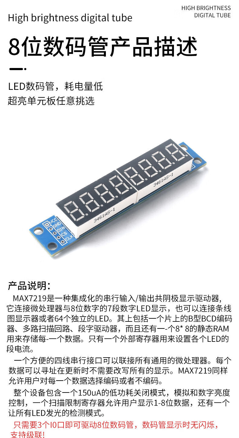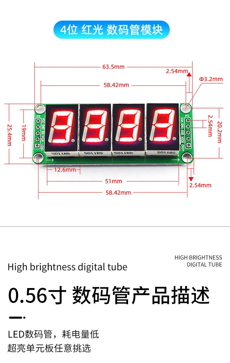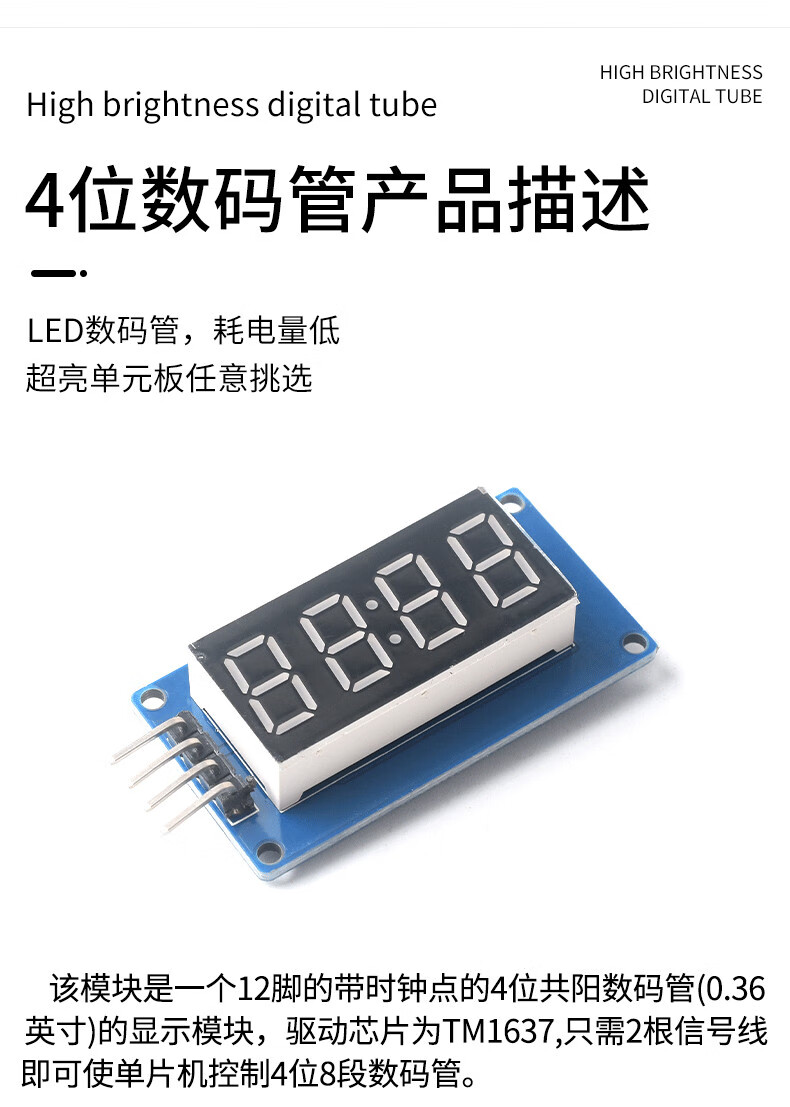 Zejie 4/8-bit tube display module LED brightness adjustable TM1637 serial MAX7219 driver with clock point 0.56-inch red digital tube