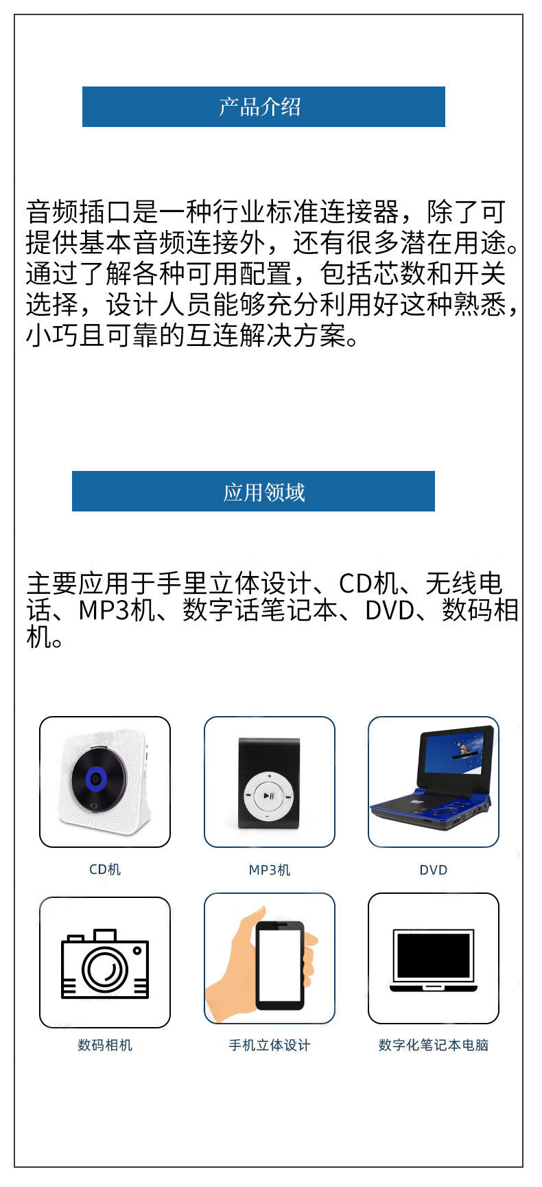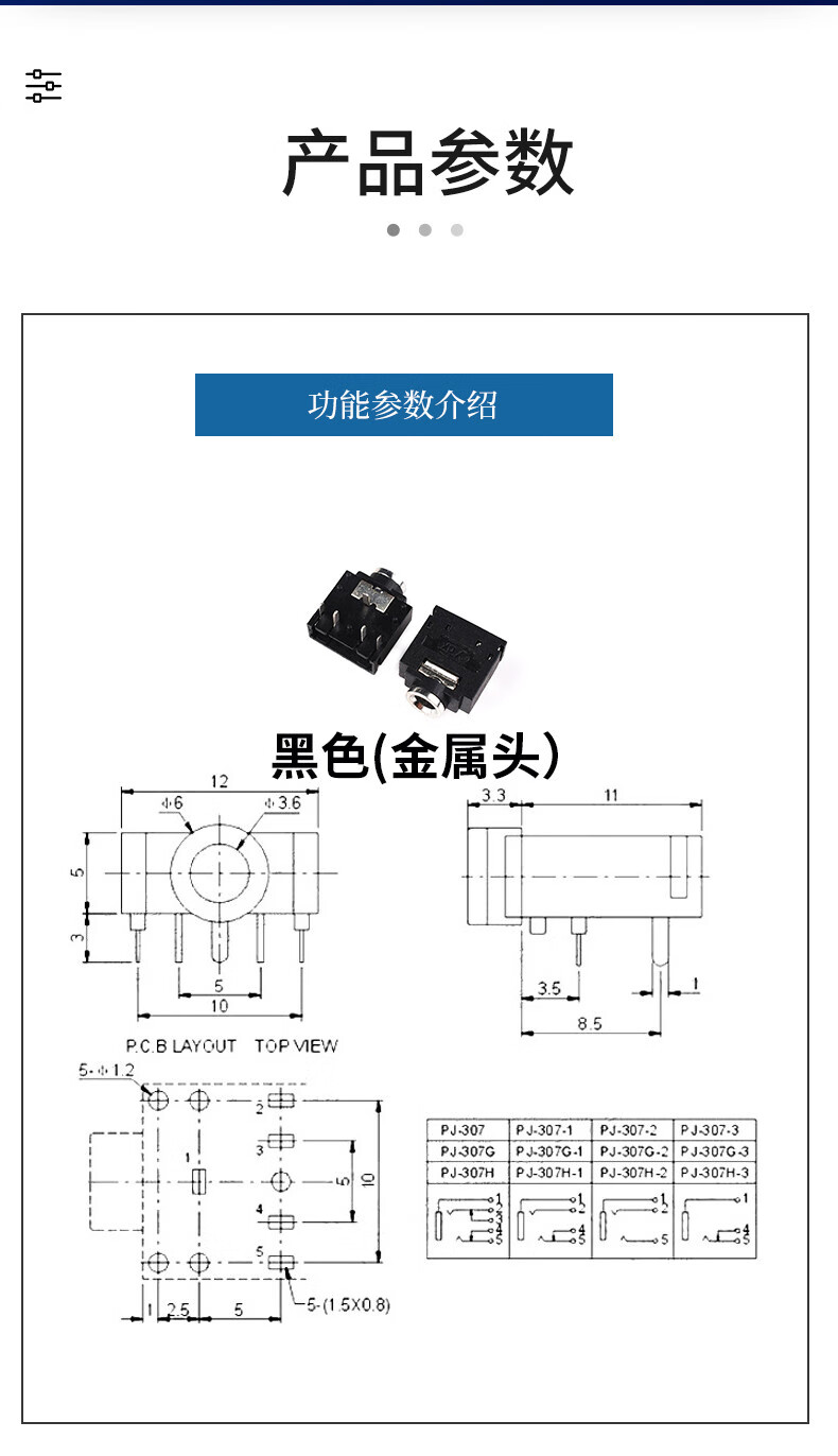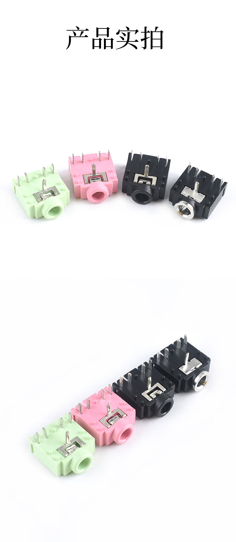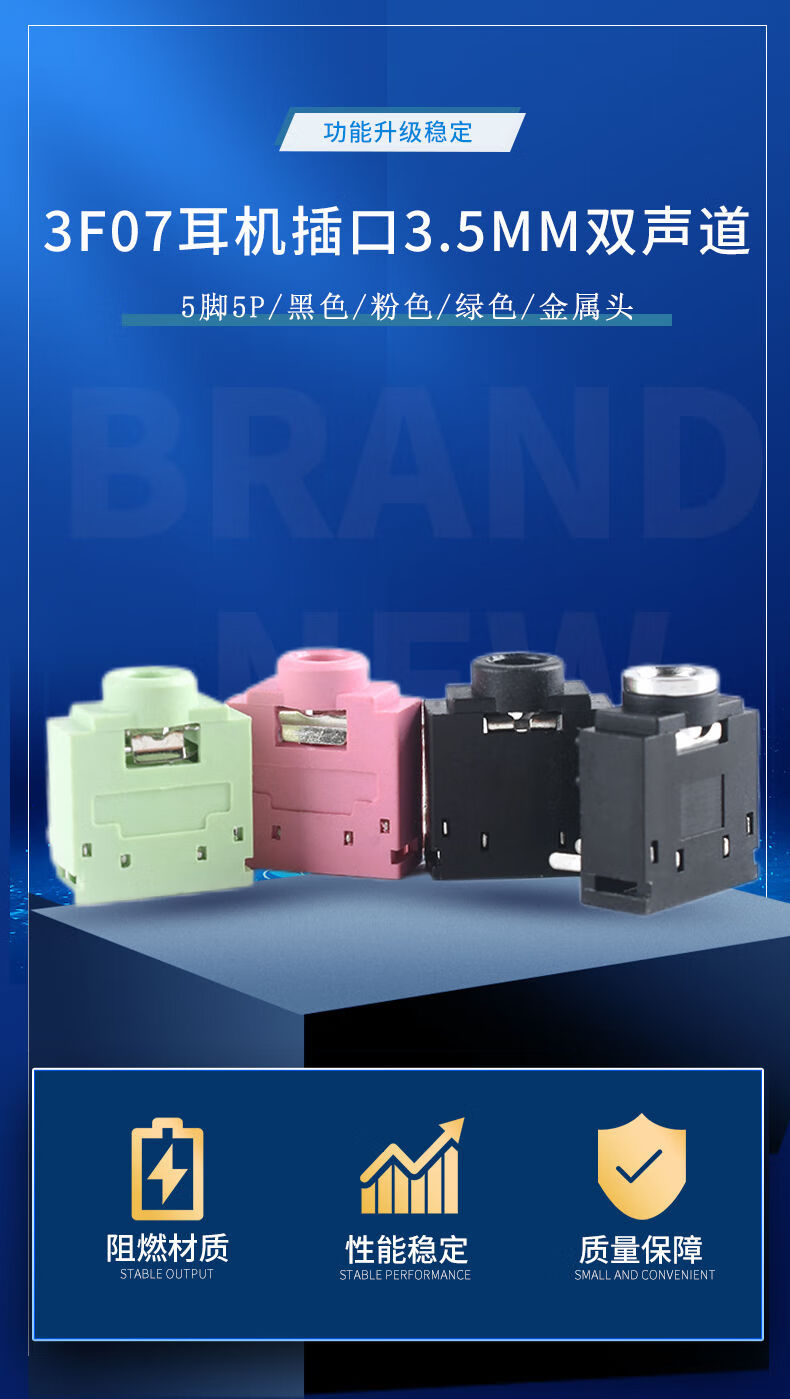 泽杰 3F07耳机插口 3.5MM 双声道立体声音频插座 5脚5P 黑色粉红色粉色 3F07 黑色(金属头)(10个)