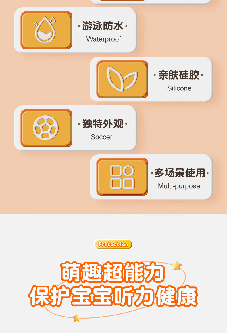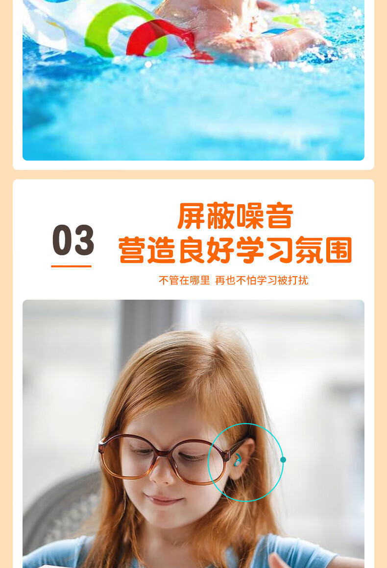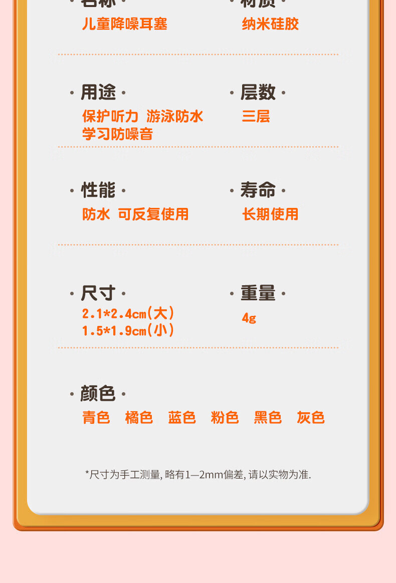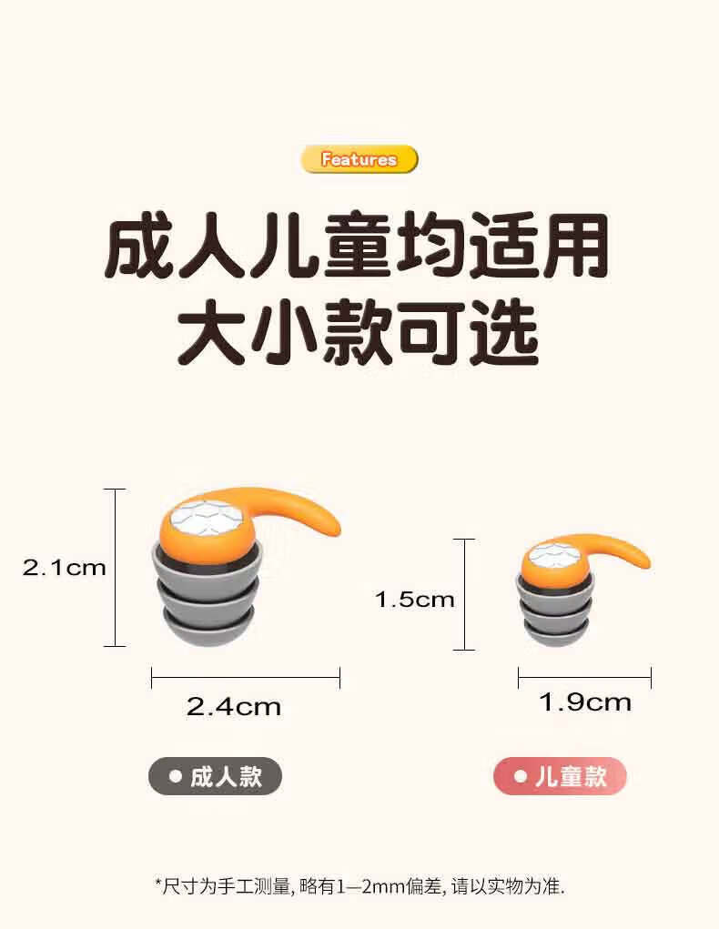 Huaiguoying waterproof earplugs, swimming earplugs, otitis media, bathing and hair washing, silicone ear plugs for adults and children, orange, adult version