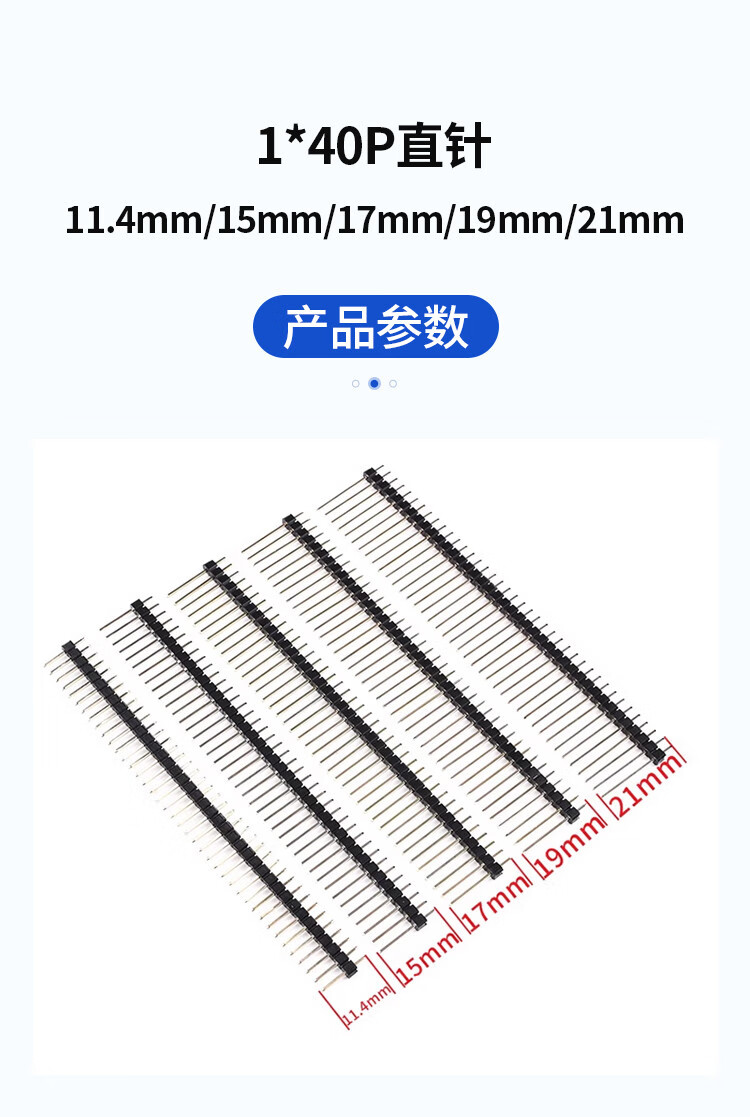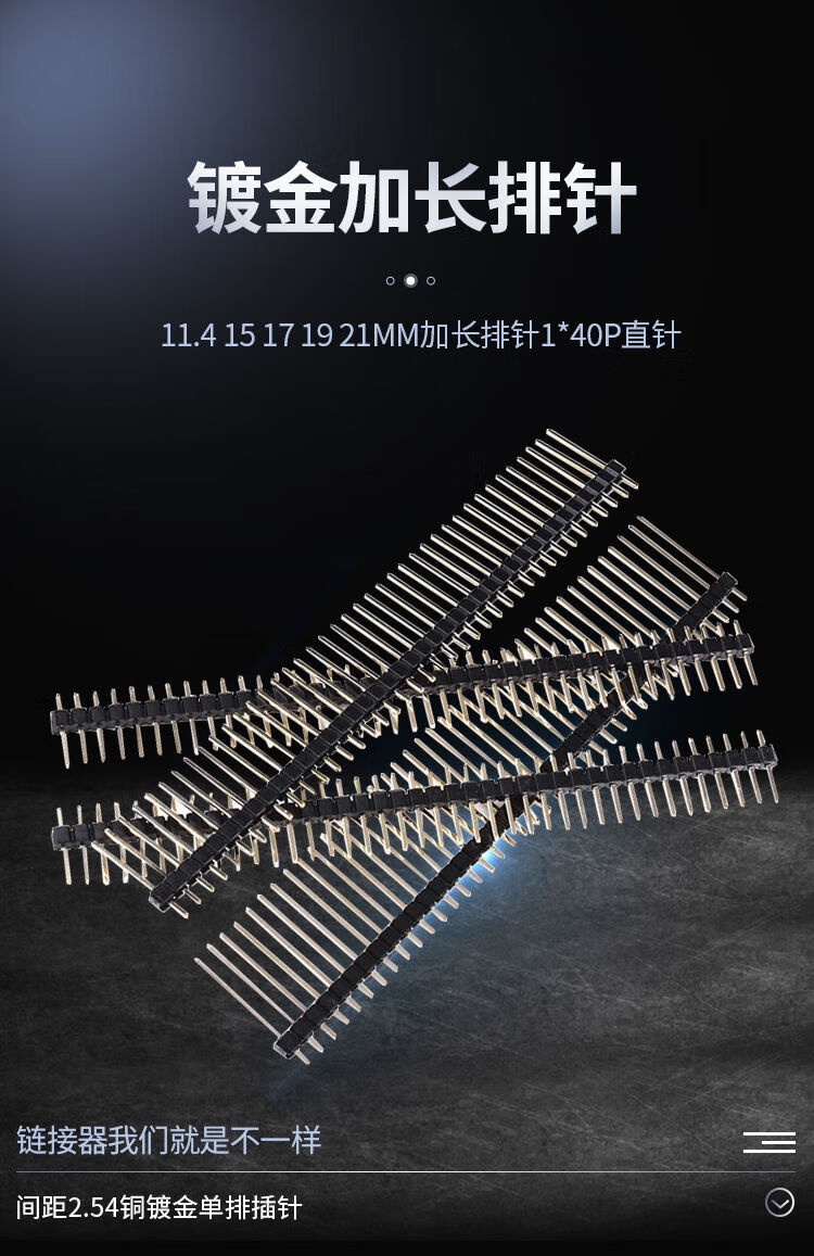 Zejie pitch 2.54 copper gold-plated single row pins 11.4 15 17 19 21mm extended pin row 1*40P straight pin 15mm pin length (10 pcs)