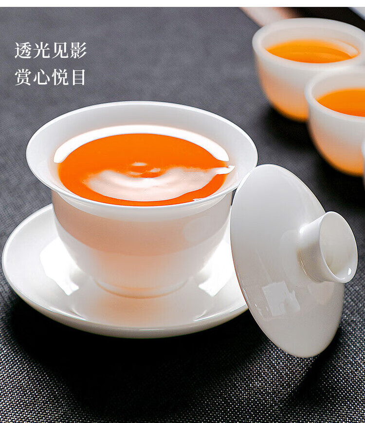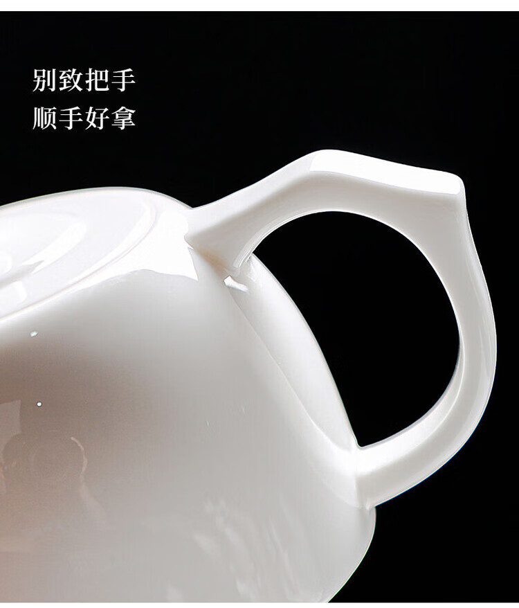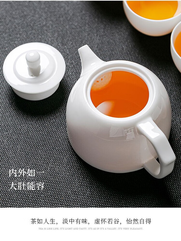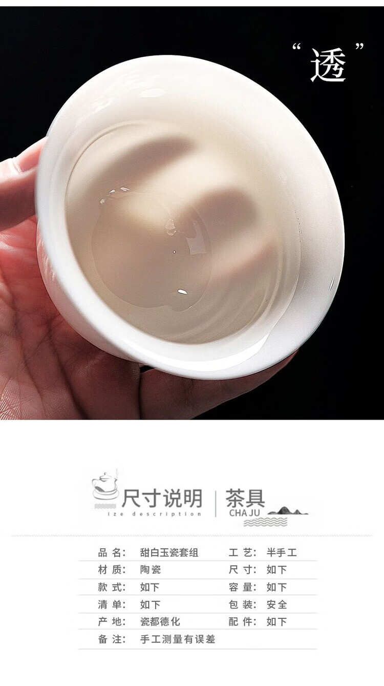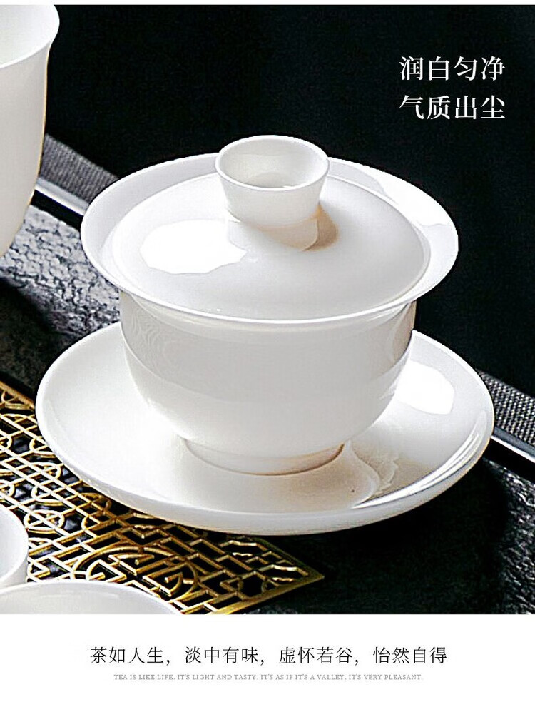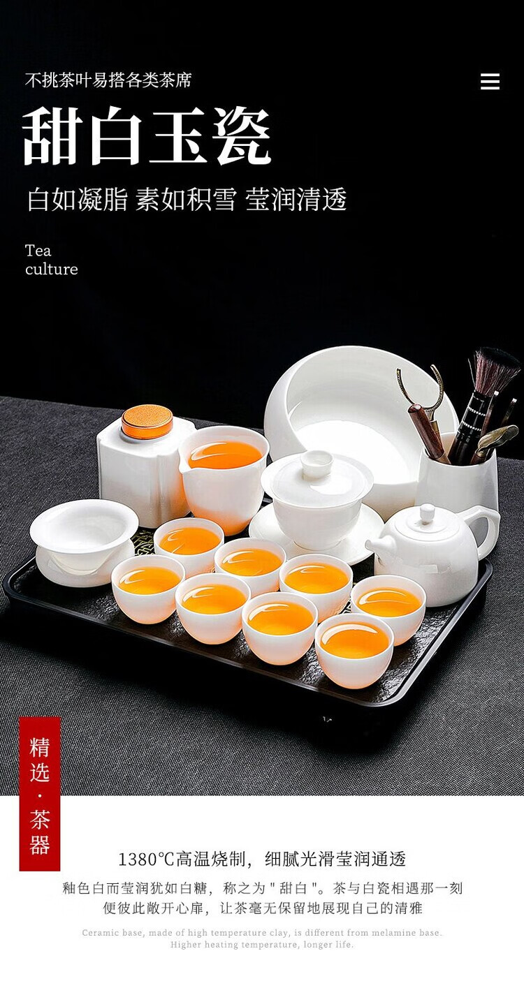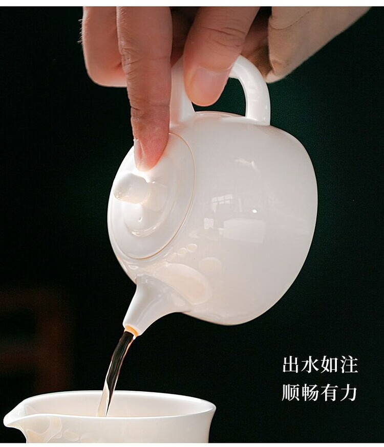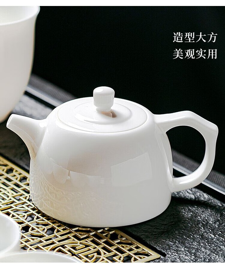 Tuojin German imported quality Dehua mutton-fat jade tea set household light luxury high-end white jade white porcelain kungfu teapot sweet white mutton-fat jade well railing teapot 10 pieces