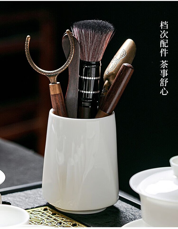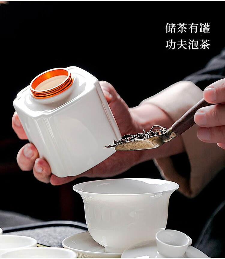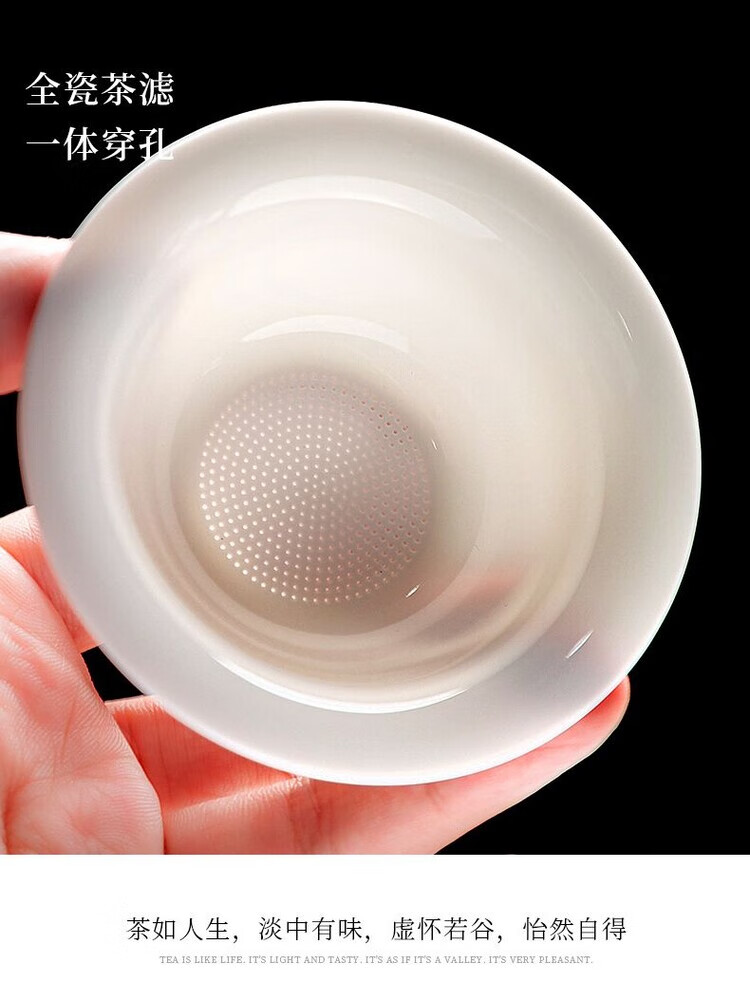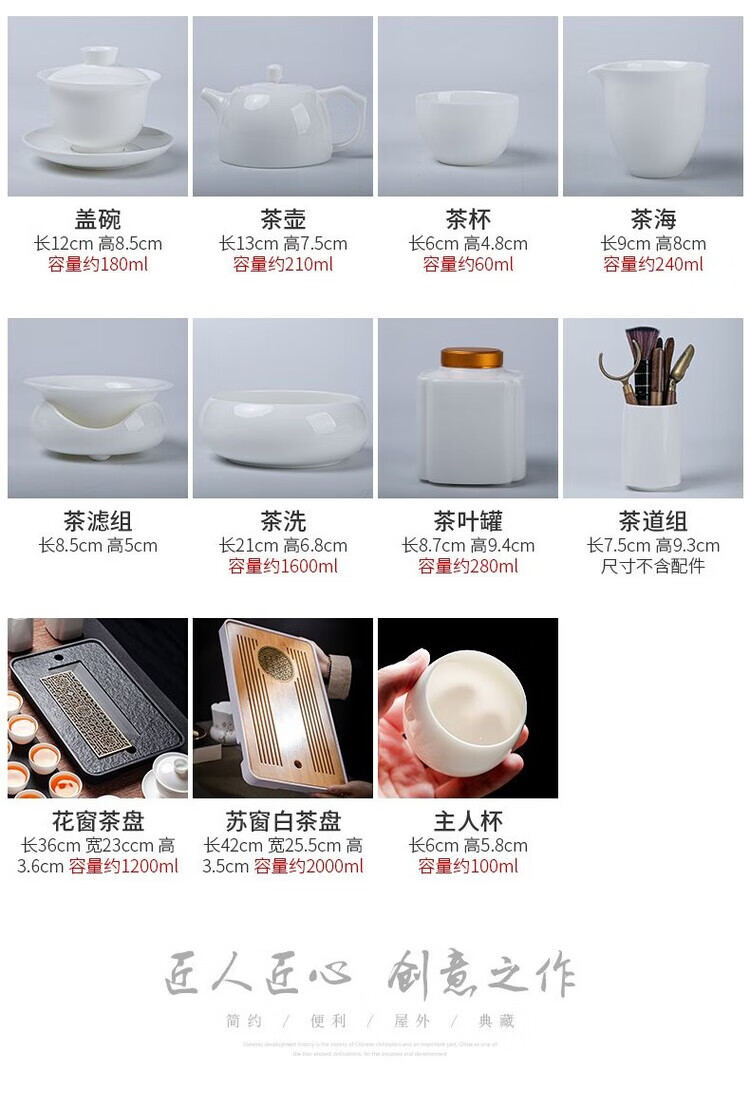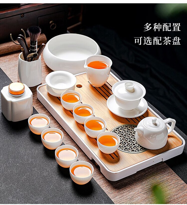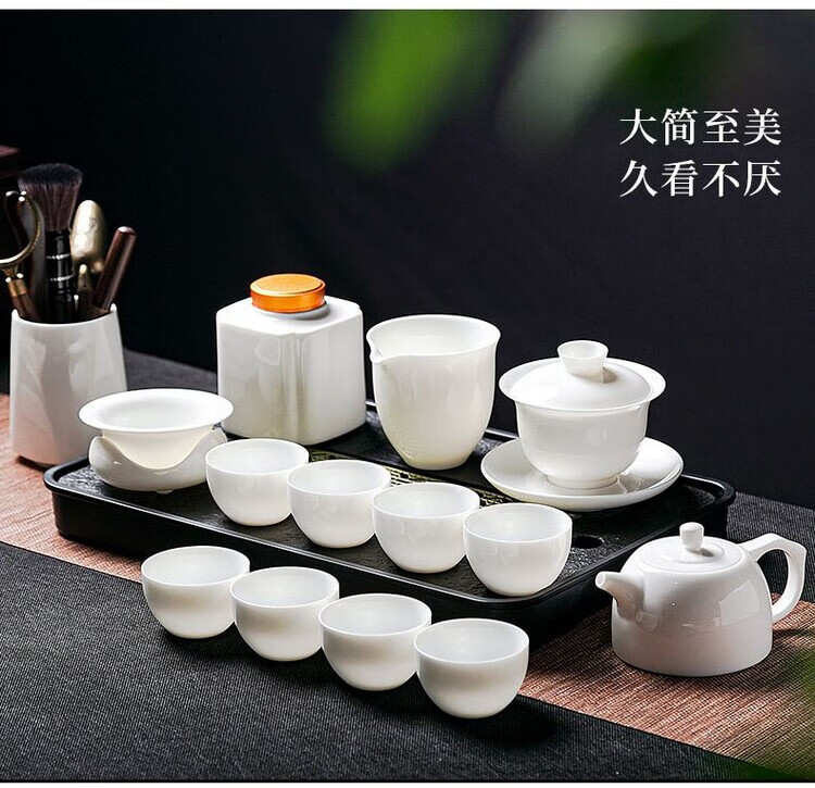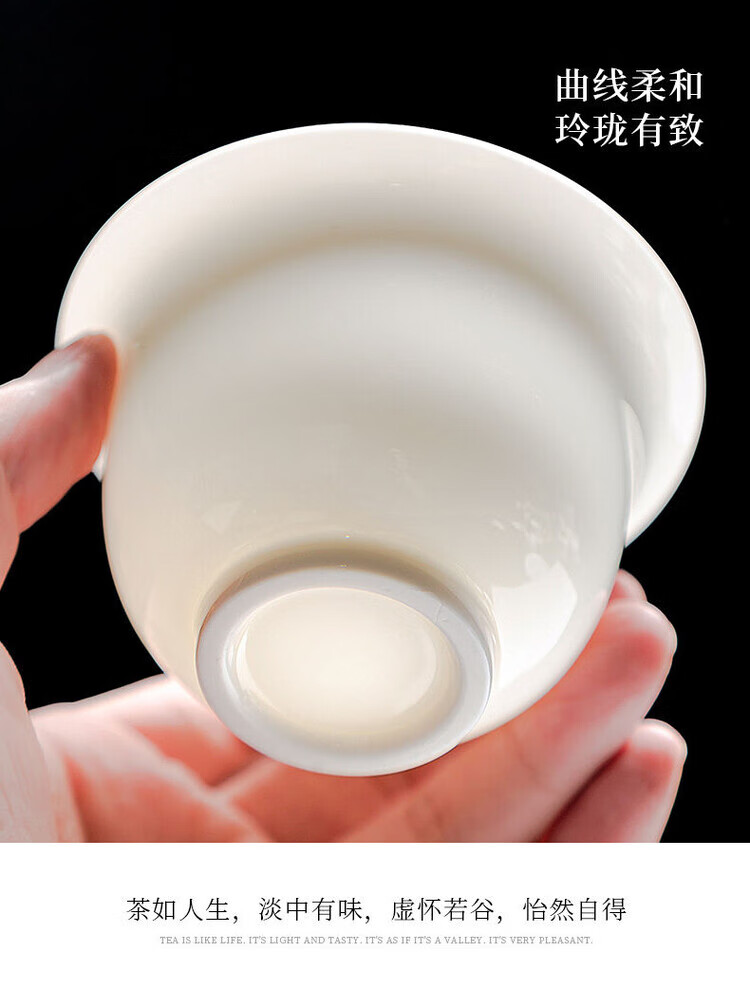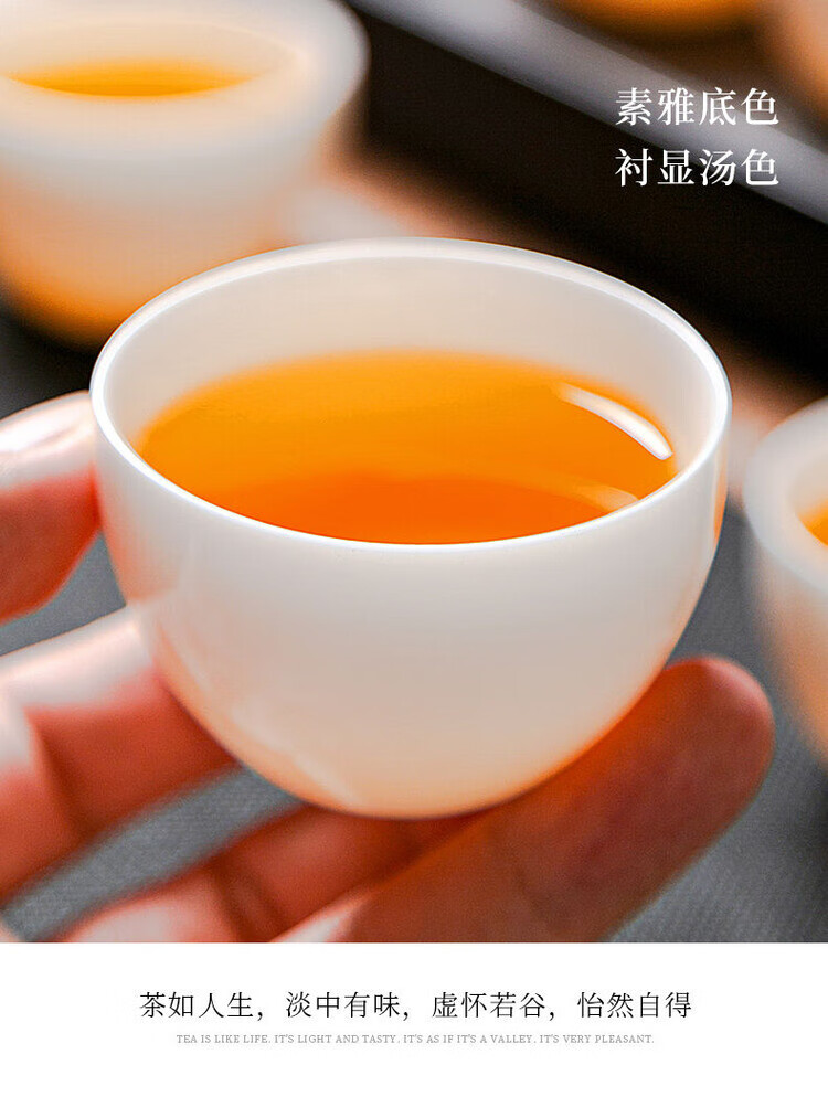 Tuojin German imported quality Dehua mutton-fat jade tea set household light luxury high-end white jade white porcelain kungfu teapot sweet white mutton-fat jade well railing teapot 10 pieces