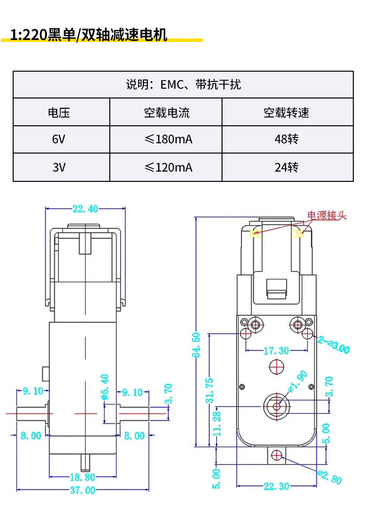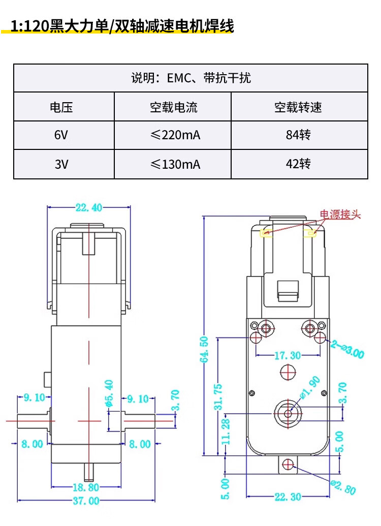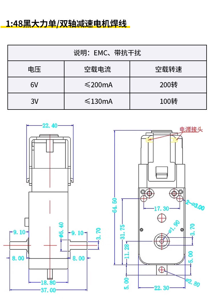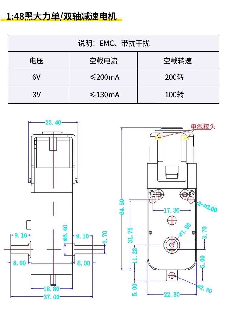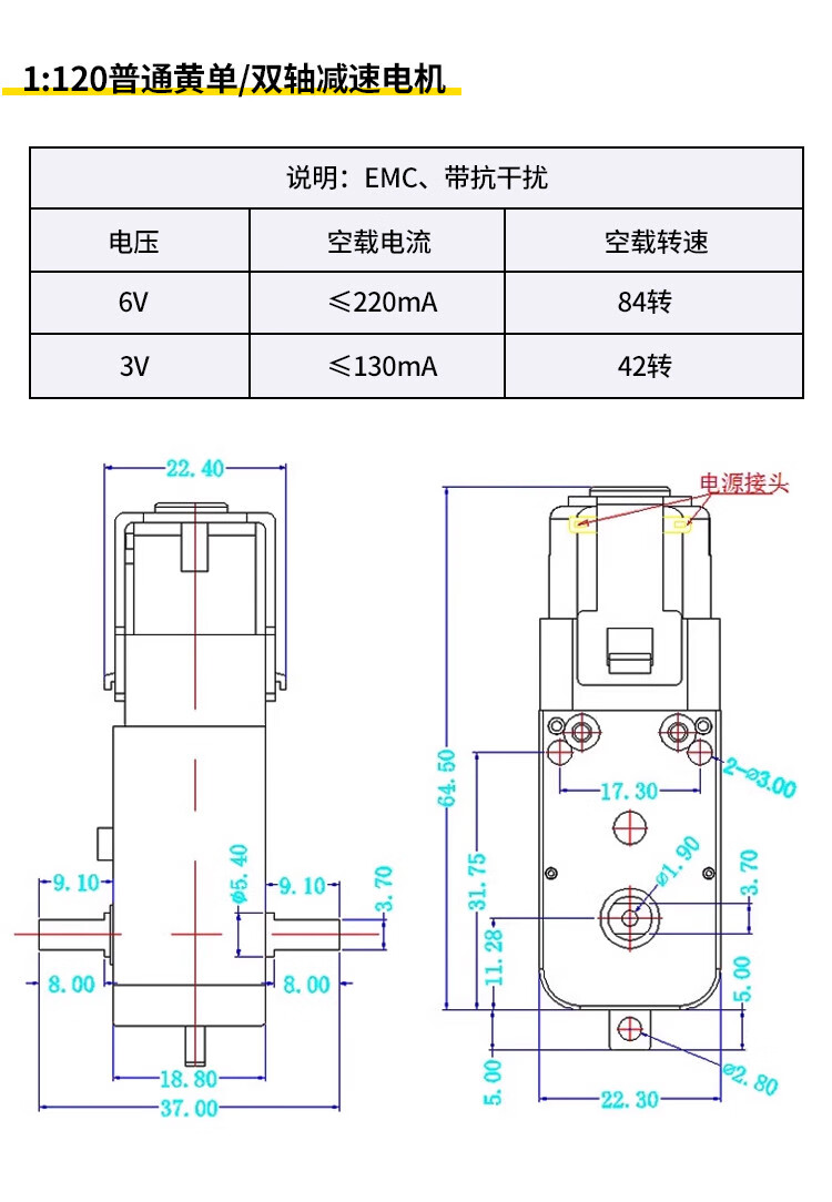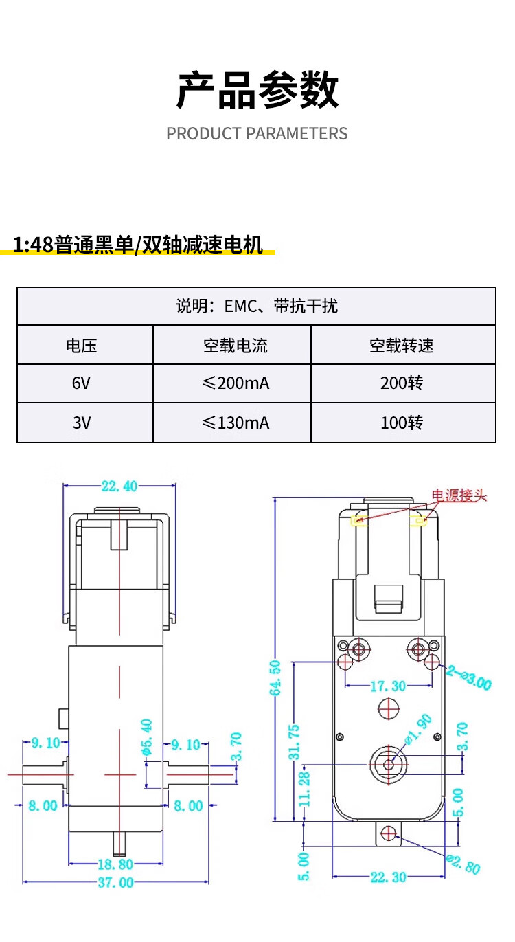 Zejie TT motor 130 motor robot reduction motor smart car/smart car reduction motor high horsepower 1 48 black powerful single axis reduction motor
