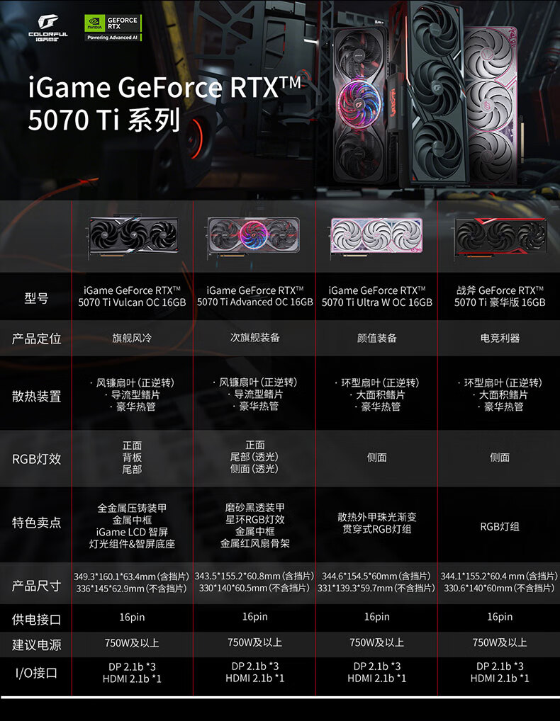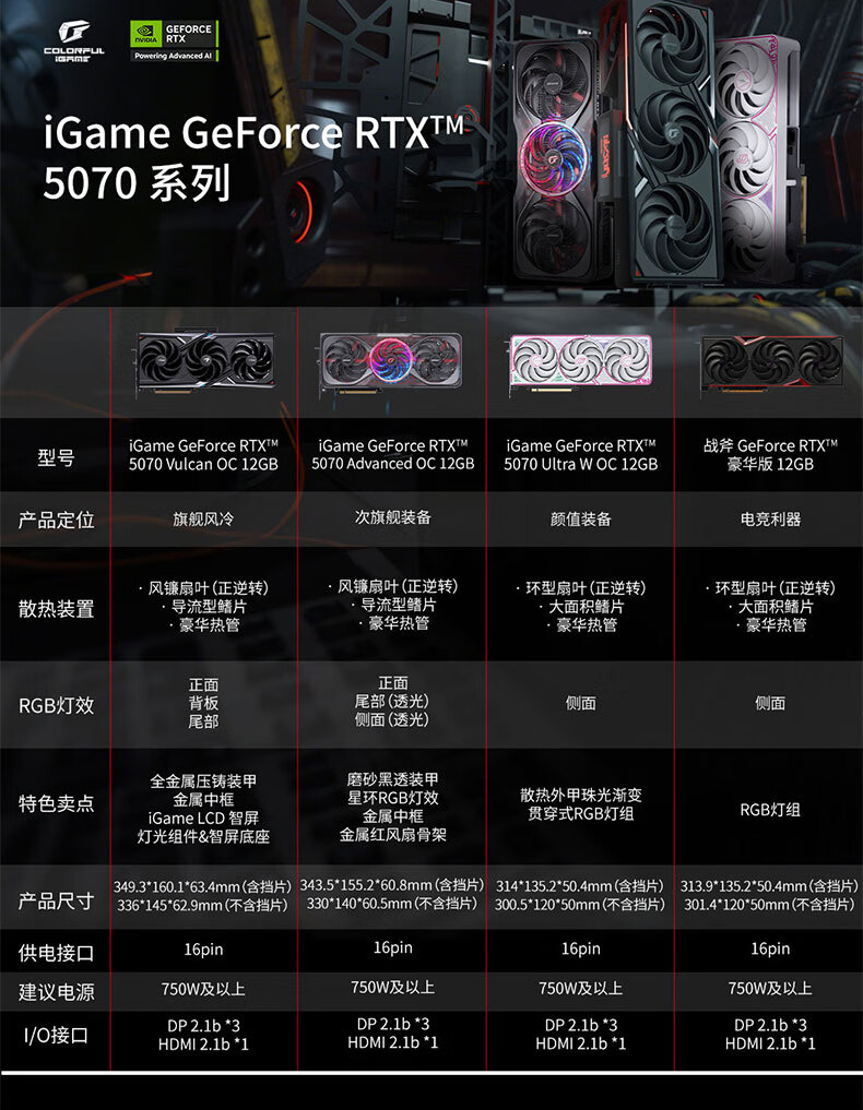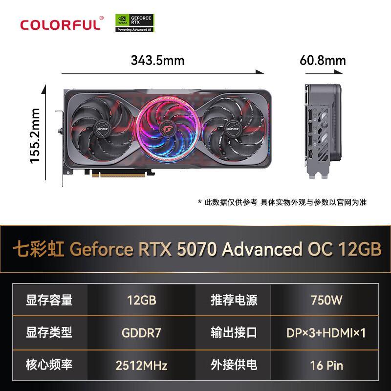 Colorful RTX 5070Ti E-sports game design AI rendering live broadcast desktop assembly computer independent graphics card 5070 Vulcan OC 12G