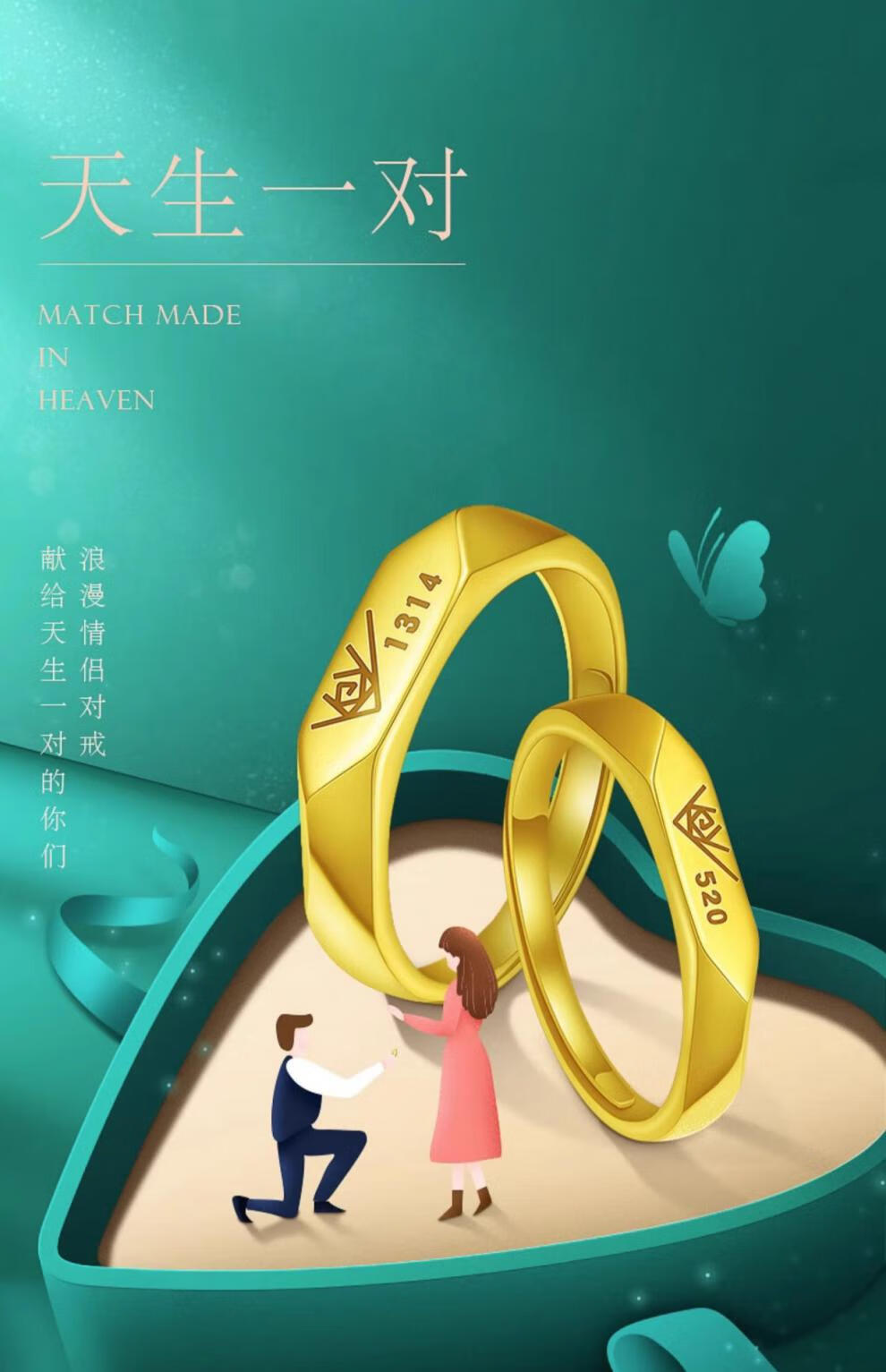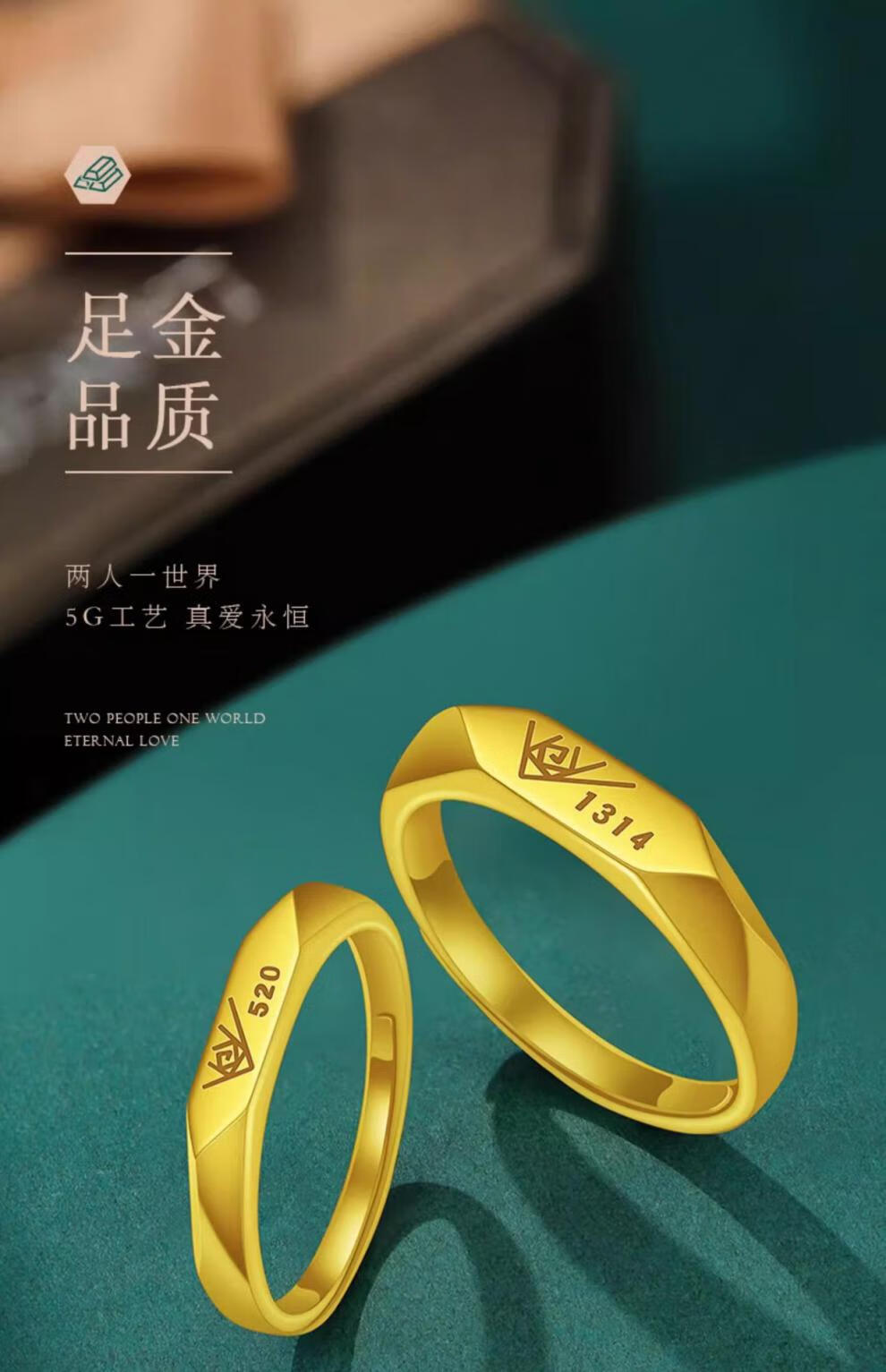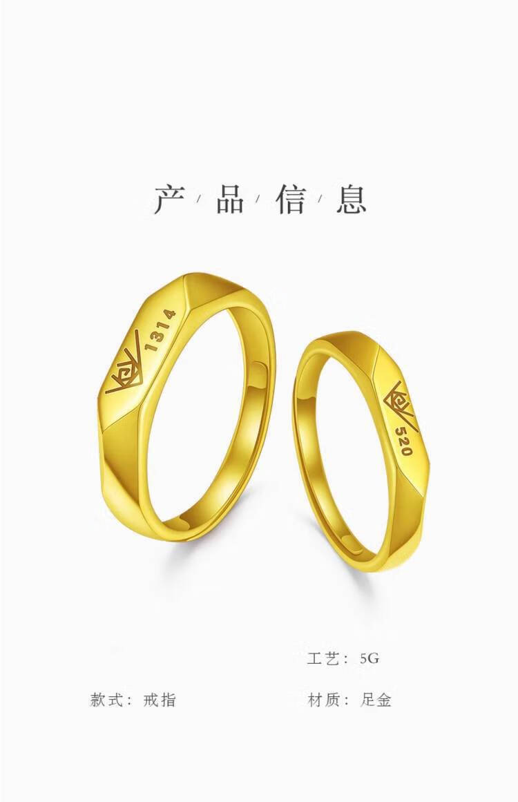 Taijufu gold-wrapped silver ring for women gold color 1314 couple ring 520 live ring for men to give to girlfriend birthday gift 520 women's one