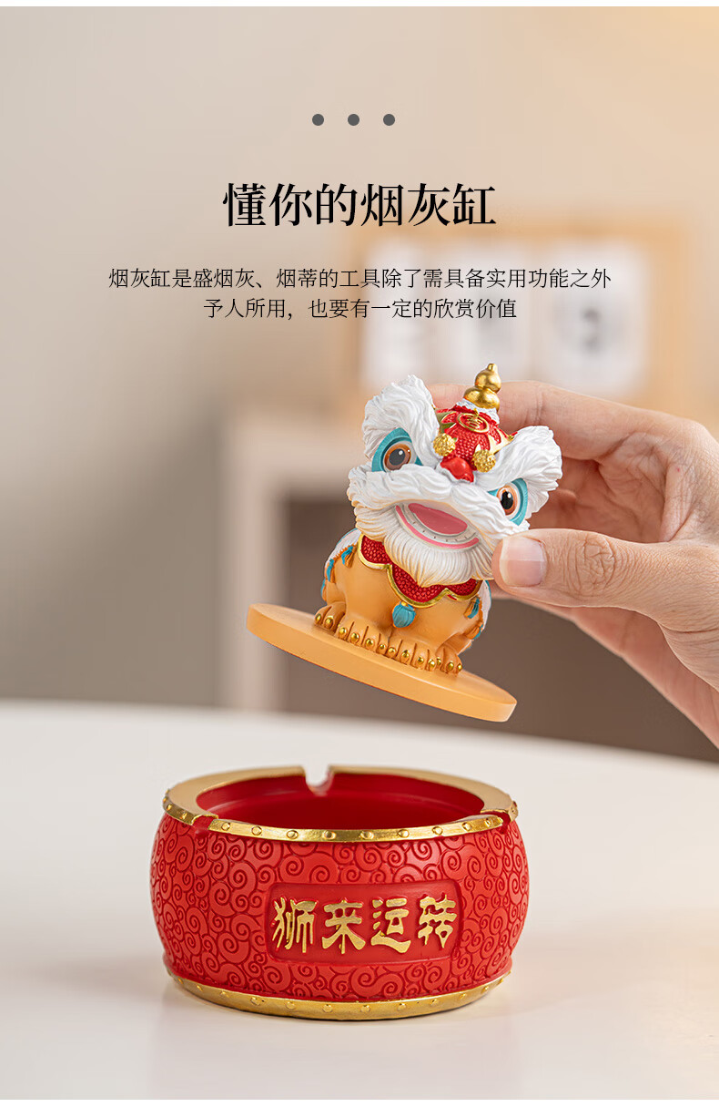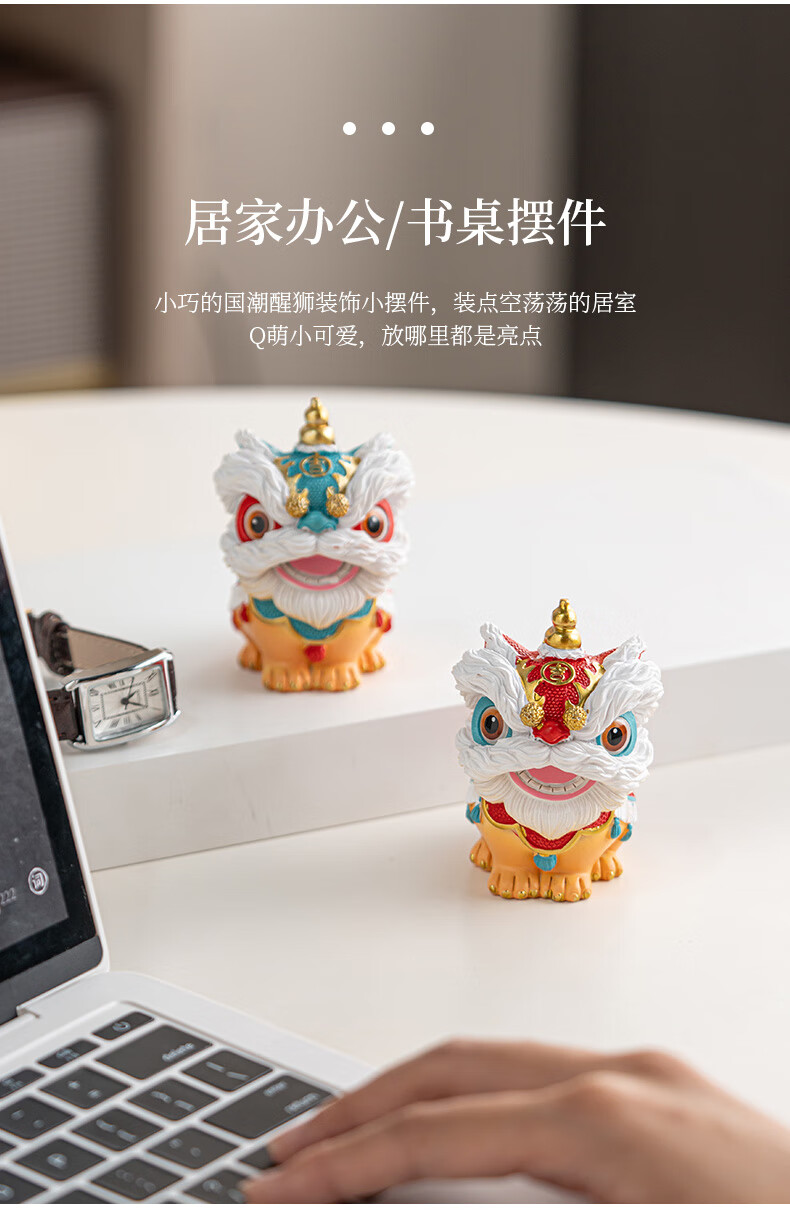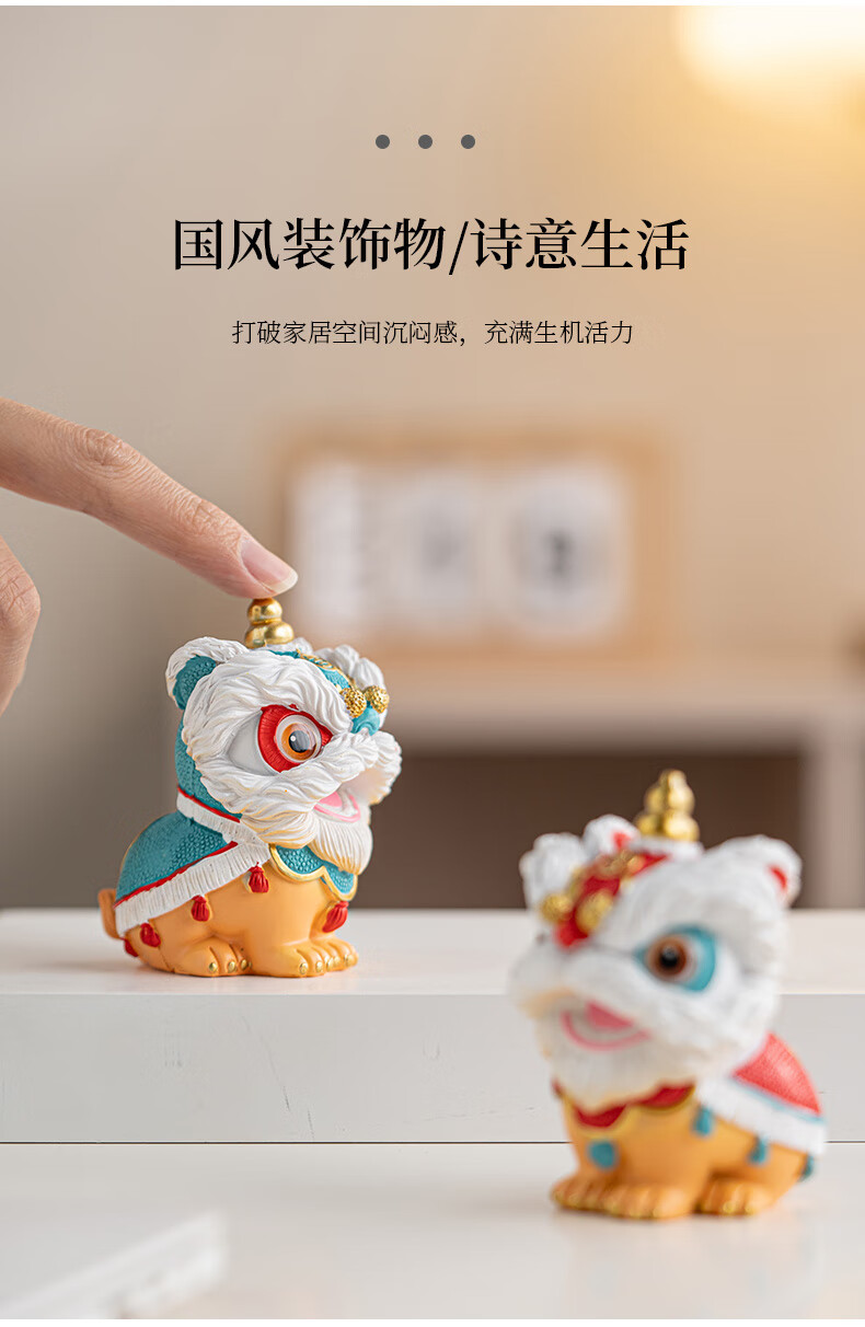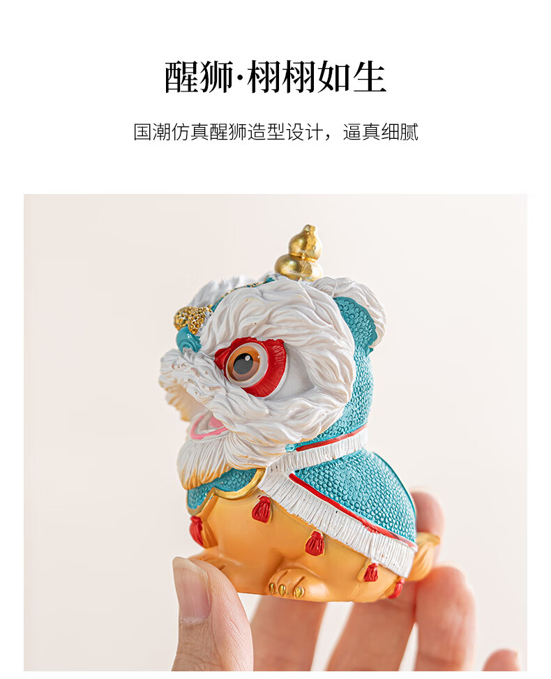 Yundi Tea Pet National Trend Lion Wake Lucky Ornament Tea Table Ashtray with Cover Home Decoration Living Room Cultural and Creative Entrance Small Lion Dance Lion Wake Ornament-Red