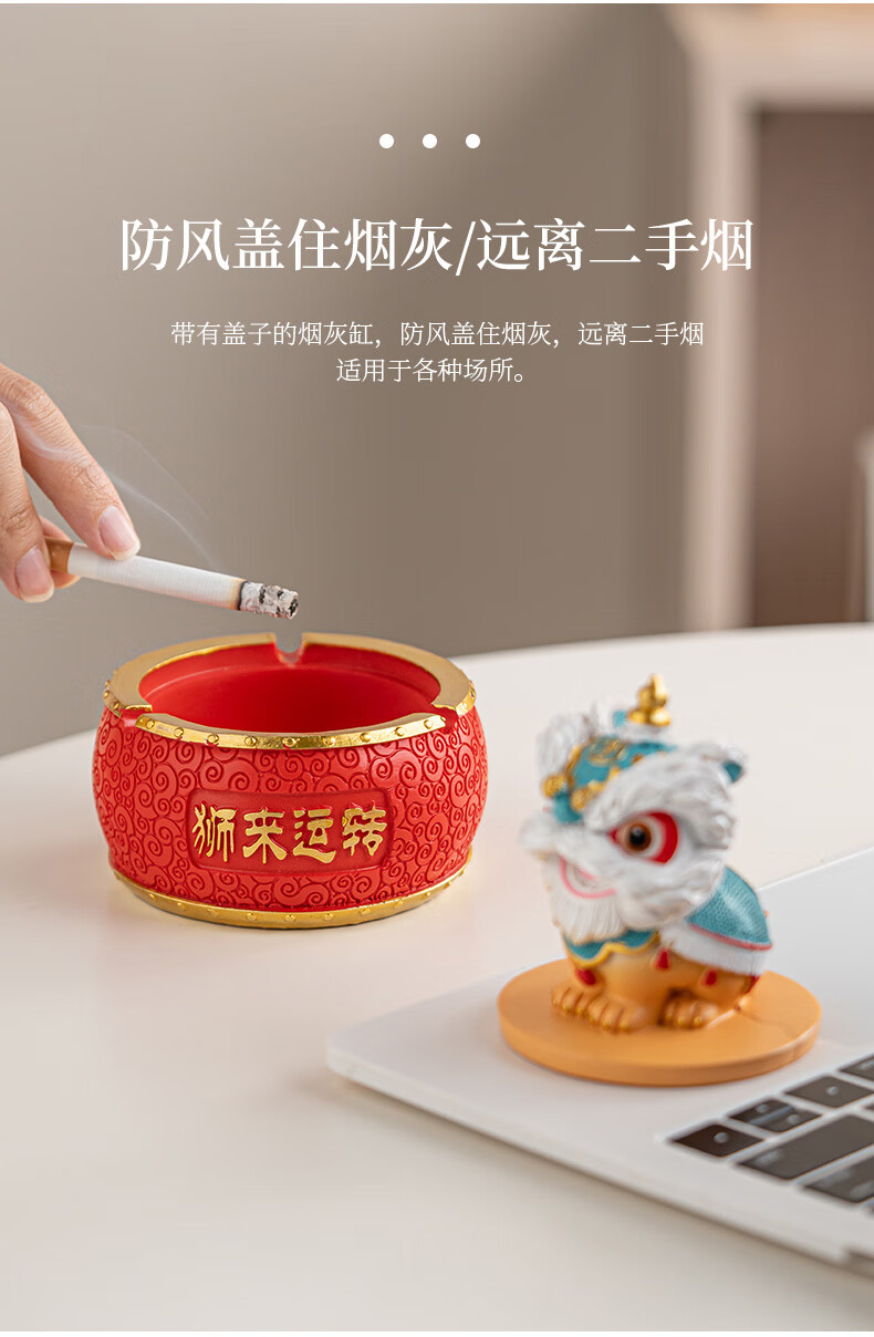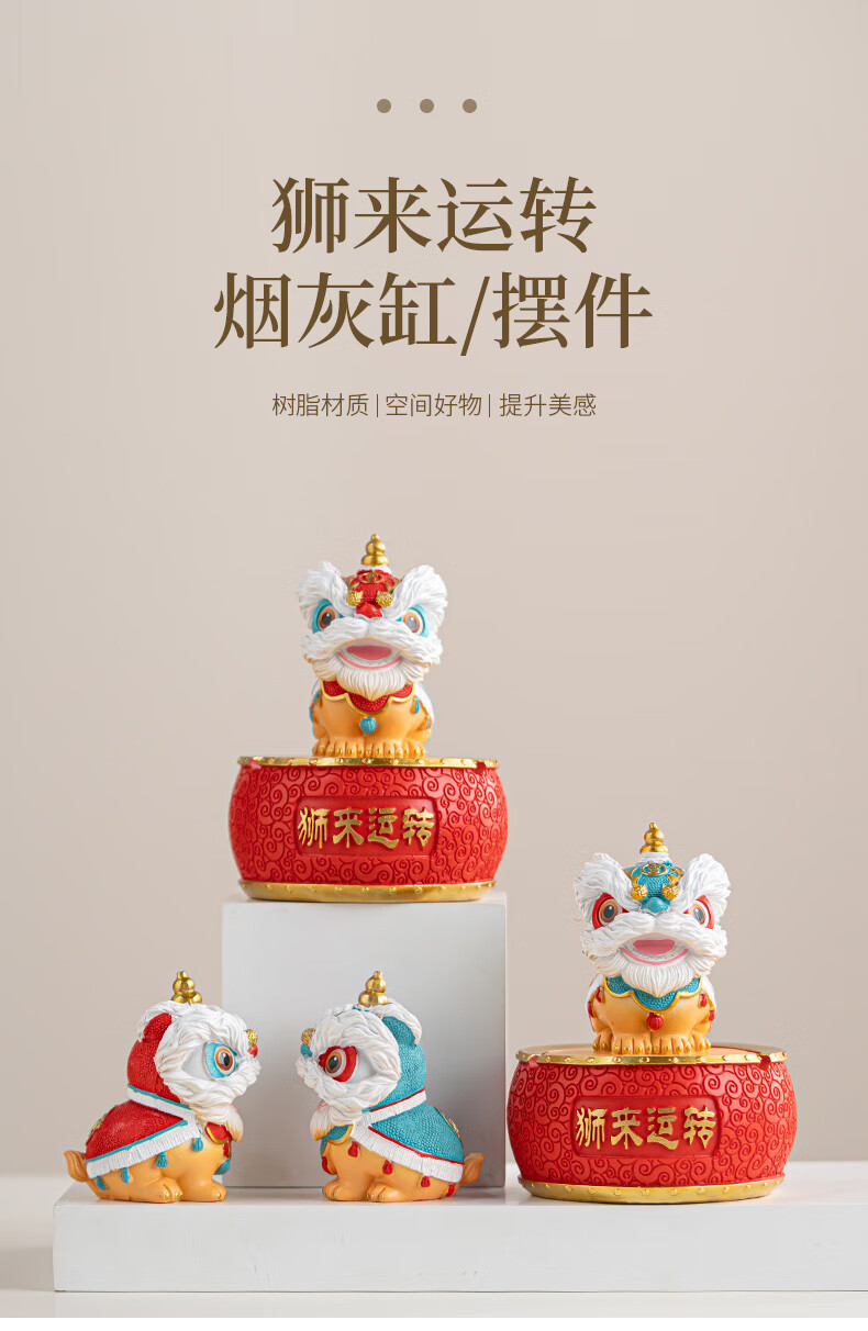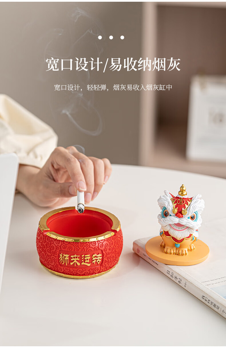 Yundi Tea Pet National Trend Lion Wake Lucky Ornament Tea Table Ashtray with Cover Home Decoration Living Room Cultural and Creative Entrance Small Lion Dance Lion Wake Ornament-Red