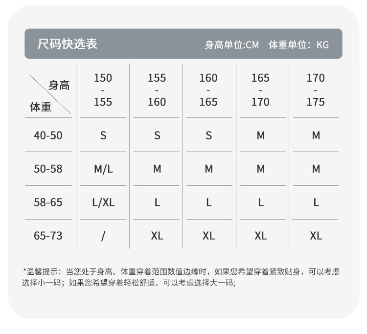 China (cm) 160-165/84-86 165-170 / 88-90 167-172 / 92-96 168-173 / 98-102 170-176 / 106-110