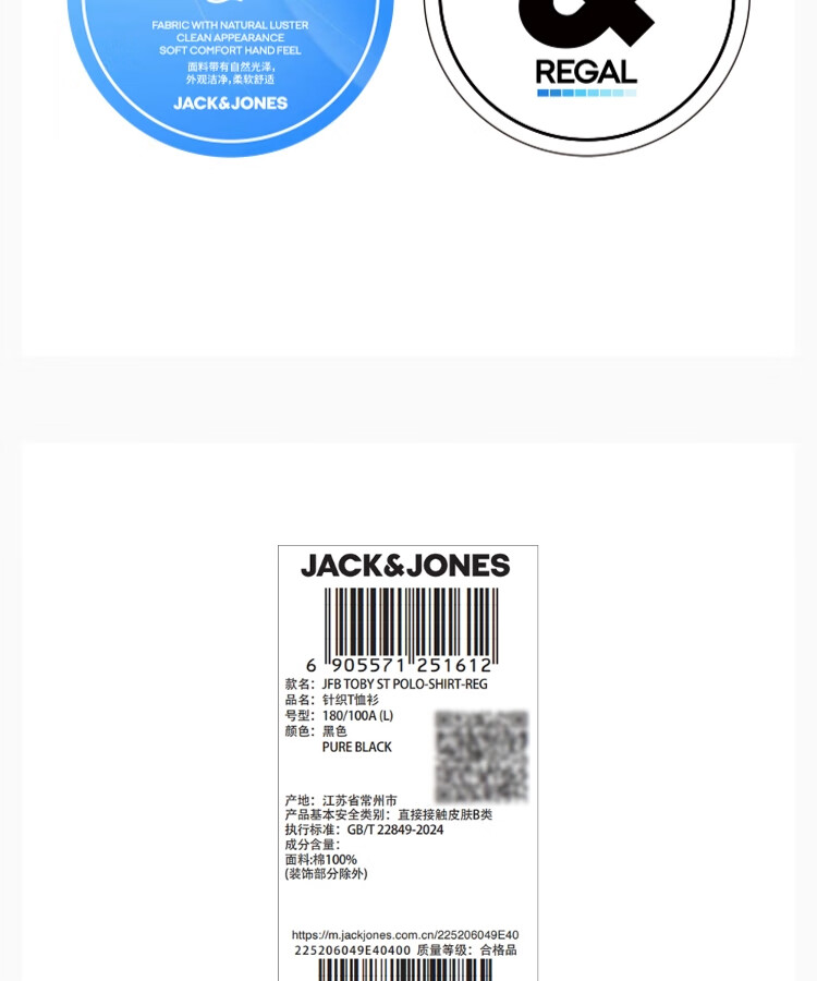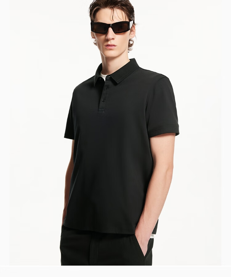 JACK&JONES men's new summer style solid color cotton logo embroidered lapel straight business casual short sleeves 225206049 E40 black regular M (175)