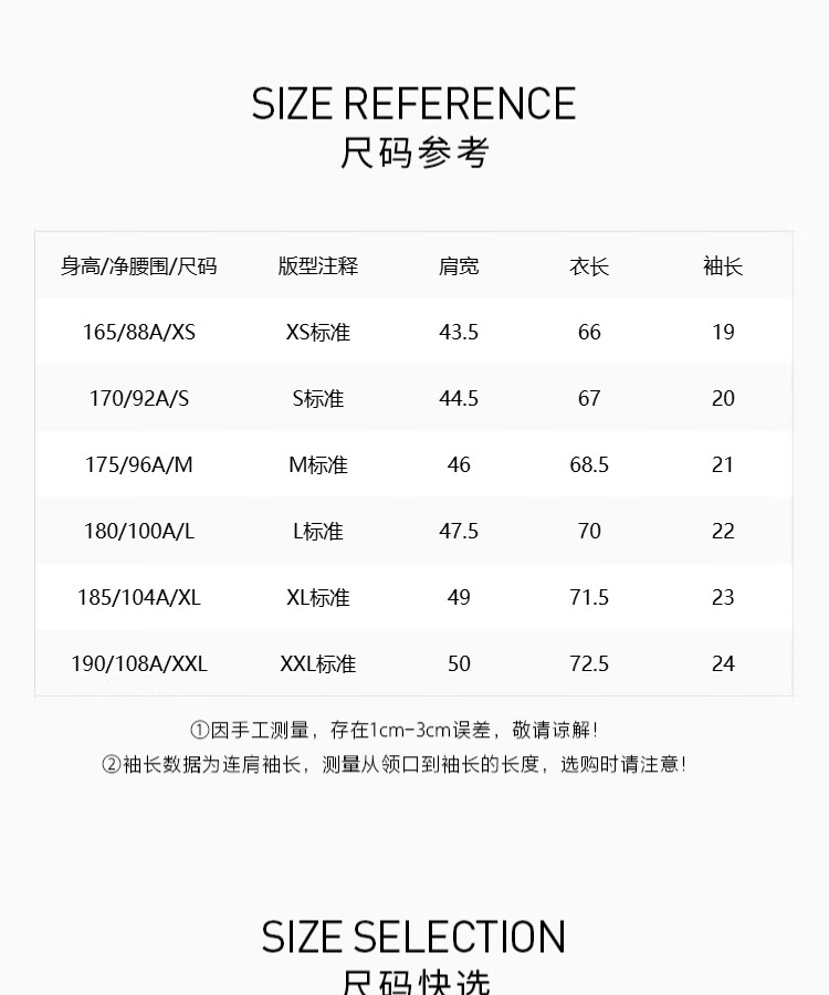 China (cm) 160-165/84-86 165-170 / 88-90 167-172 / 92-96 168-173 / 98-102 170-176 / 106-110