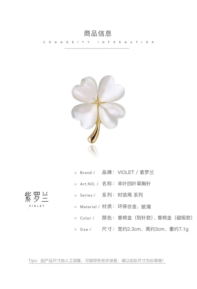 Yadige Lucky Leaf Clover Brooch, High-end Women's Exquisite Small Corsage, 2023 New Trendy Pin, Champagne Gold Pin