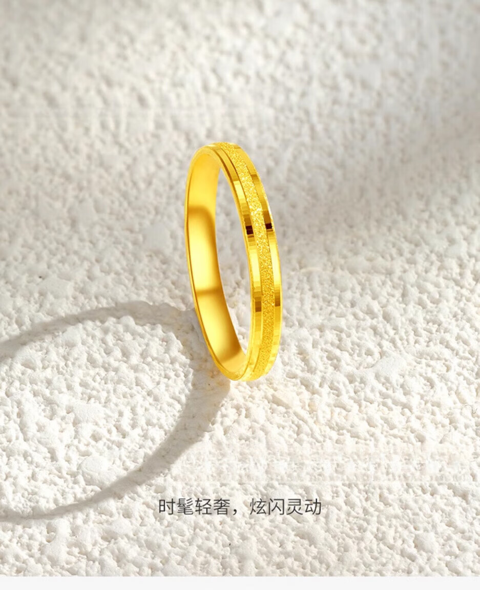 Miaojufu new gold-plated silver-clad Sansheng Sanshi plain ring Huaguang pure gold 999 ancient method ring for men and women couples ring ceremony Huaguang ring gold 0.5g-No. 19