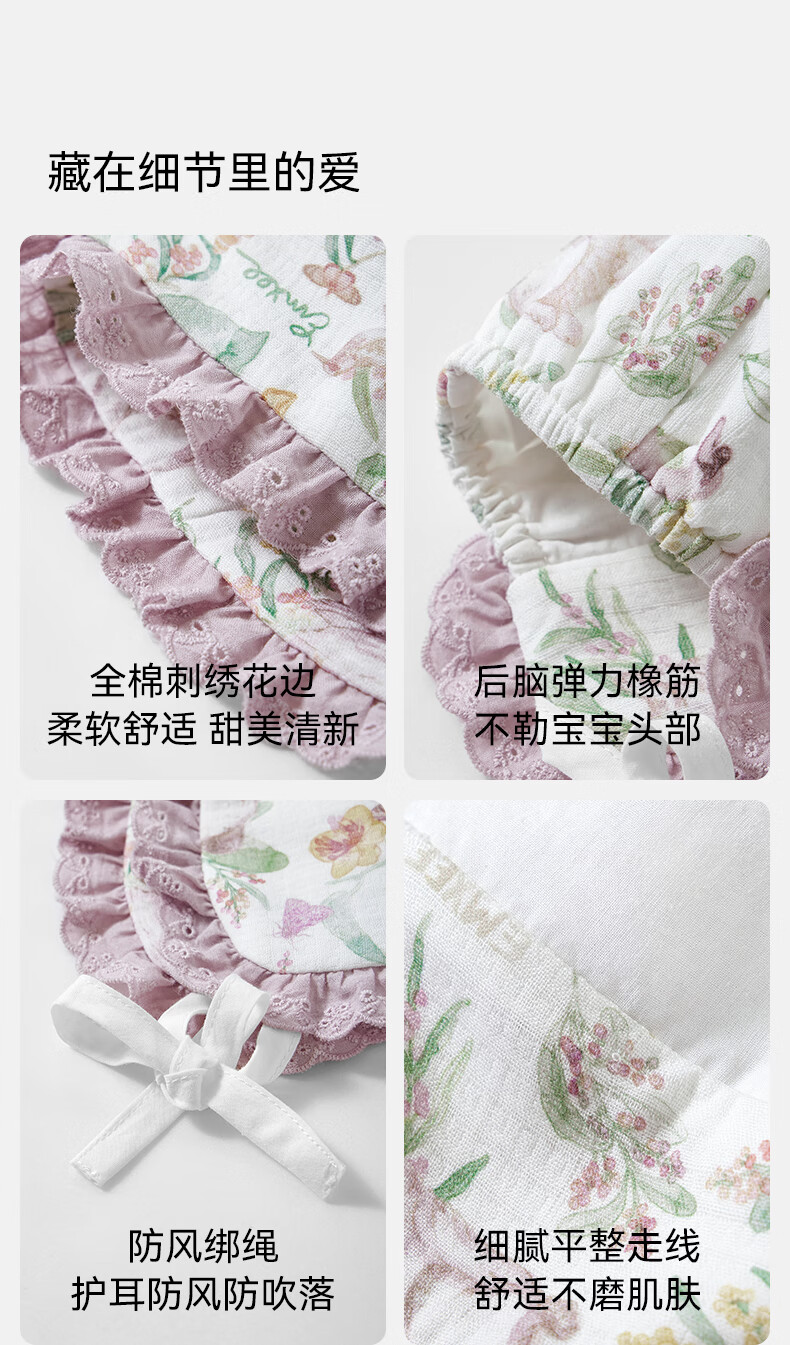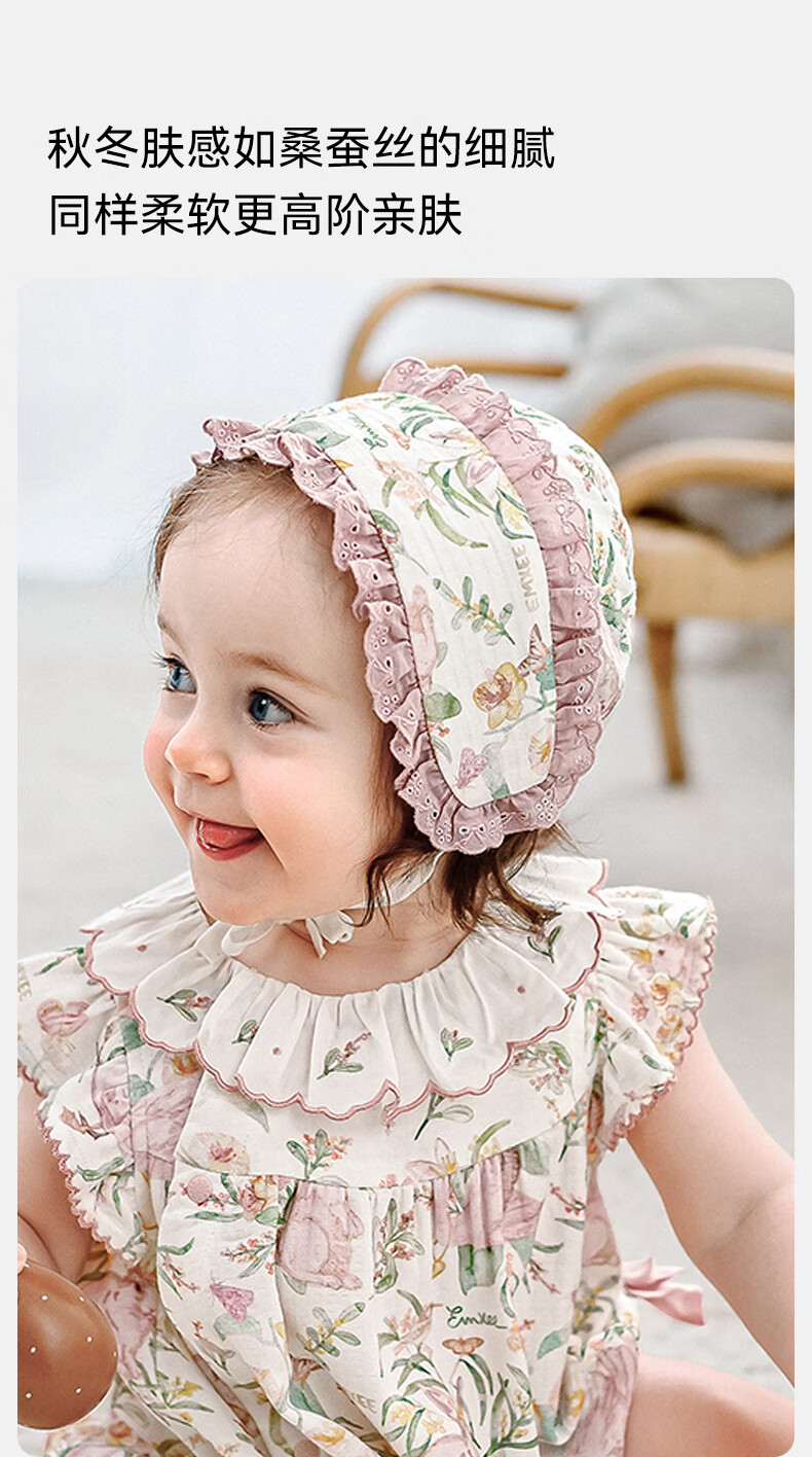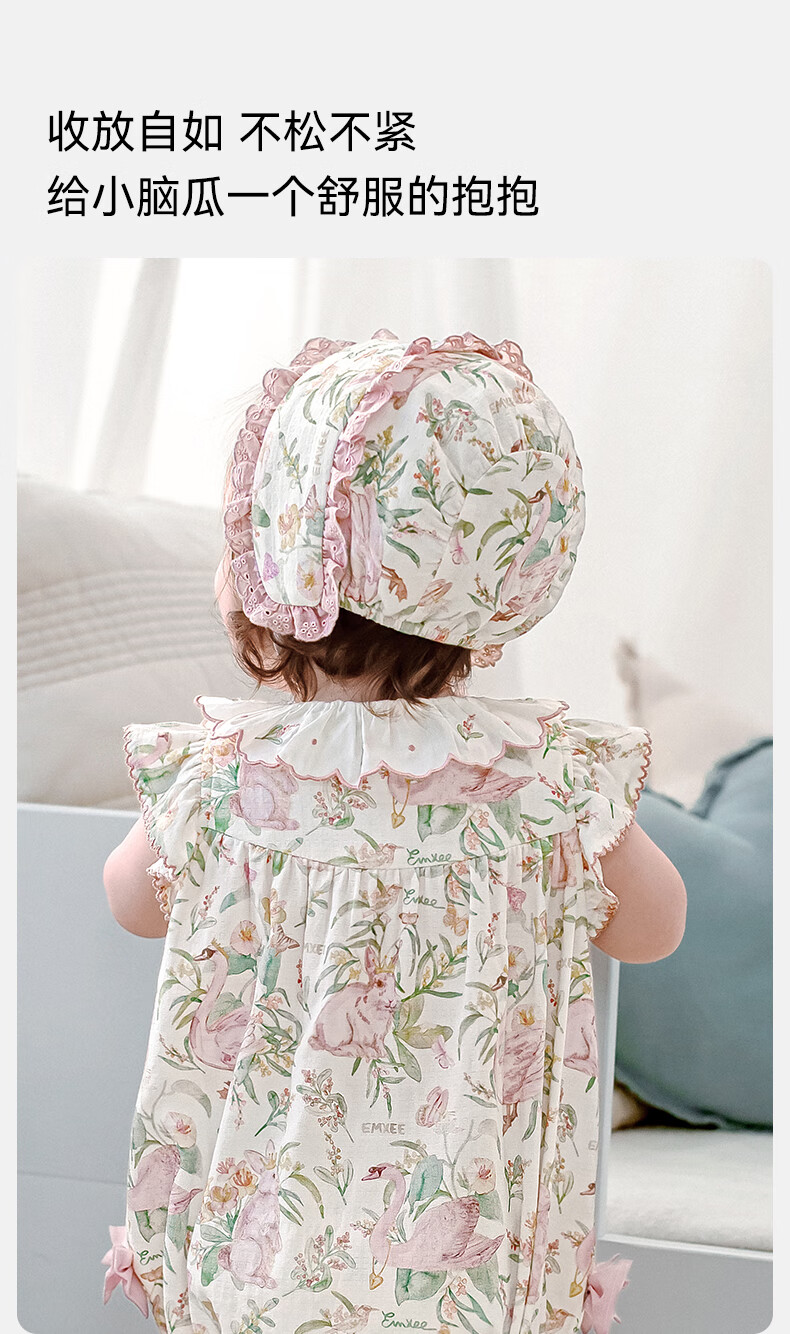 EMXEE baby hat avocado silk soft cotton newborn baby boneless strap fetal cap newborn baby fetal cap little princess garden dream stretch silk linen cotton 9-24 months (suitable for head circumference 42-48cm)