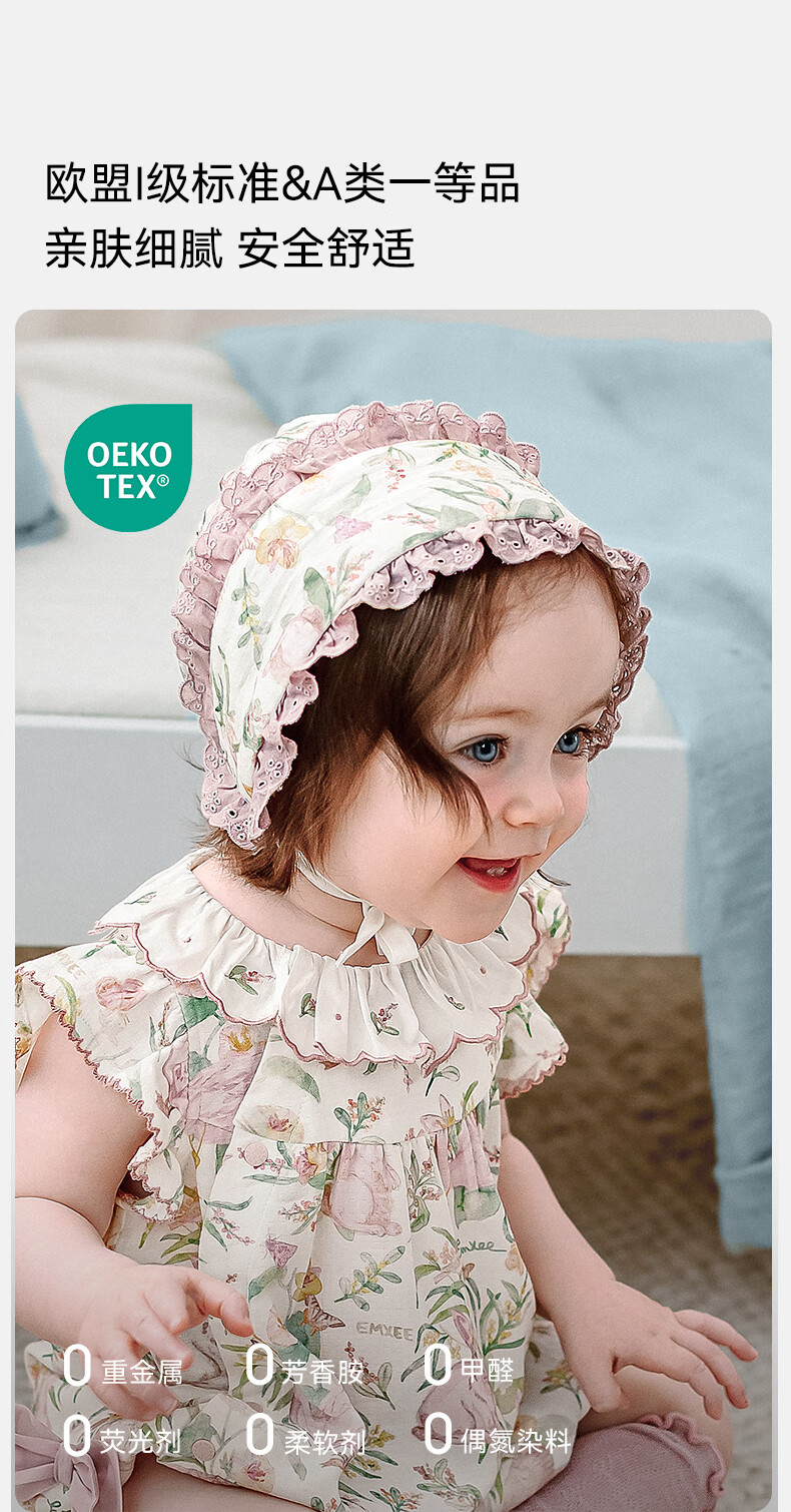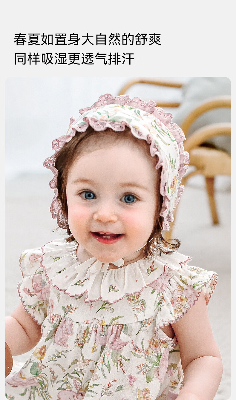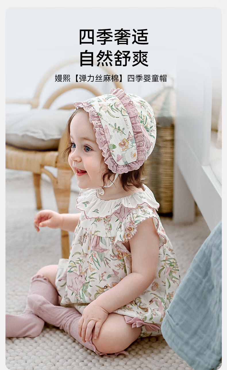 EMXEE baby hat avocado silk soft cotton newborn baby boneless strap fetal cap newborn baby fetal cap little princess garden dream stretch silk linen cotton 9-24 months (suitable for head circumference 42-48cm)