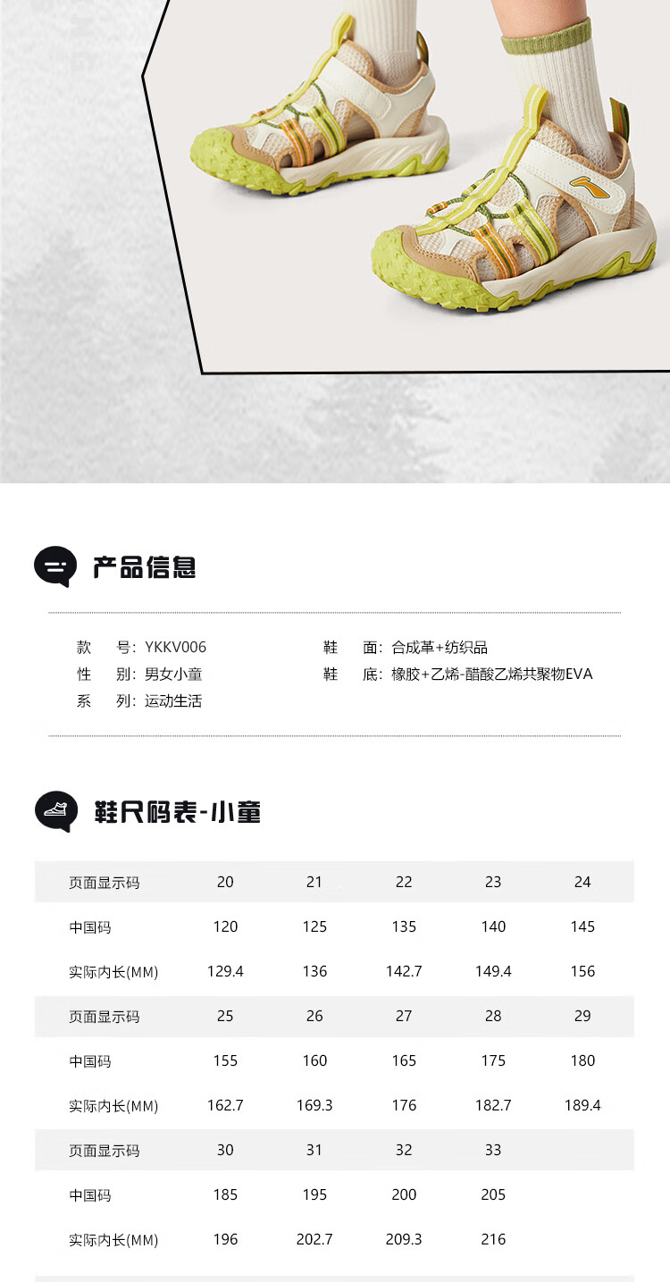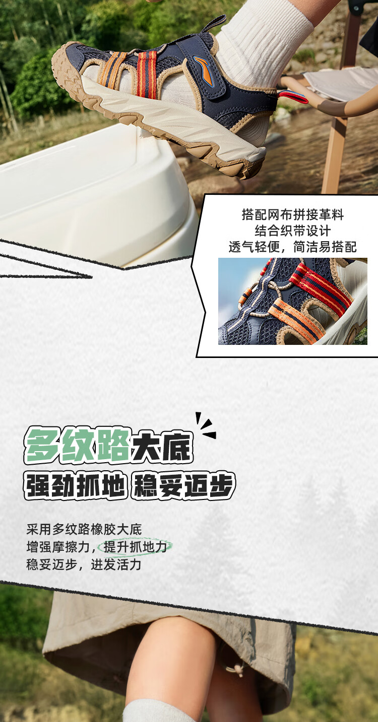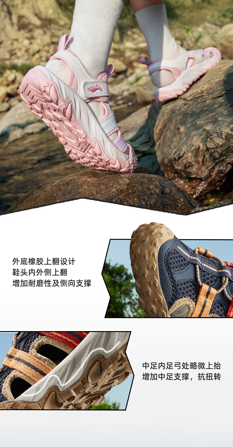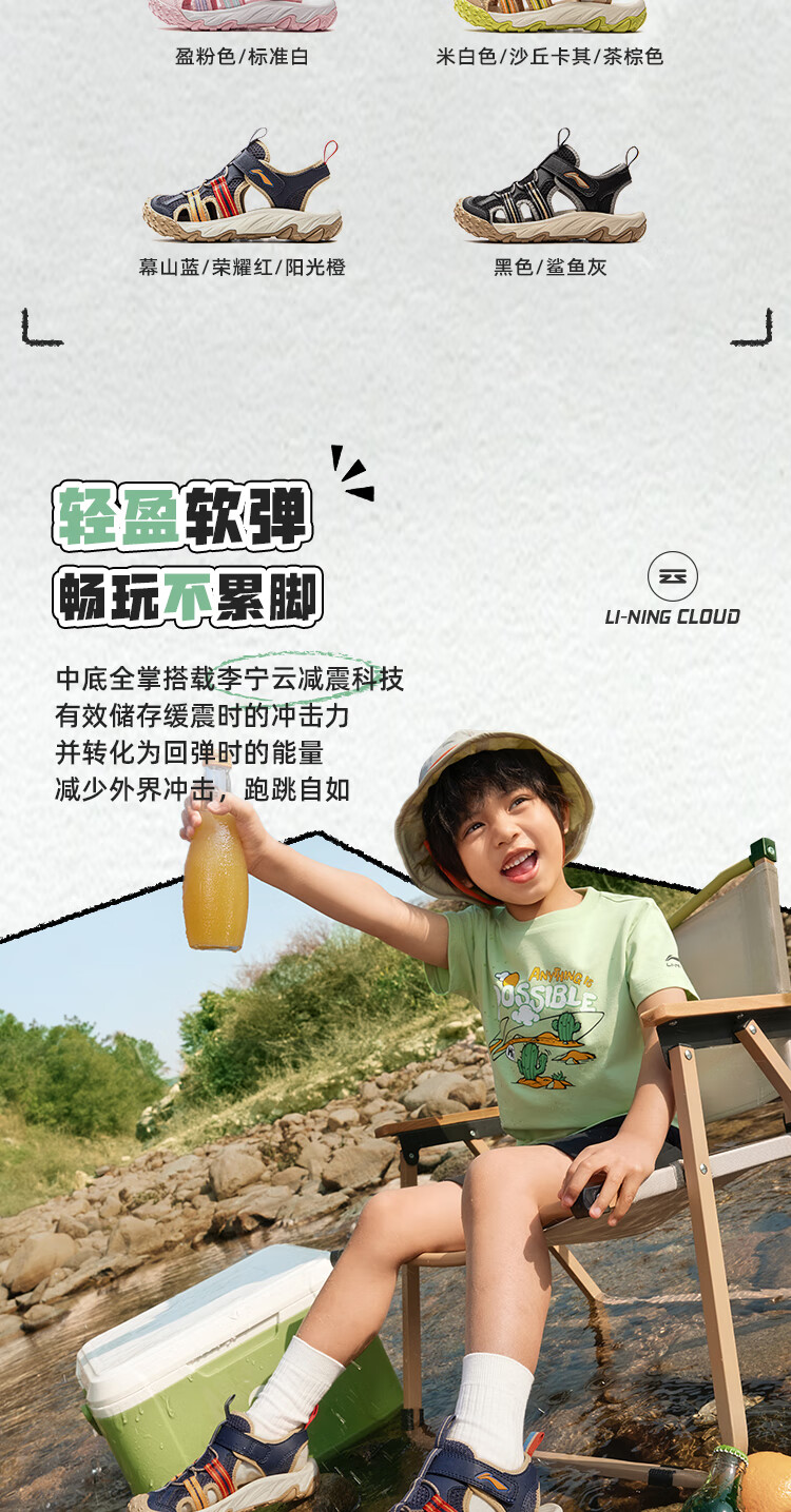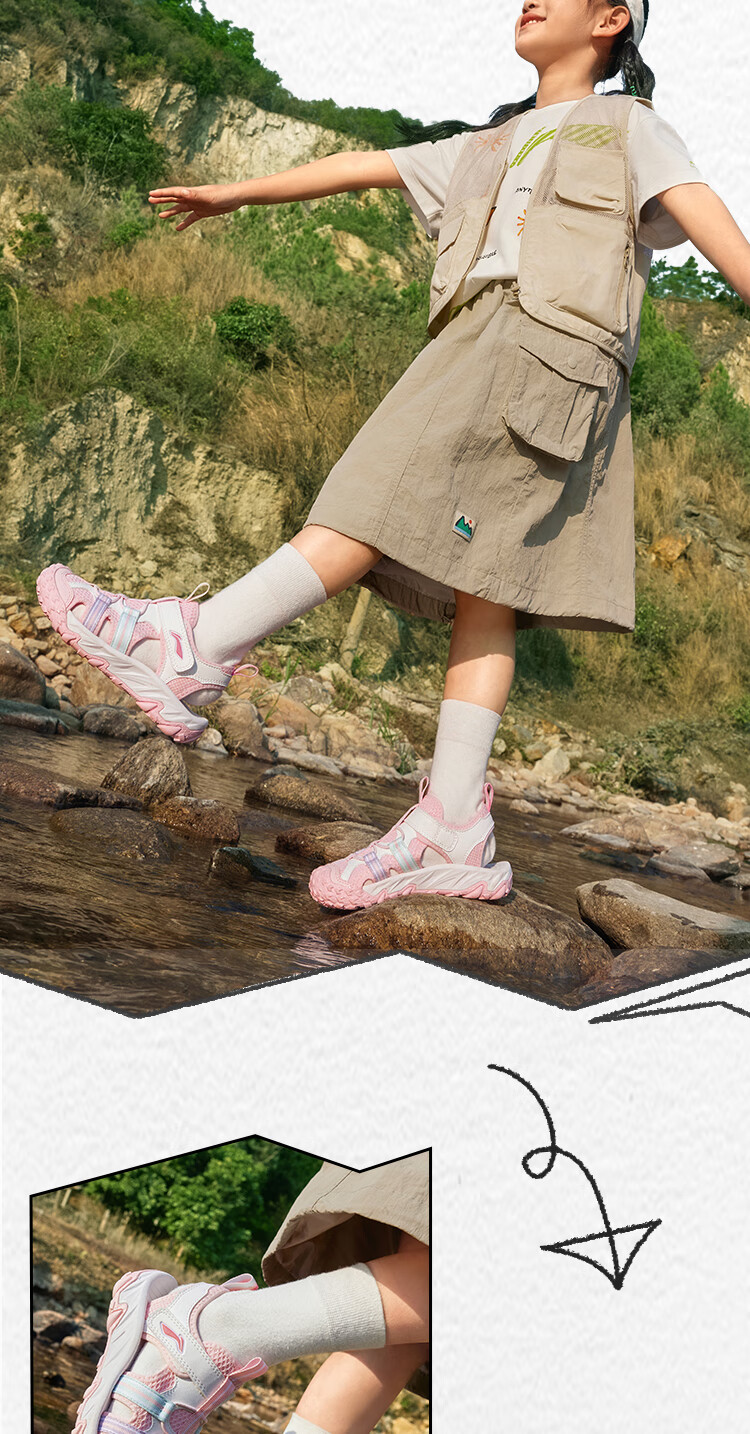 Li Ning children's shoes children's sandals for boys and girls summer shock-absorbing grip soft rebound outdoor sports shoes YKKV006 pink/standard white-2 26