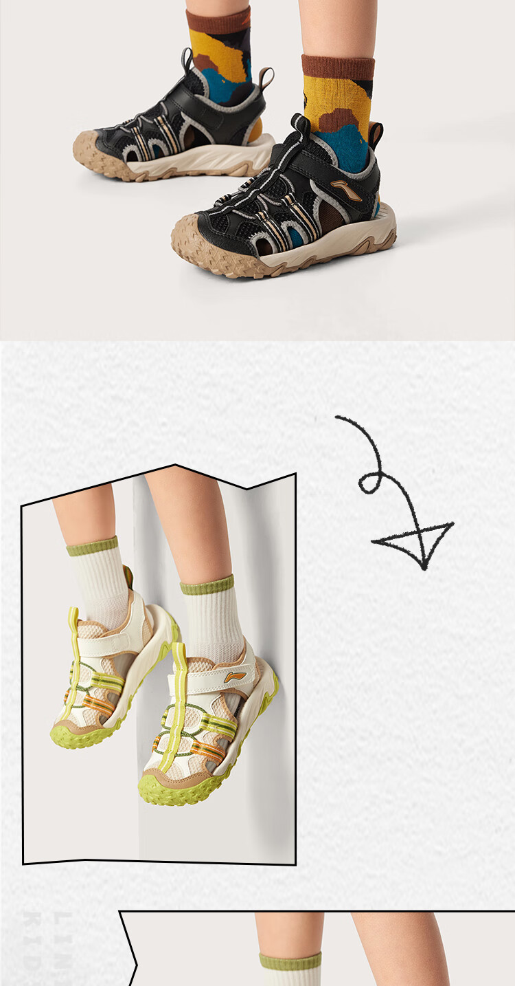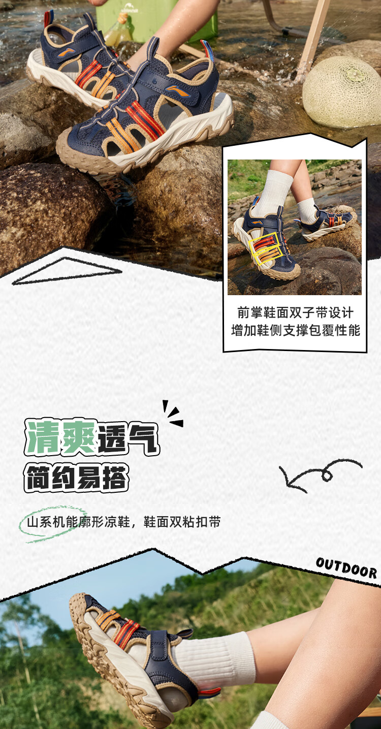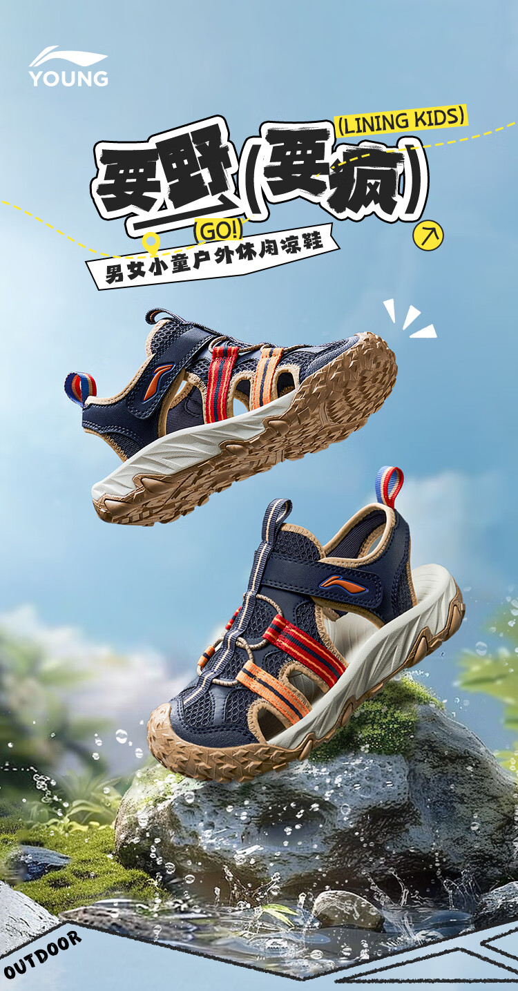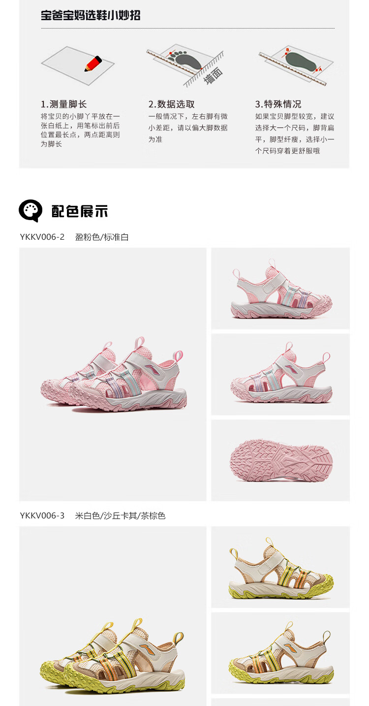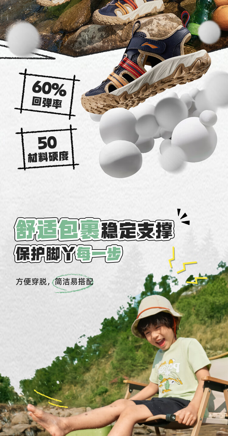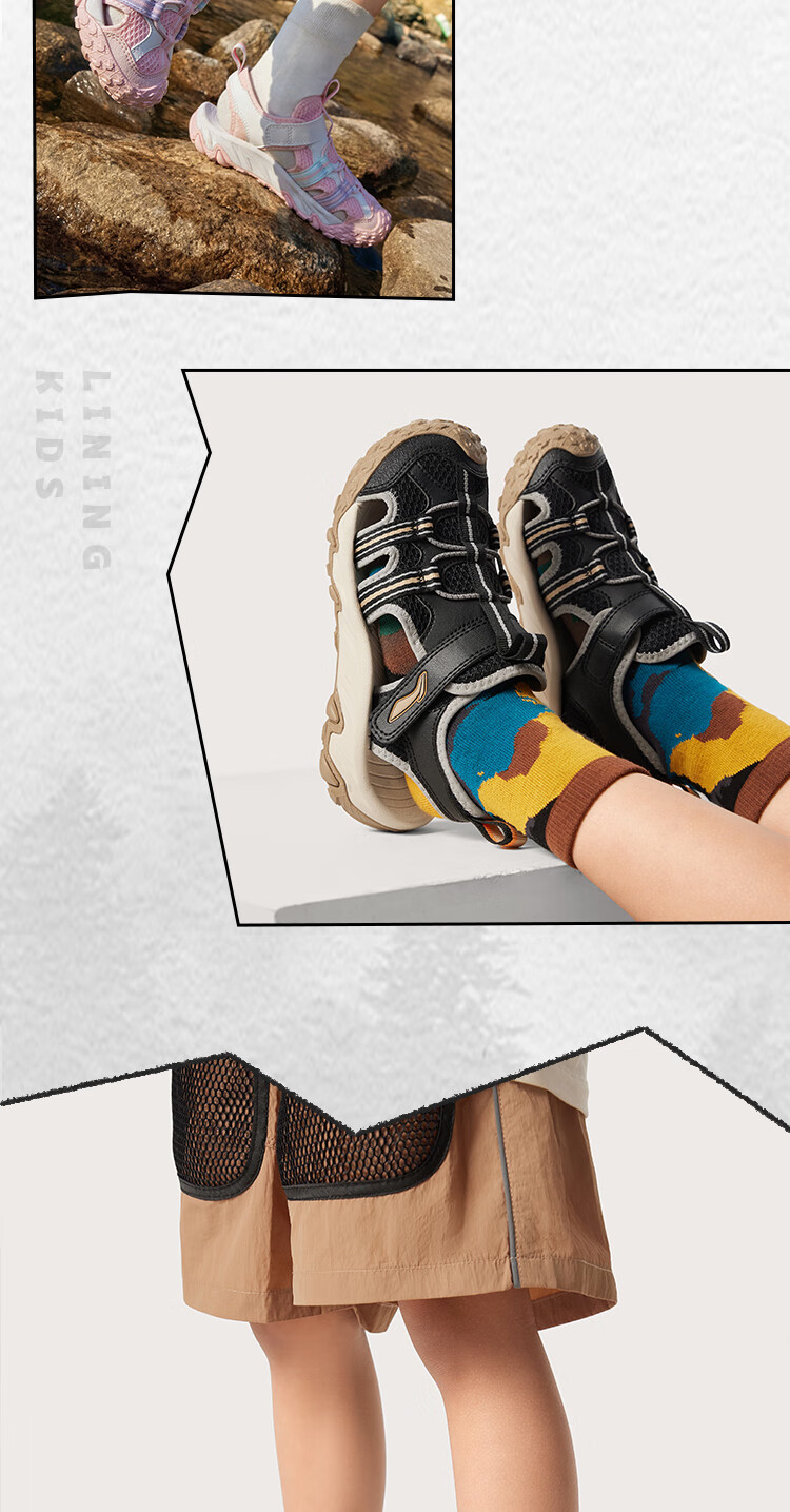 Li Ning children's shoes children's sandals for boys and girls summer shock-absorbing grip soft rebound outdoor sports shoes YKKV006 pink/standard white-2 26