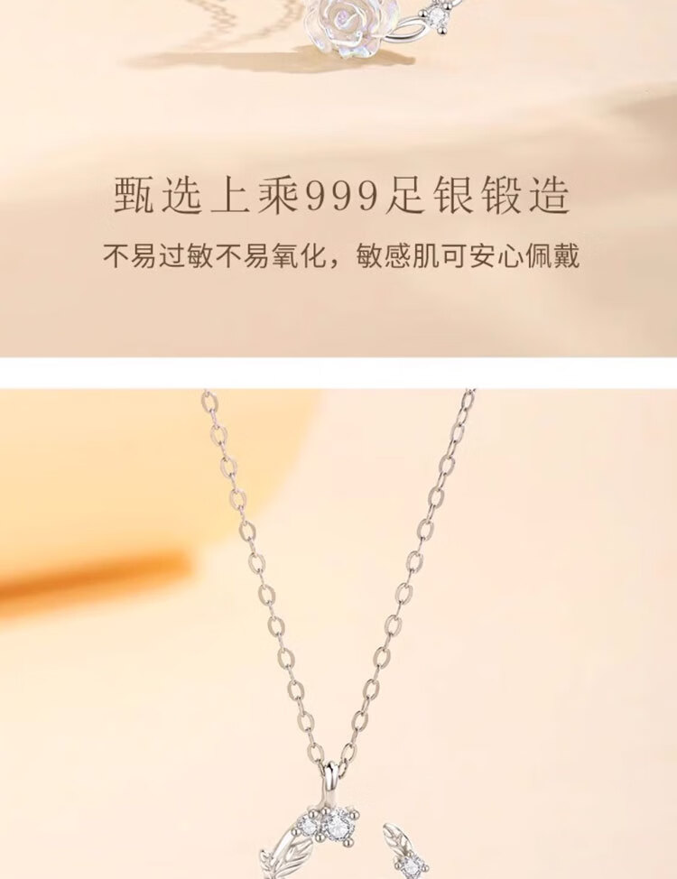 Mansheng 999 Sterling Silver Camellia Necklace Women's 2026 High-end Light Luxury Niche Clavicle Chain Birthday Gift for Girlfriend Camellia Necklace Exquisite Gift Box