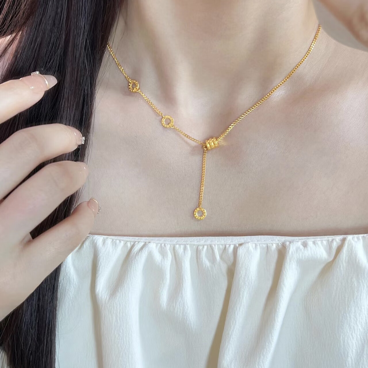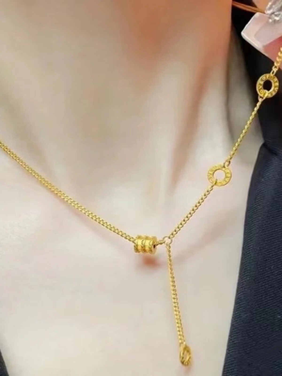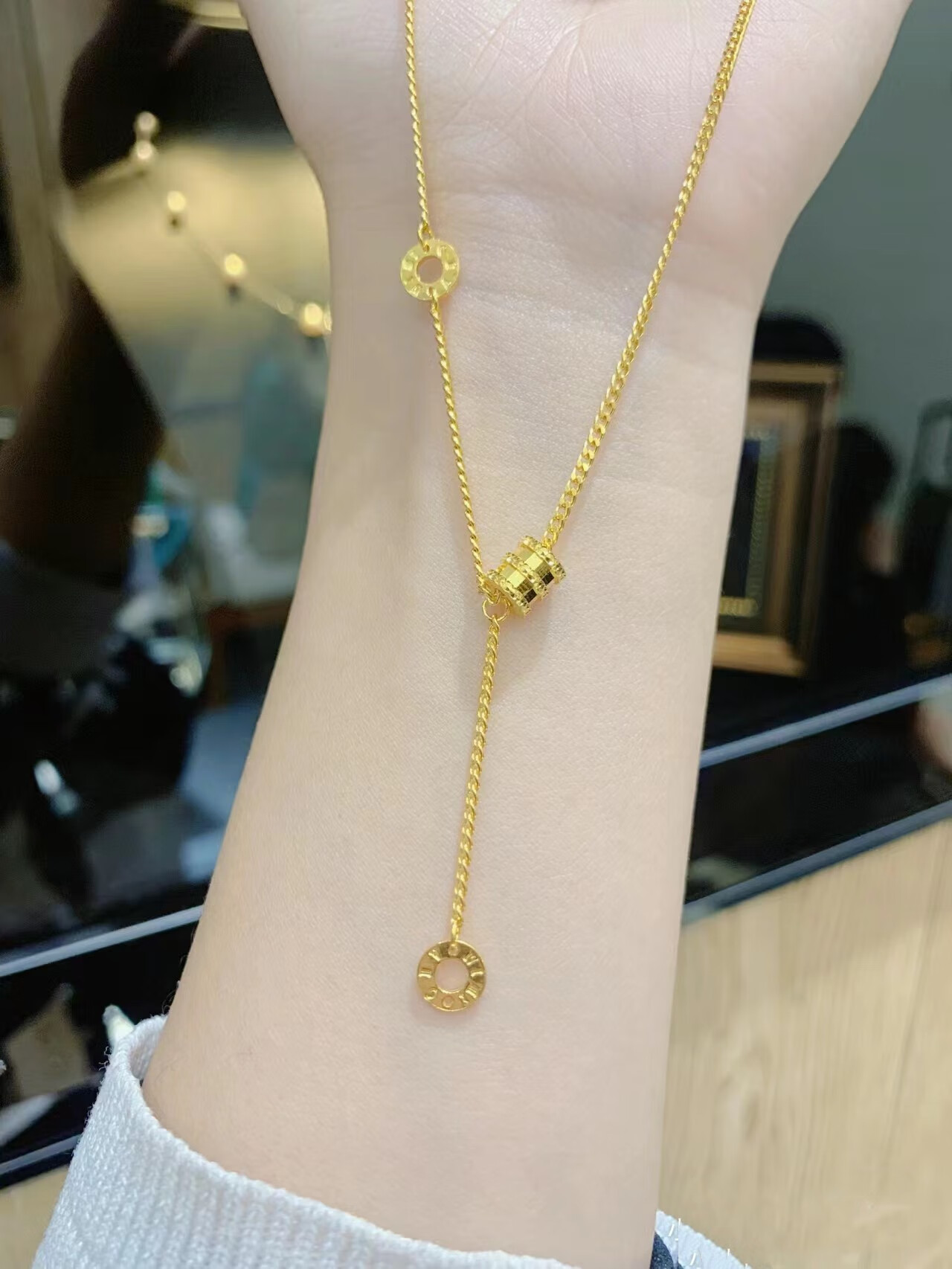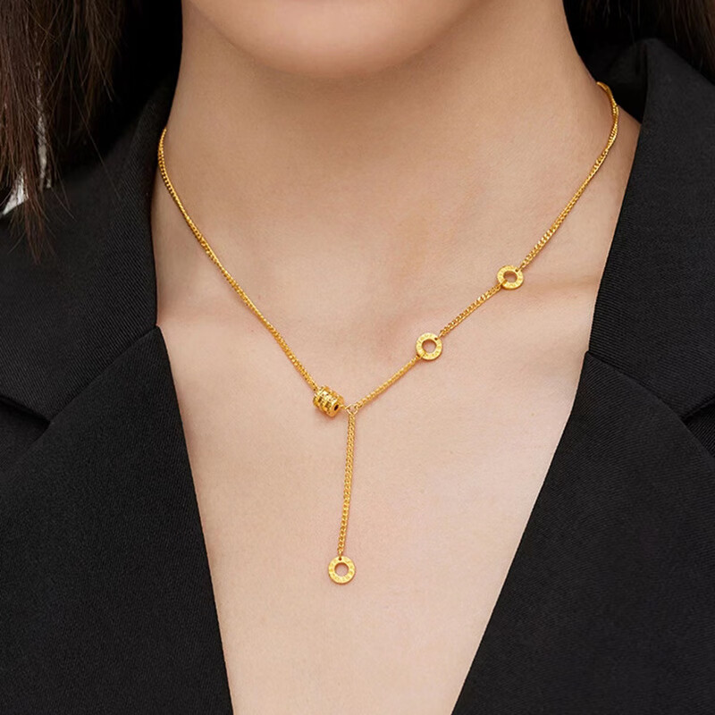 LZJV new 18k gold plated necklace women's gold small waist pendant transfer beads passerby 3d hard gold fashion gift to girlfriend gold small waist necklace