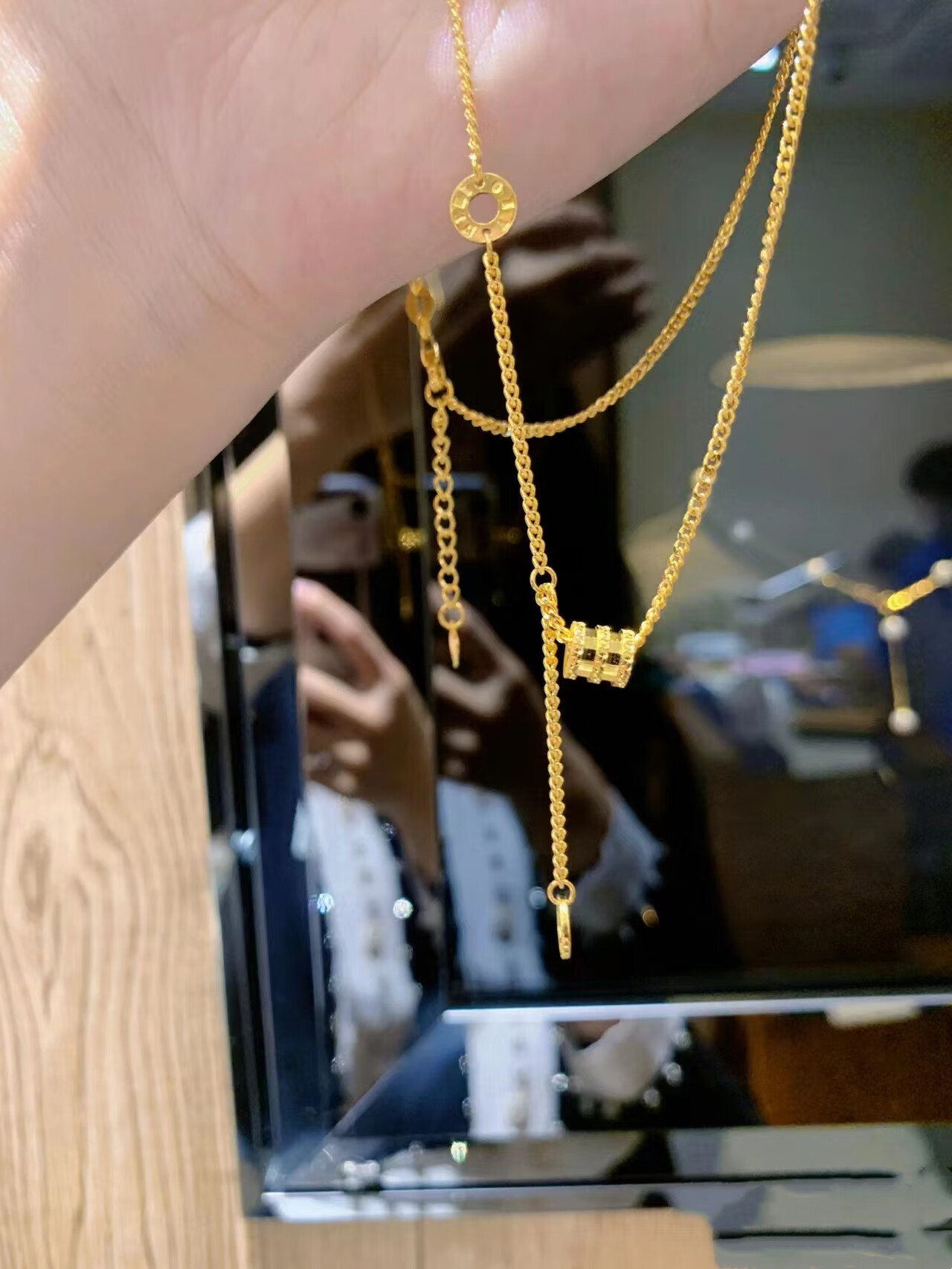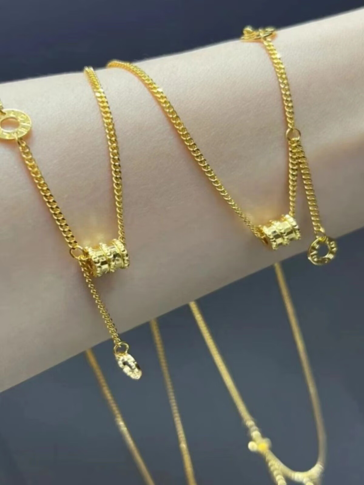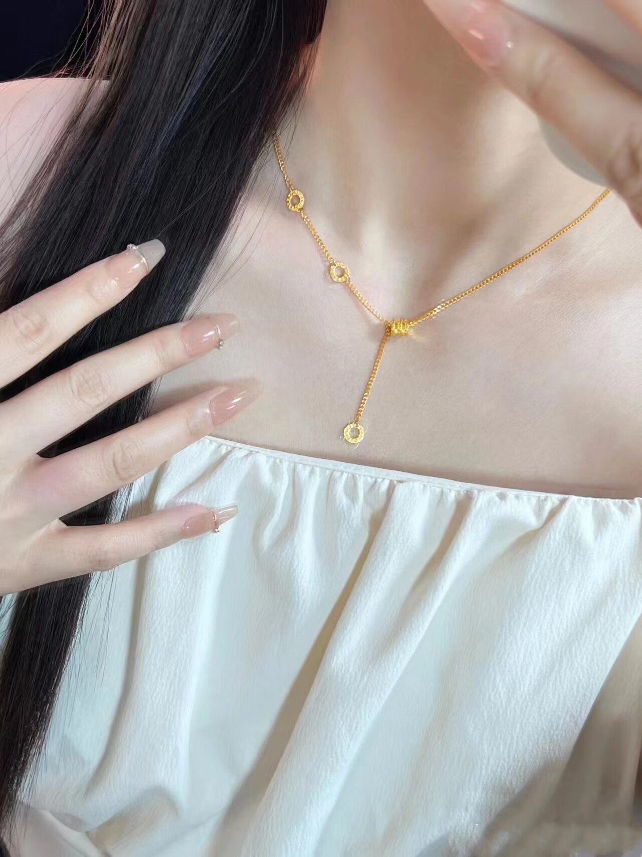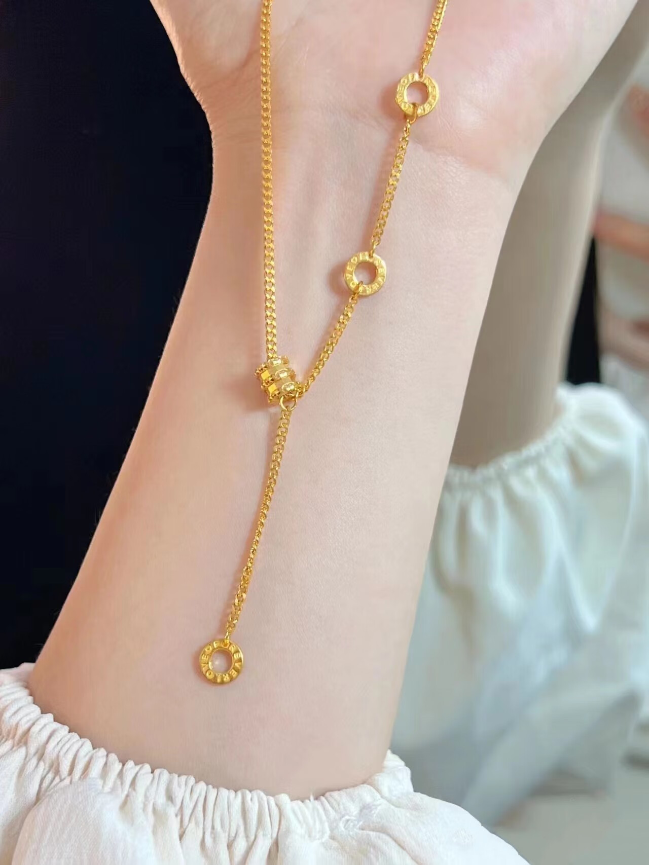 LZJV new 18k gold plated necklace women's gold small waist pendant transfer beads passerby 3d hard gold fashion gift to girlfriend gold small waist necklace