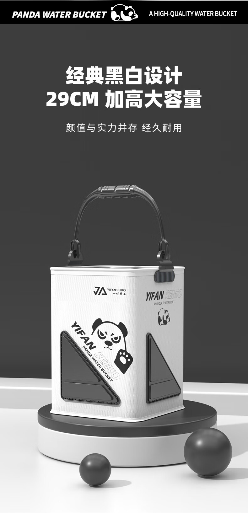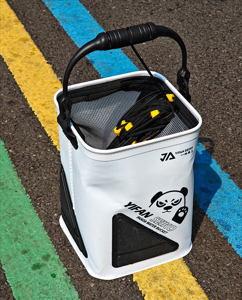 Yifan Seiko Fishing Heightened Foldable Water Bucket Fish Bucket Live Fish Box Multifunctional Rope Anti-Jump Net Fishing Gear 29cm High (Black and White) Black Pit and Hard Water Bucket