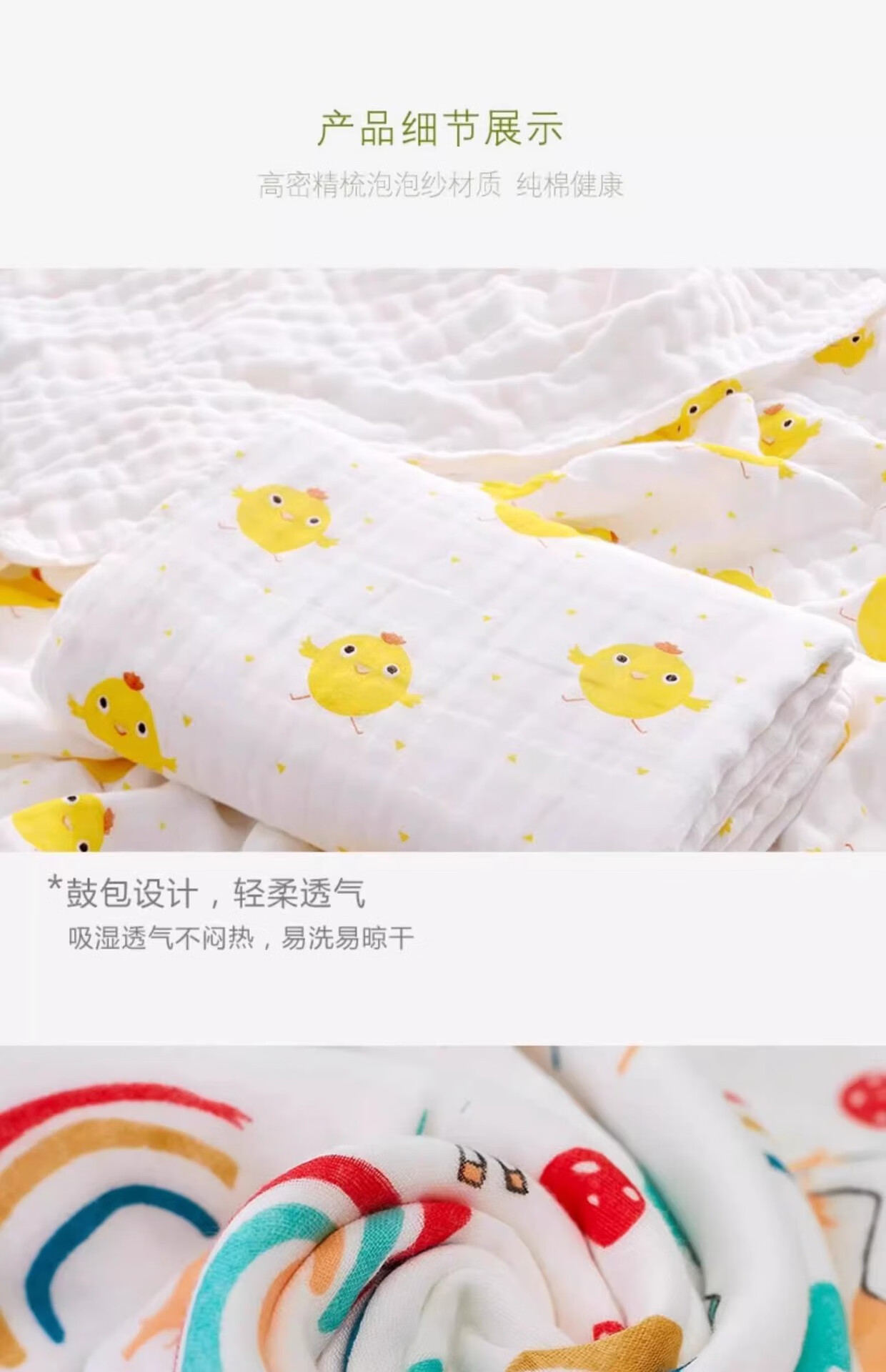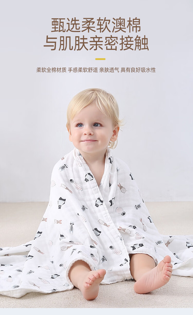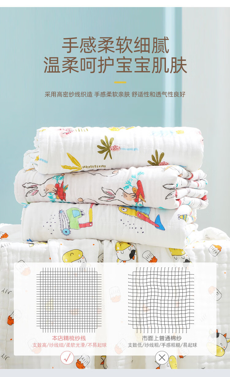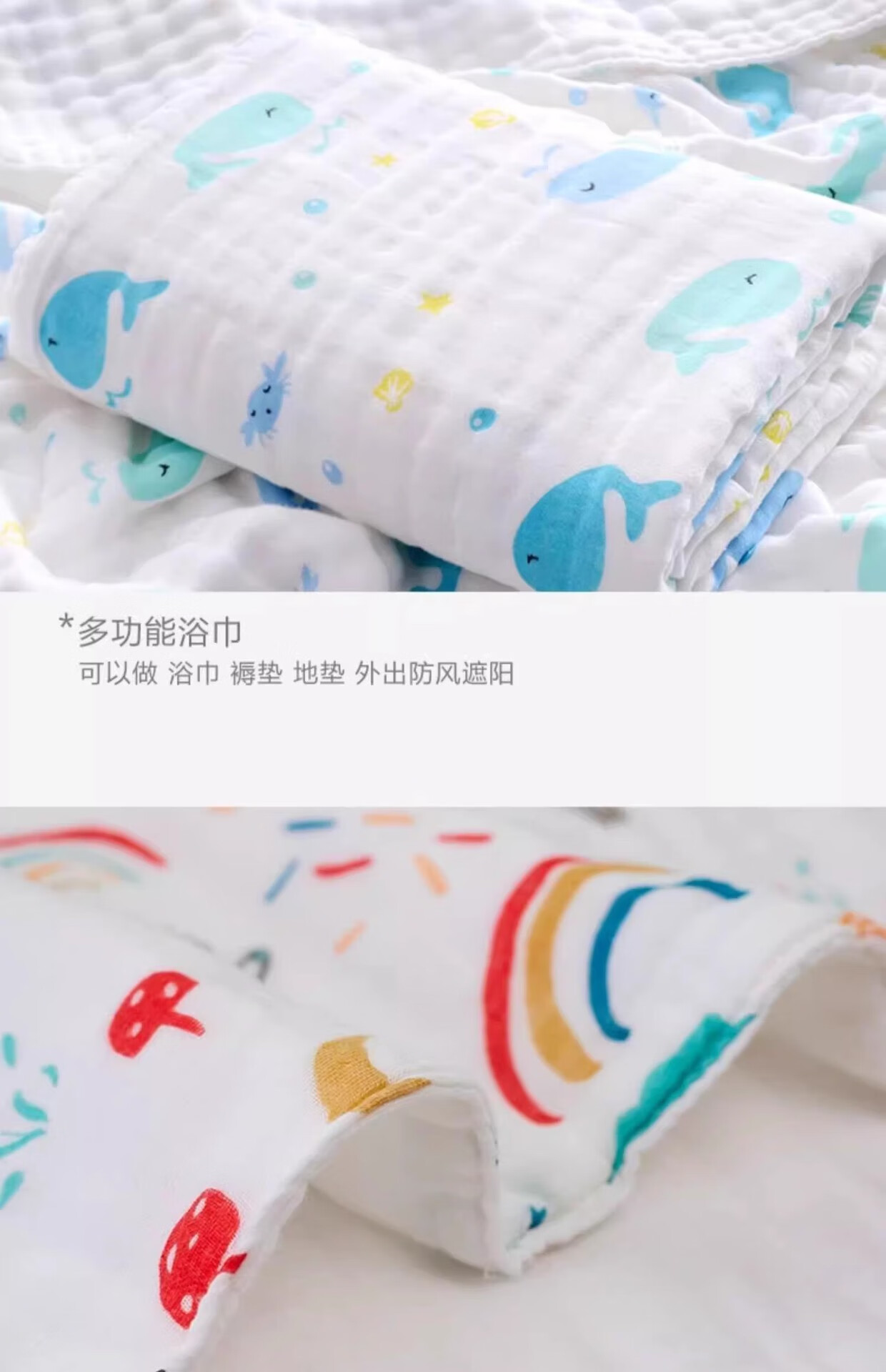Pure cotton high density Class A newborn baby gauze bath towel baby blanket kindergarten nap blanket wrap wrap cat fish four layers high density 70*90cm