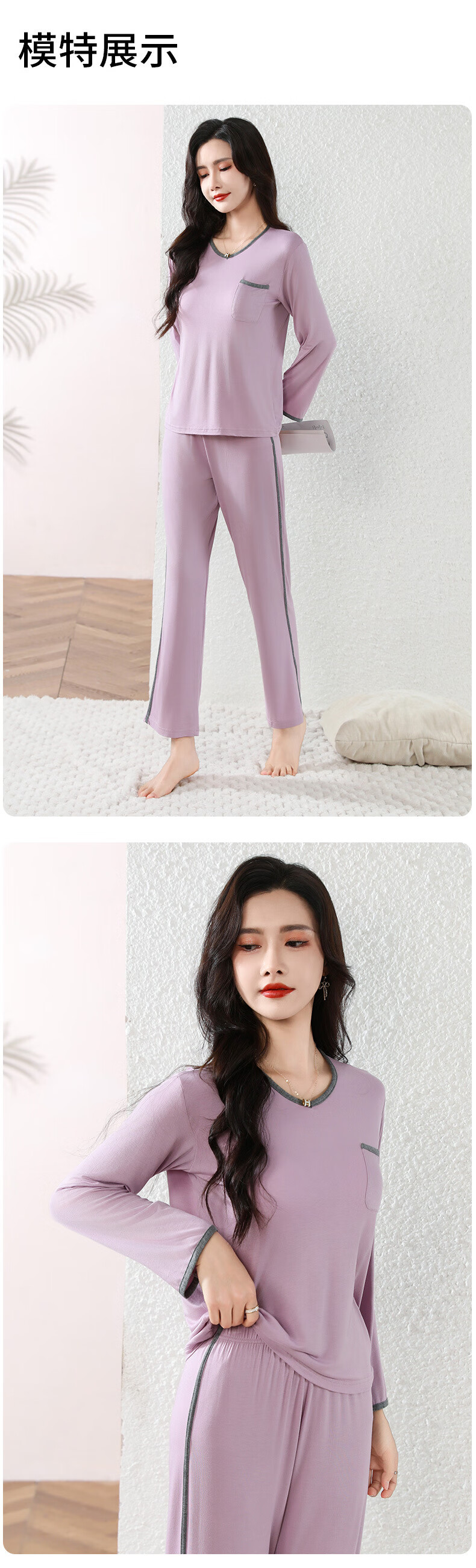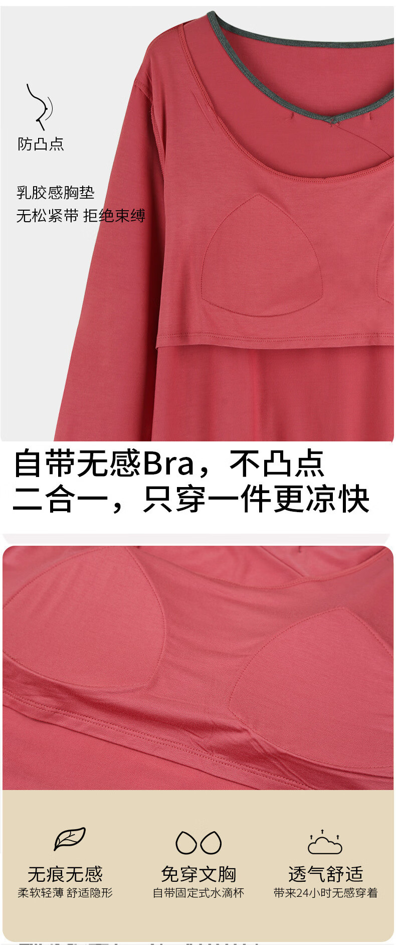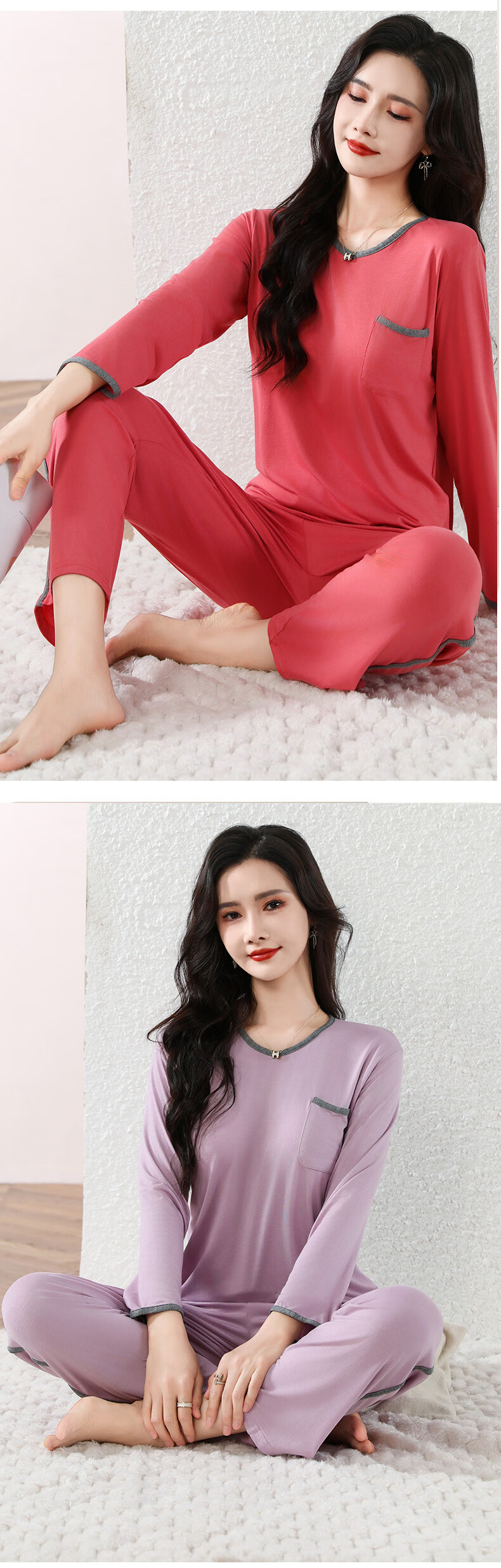 Dan Nanwei Spring and Autumn New Model Modal Pajamas for Women with Breast Pads, Loose Large Size Summer Home Clothes Set, Long Sleeves and Pants for Outerwear, Brick Red (Long Sleeves + Pants) XL (115-135Jin Jin equals 0.5kg)