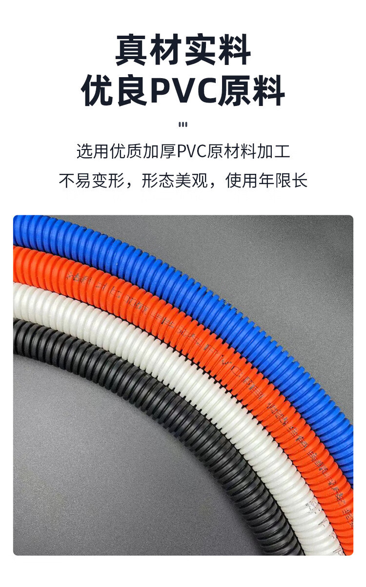 Kezitu thickened orange-red plastic corrugated pipe PVC waterproof flame-retardant threaded pipe threading hose wire and cable protective cover thickened orange-red 16mm/roll 50 meters