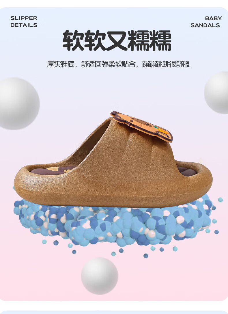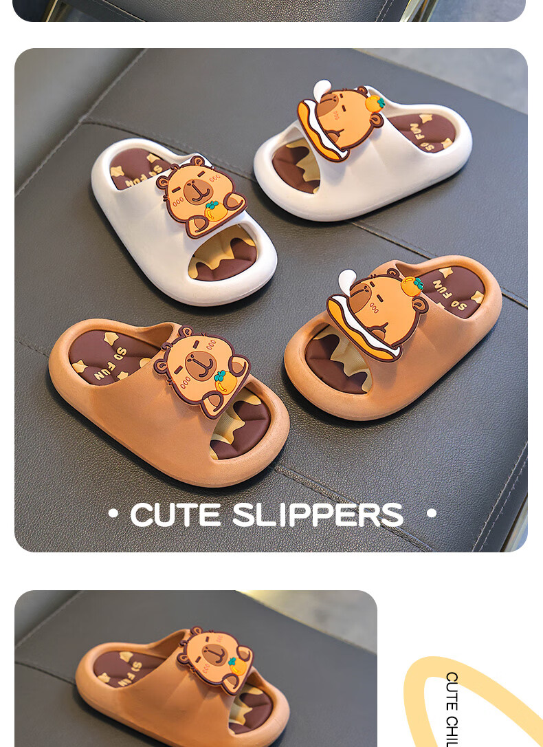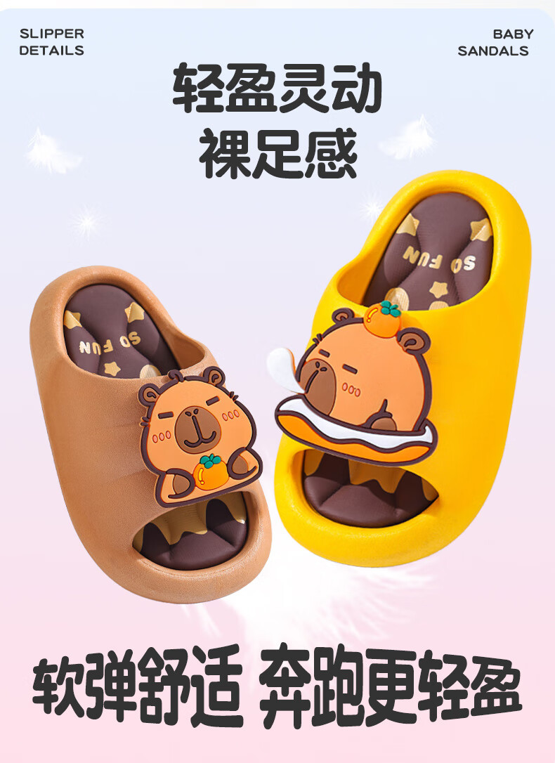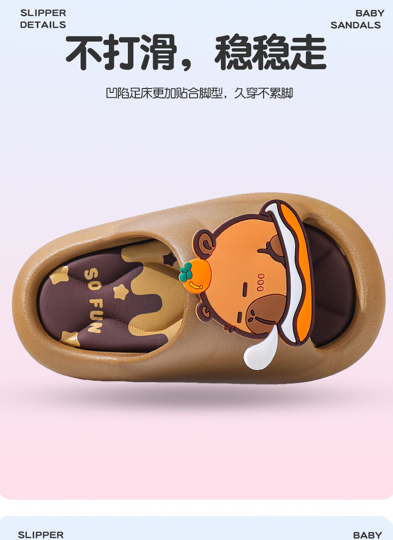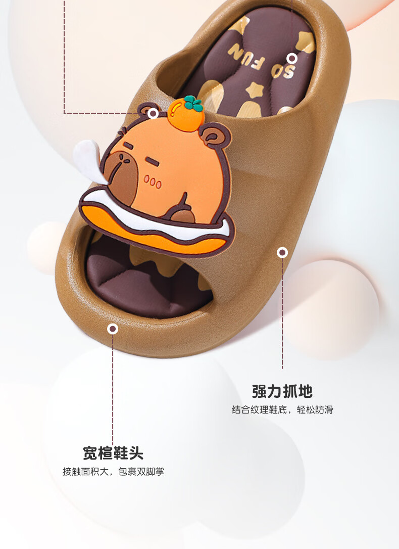 Kapibara summer children's sandals for boys and girls, non-slip indoor bathing, soft-soled sandals for older children, light coffee color (upgraded environmentally friendly material) 12 30/31 size (shoe inner length 18CM, suitable for feet 17