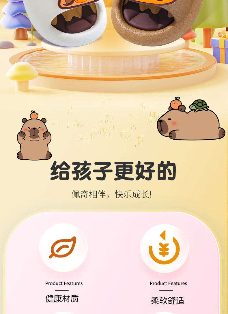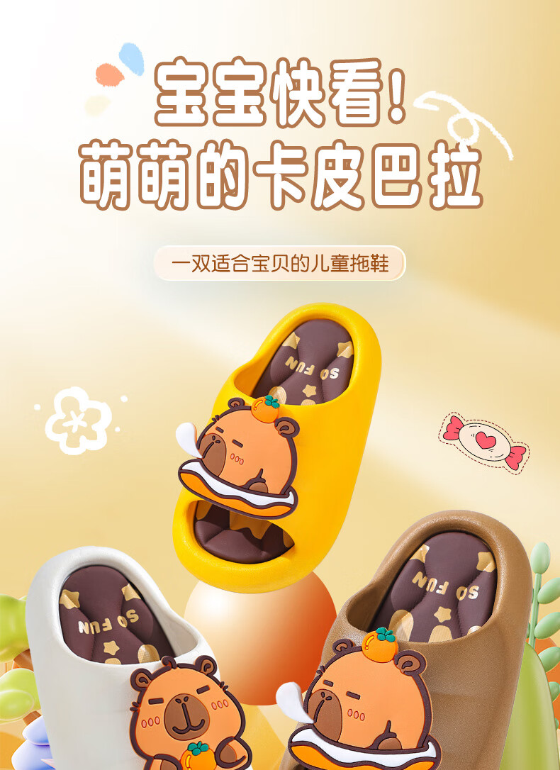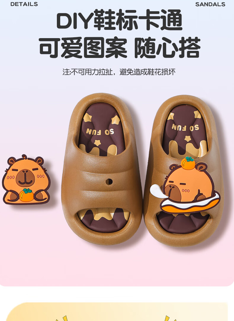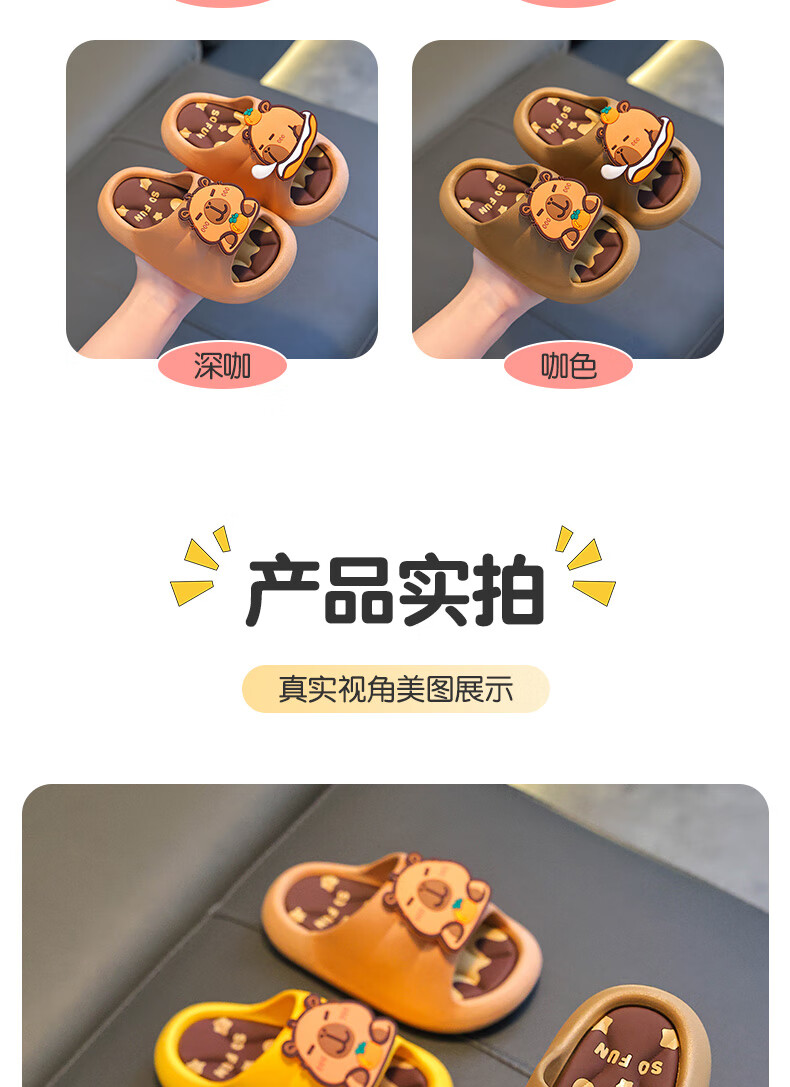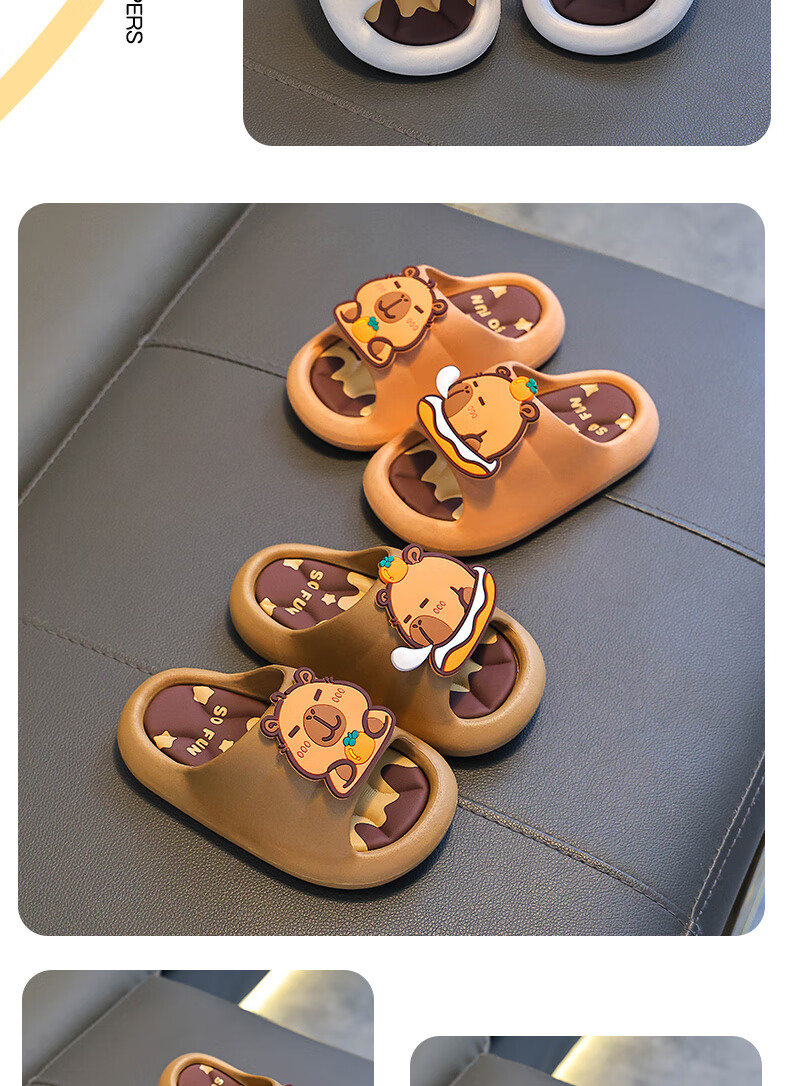 Kapibara summer children's sandals for boys and girls, non-slip indoor bathing, soft-soled sandals for older children, light coffee color (upgraded environmentally friendly material) 12 30/31 size (shoe inner length 18CM, suitable for feet 17