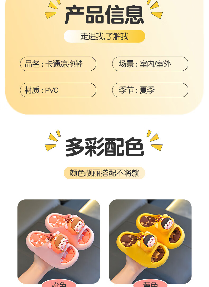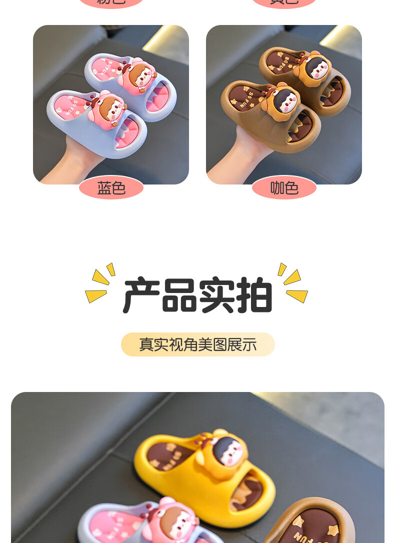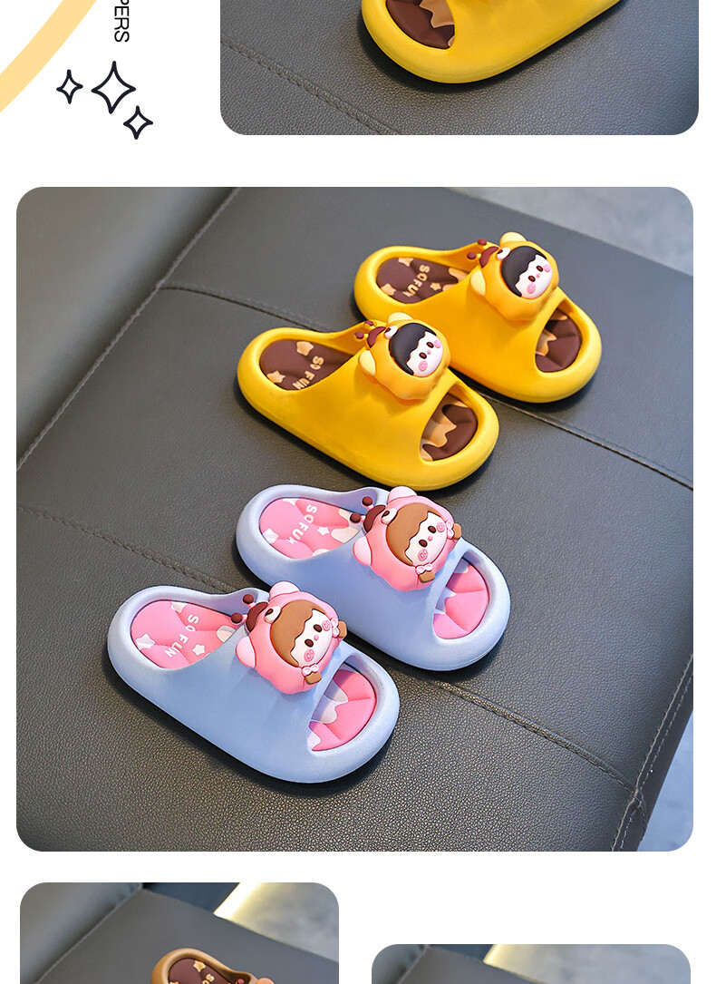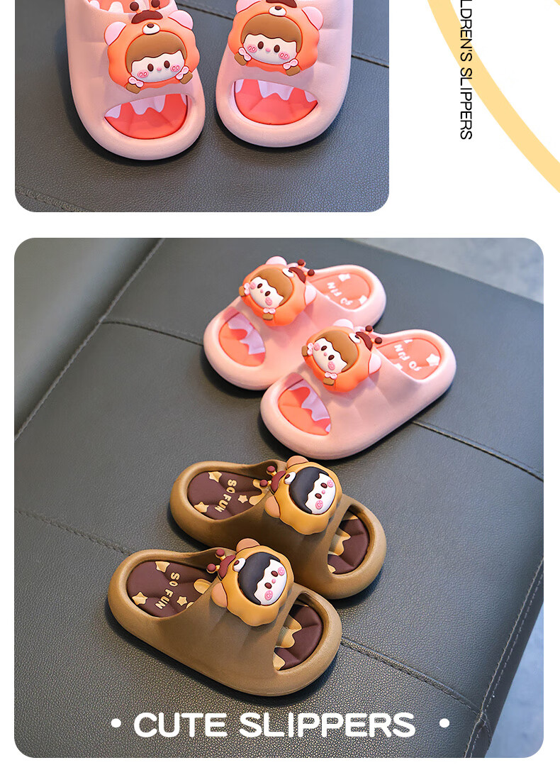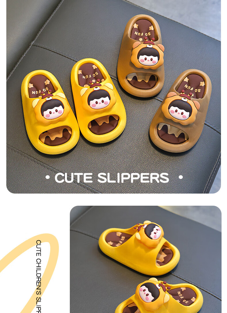 Summer children's sandals for boys and girls, non-slip indoor bathing, parent-child soft soles, large, medium and small children's beach sandals, yellow 12, size 24/25 (shoe inner length 15CM, suitable for feet 14