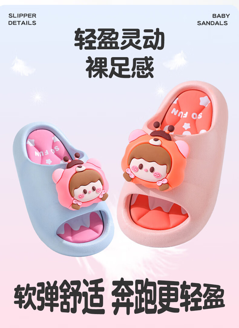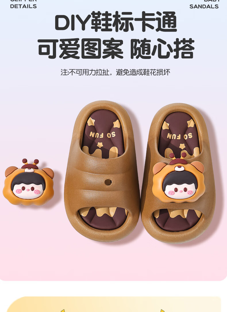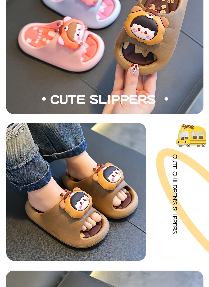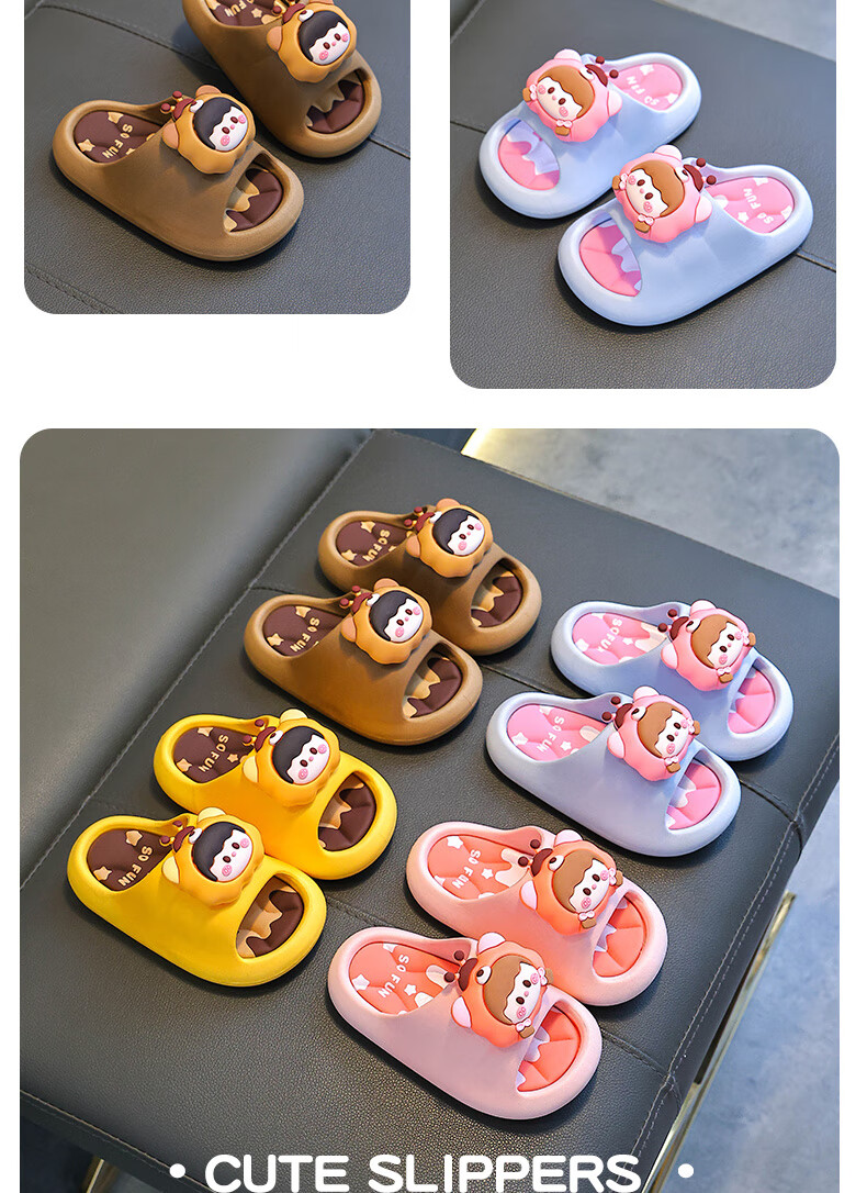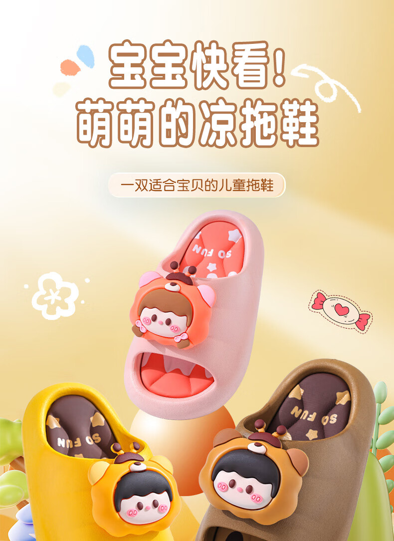 Summer children's sandals for boys and girls, non-slip indoor bathing, parent-child soft soles, large, medium and small children's beach sandals, yellow 12, size 24/25 (shoe inner length 15CM, suitable for feet 14