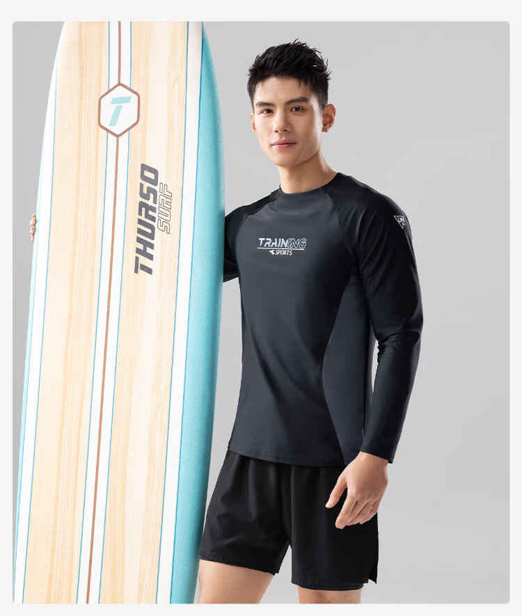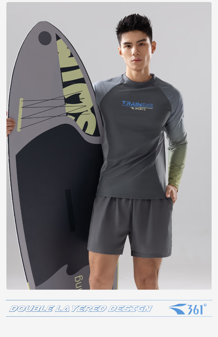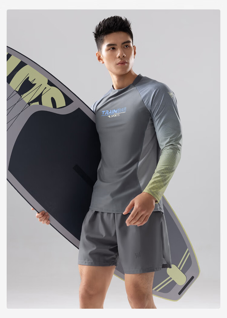 361 Men's swimsuit split men's long-sleeved sun protection swimsuit diving surfing suit quick-drying swimsuit two-piece suit gray brown L Height 165-175cm Weight 120-150 Jin Jin equals 0.5 kg
