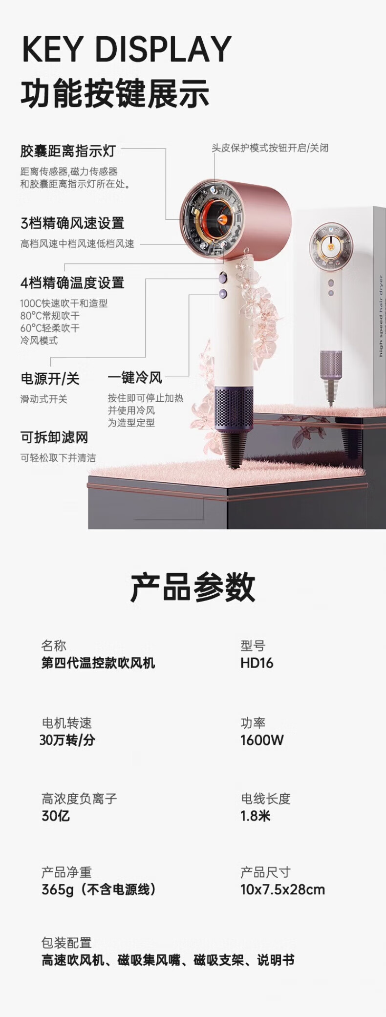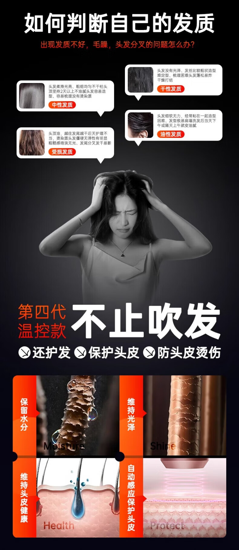 RASW German hair dryer household silent negative ion high power does not damage hair high speed quick drying leafless hair dryer hair care dormitory baby pet ladies special portable business trip new smart hair dryer (official top configuration 1 1 blue purple) new smart scalp protection hair dryer as a gift
