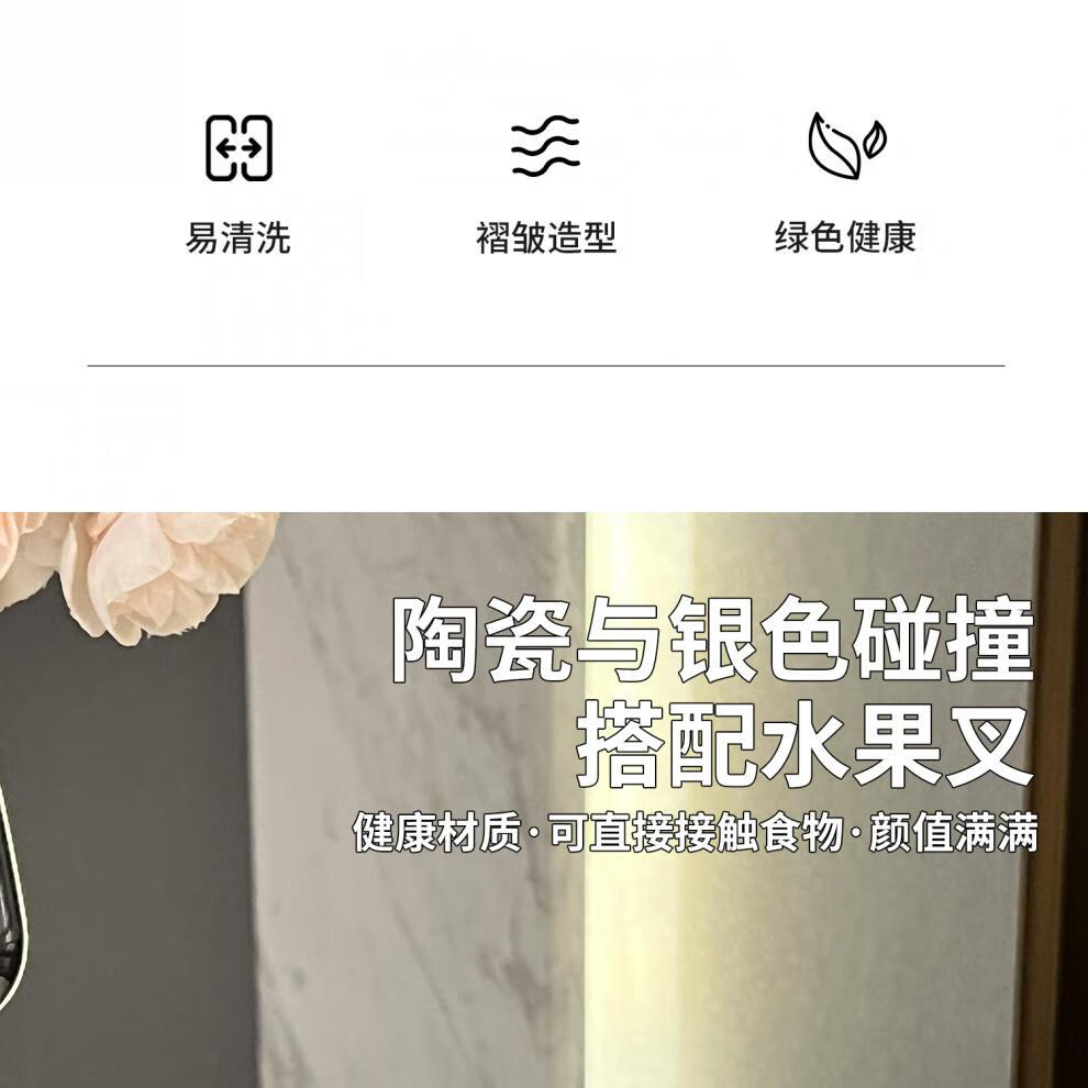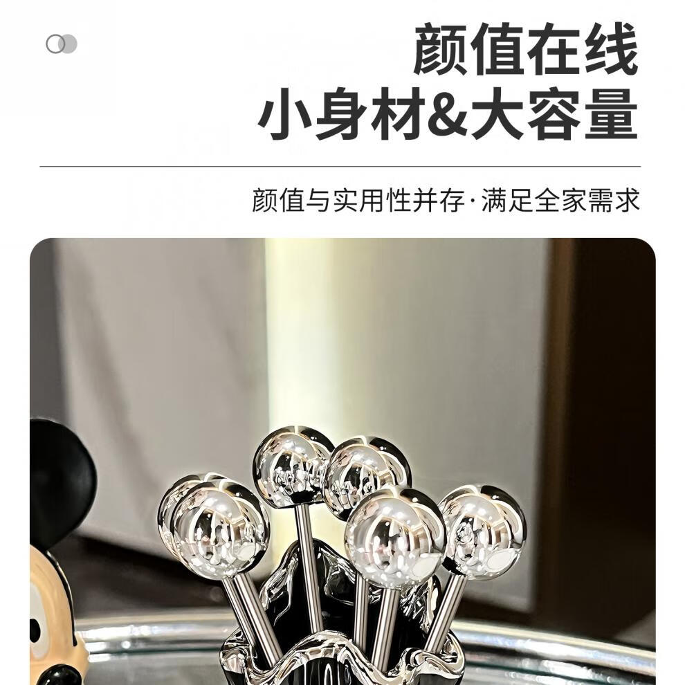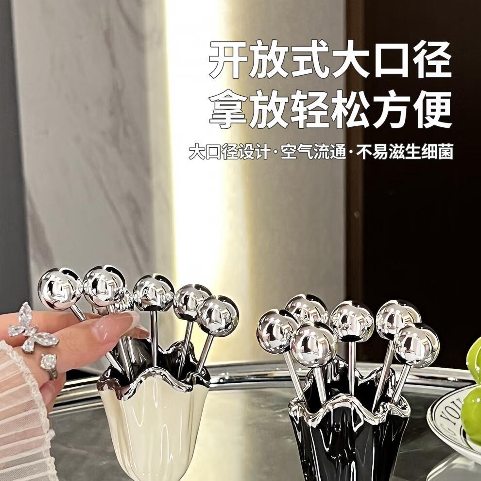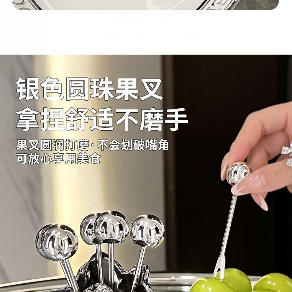 He Jiagong's high-looking stainless steel fruit fork household light luxury children's safety small fork set dessert pick sense mini pleated fruit fork + 6 small forks (milk white a