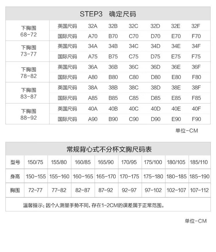 China (cm) 160-165/84-86 165-170 / 88-90 167-172 / 92-96 168-173 / 98-102 170-176 / 106-110