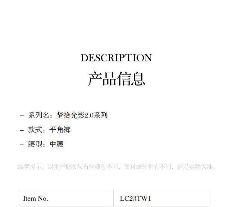 Outseam (cm) 99 cm 101.5 cm 104 cm 106.5 cm 109 cm