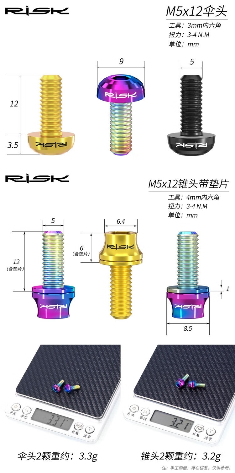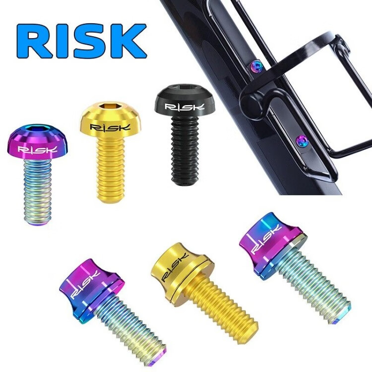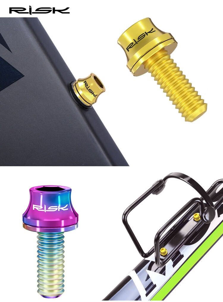 RISKRisk M5x12mm mountain bike road bike carbon fiber water bottle cage colorful titanium alloy screws with gasket RISK umbrella head 2 colorful pieces