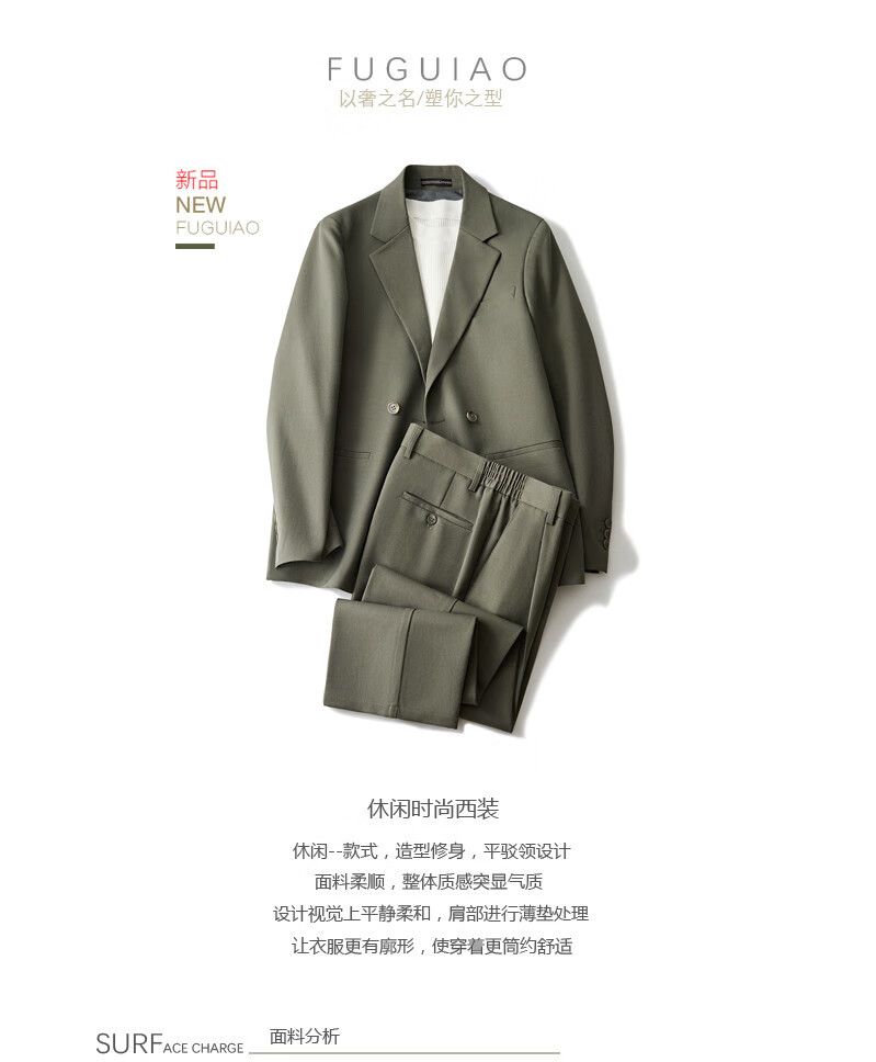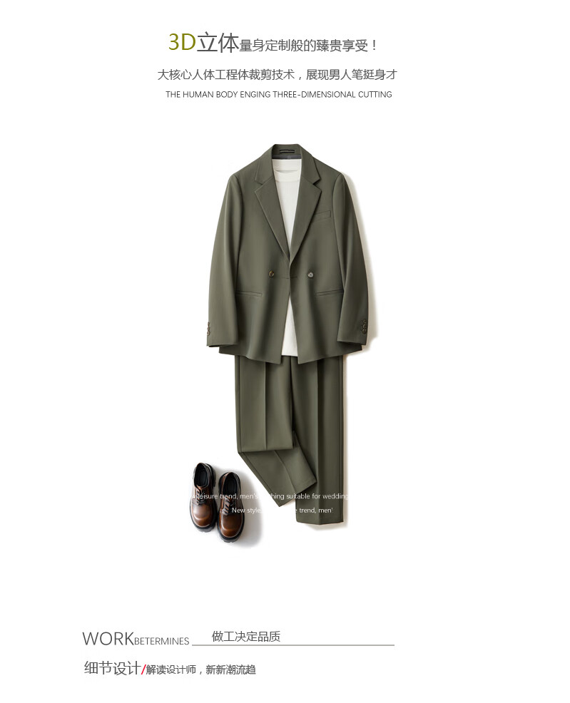 DK brand men's casual suit suit men's spring and autumn new style micro wide fashion trend handsome suit two-piece gray green (top + pants) 2XL