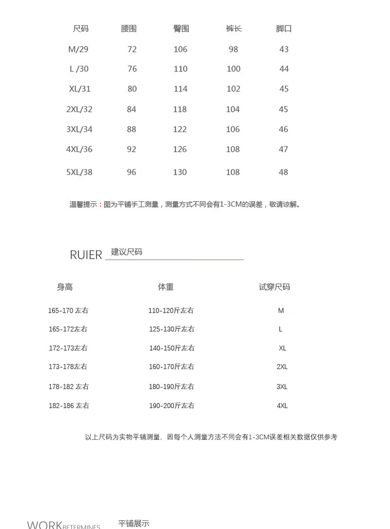 China (cm) 165 / 88-90 170 / 96-98 175 / 108-110 180 / 118-122 185 / 126-130