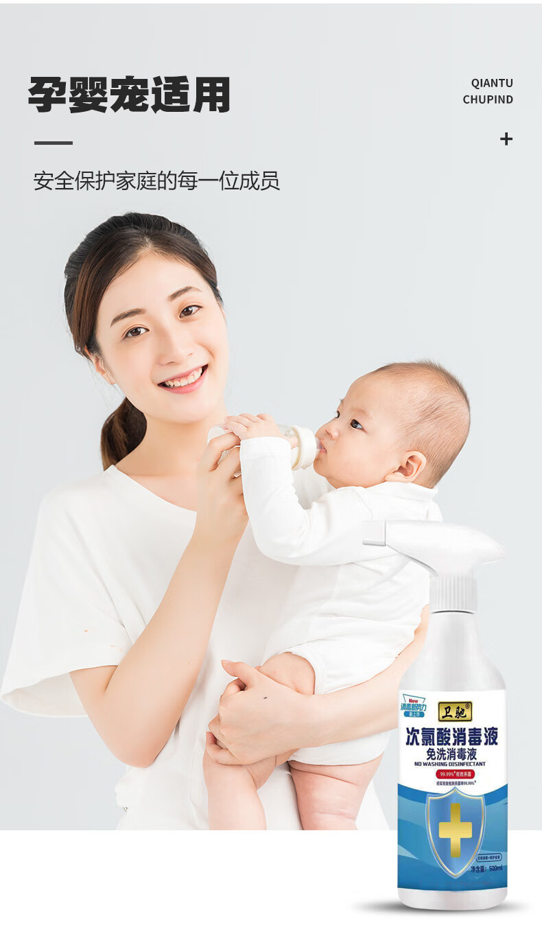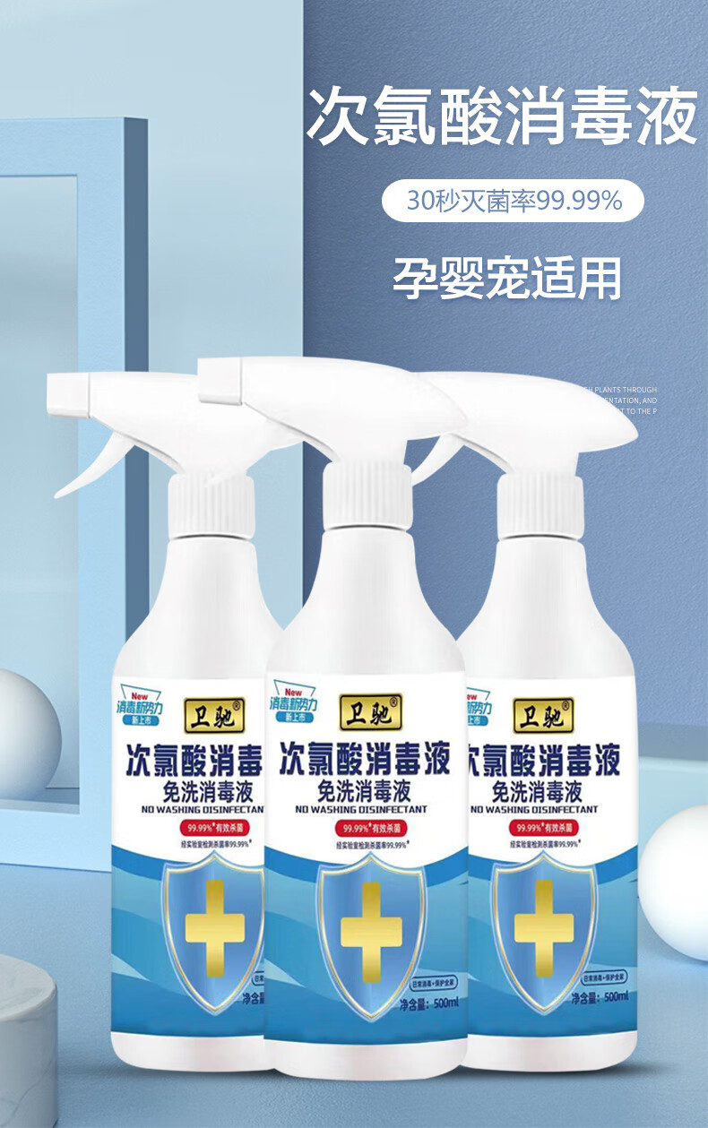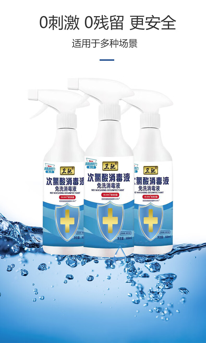 Weichi Hypochlorous Acid Disinfectant 500ml Bottled No-Wash Home Environment Clothing Fruits and Vegetables Hand Skin 500ml*2 Bottles + Free 1 Nozzle