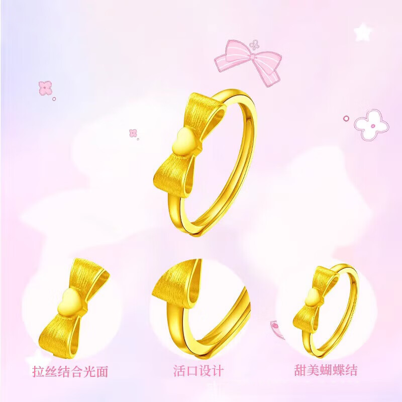 Taijufu pure gold-covered silver-covered gold bow-knot love ring, exquisite and personalized light luxury bow-knot open ring Gold-covered silver-covered love bow-knot ring with adjustable opening