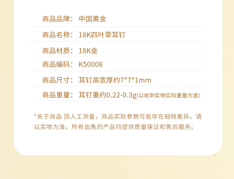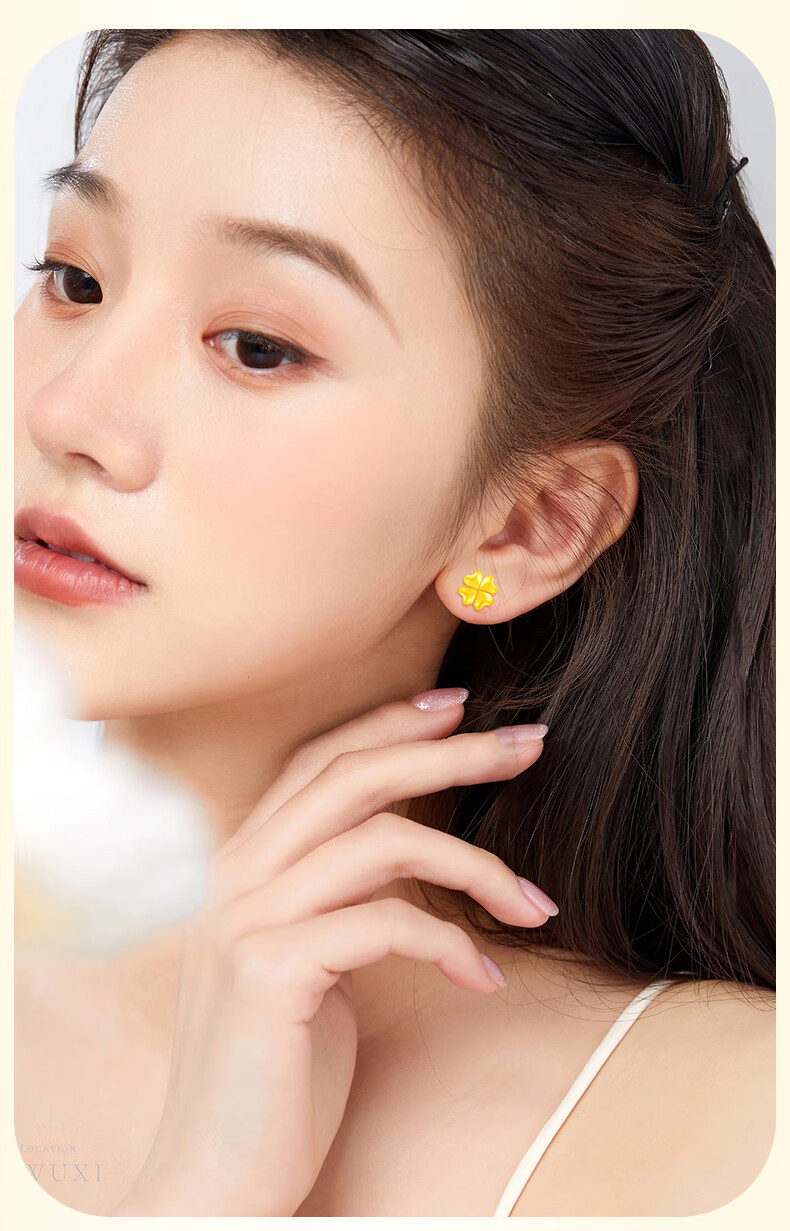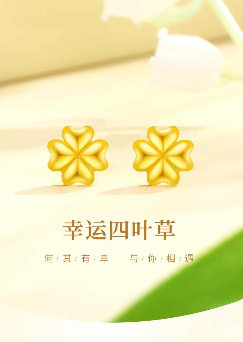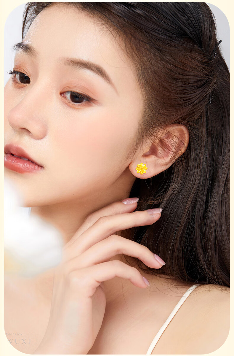 Chinese gold 18k four-leaf clover earrings for women K gold jewelry fashion gift for girlfriend and wife’s birthday practical Jingsuda-18k four-leaf clover earrings